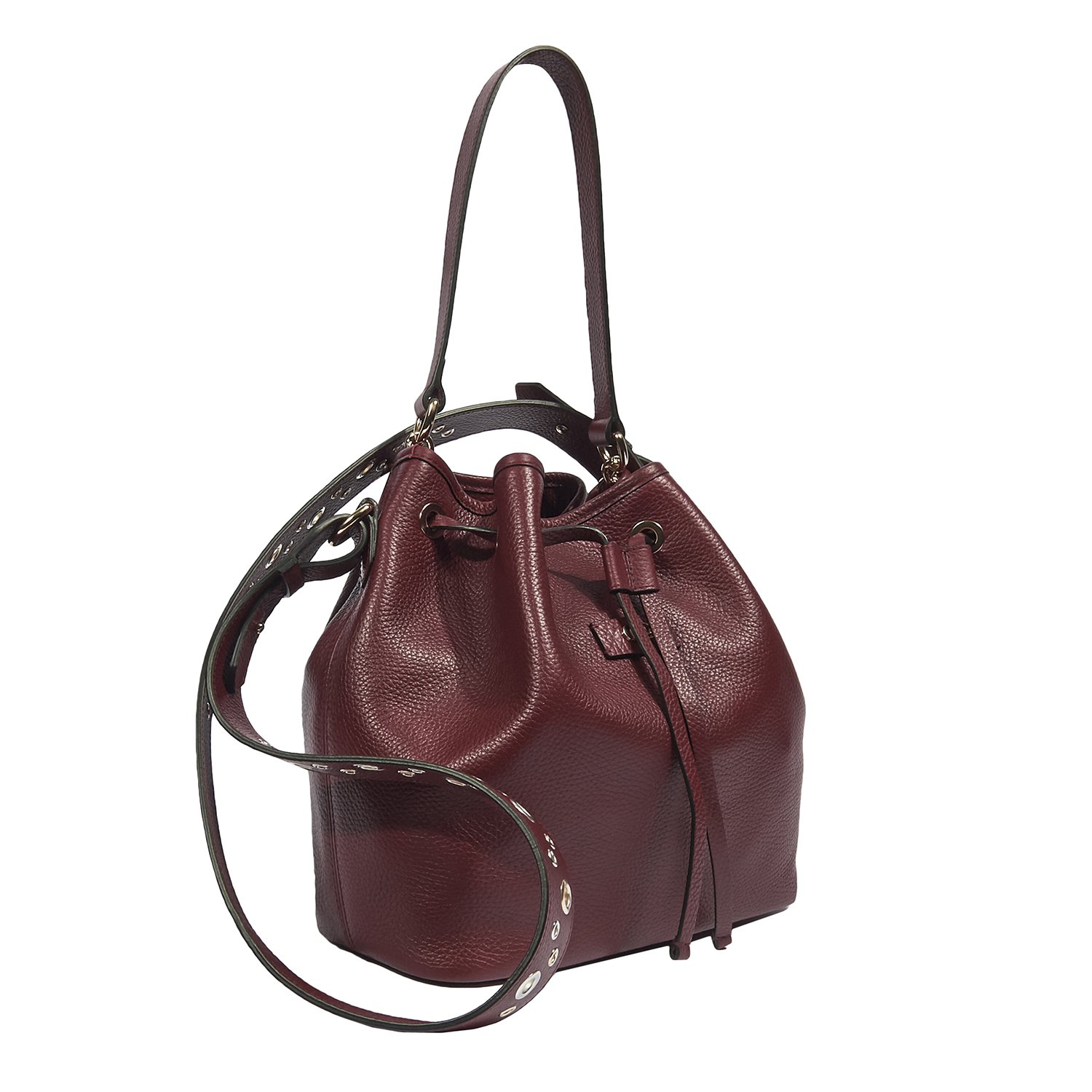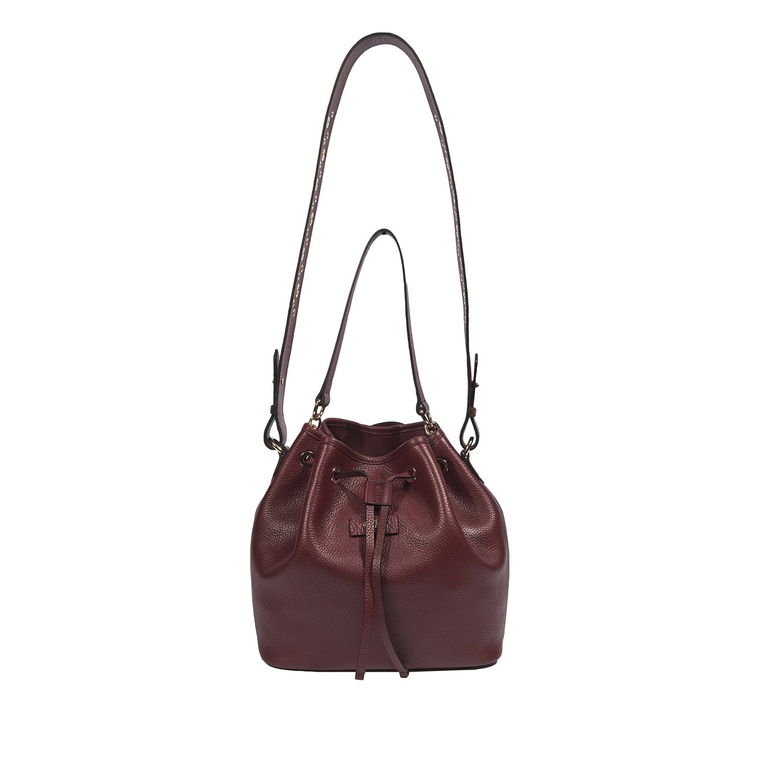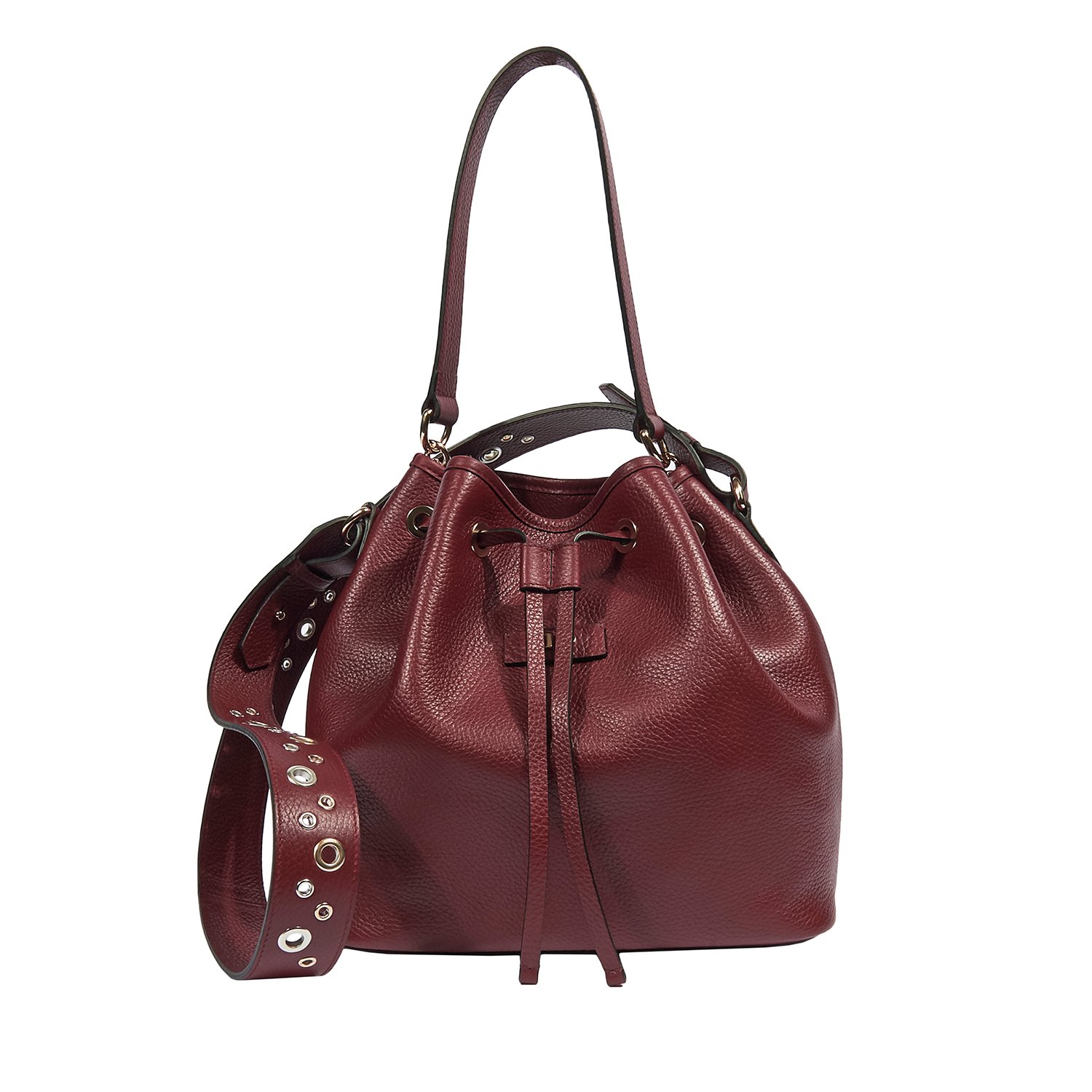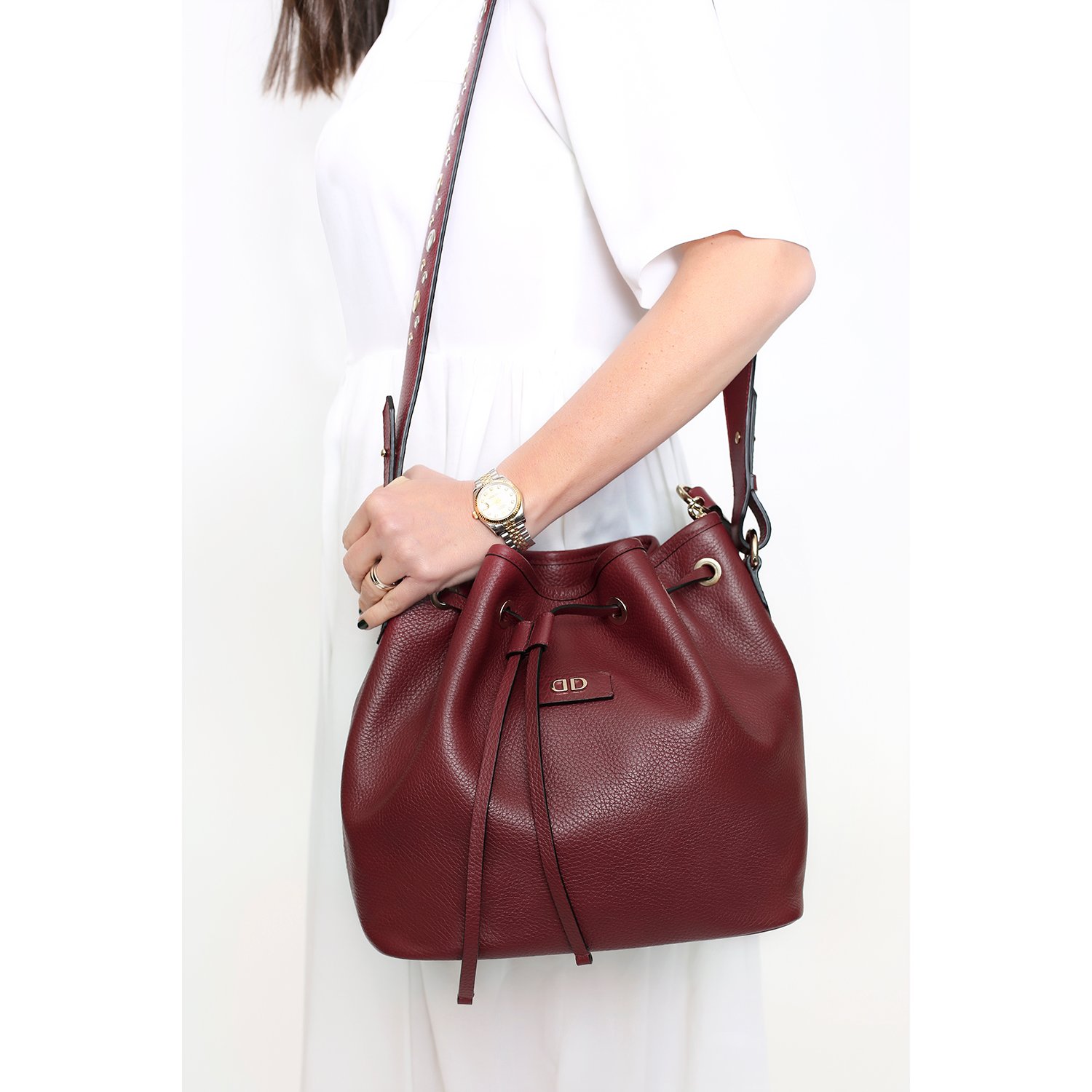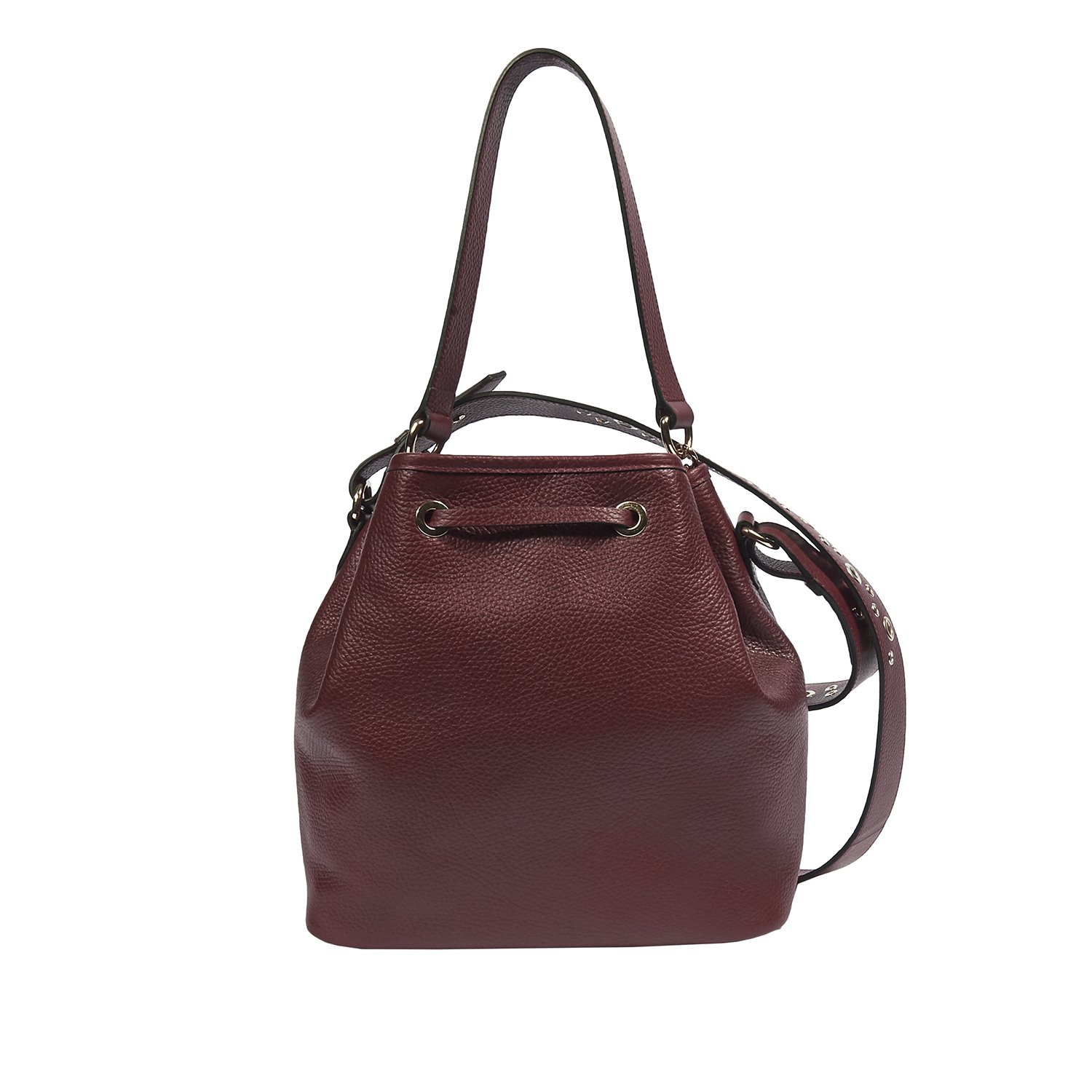 Metalik kuş göz aksesuarlı, ayarlanabilir omuz ve el saplı.