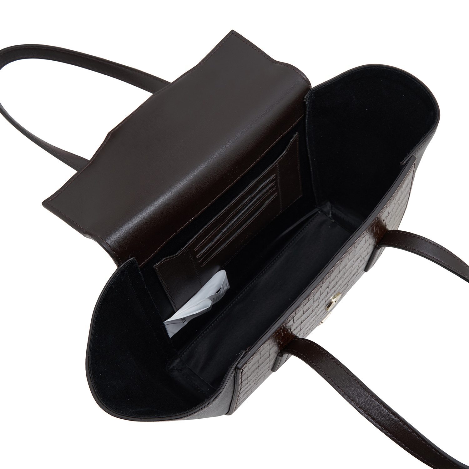 Kroko ve renginde düz deri ile harmanlananarak tasarlanan çantanın kullanımı açısından rahat ve şık kadın çantamızdır.