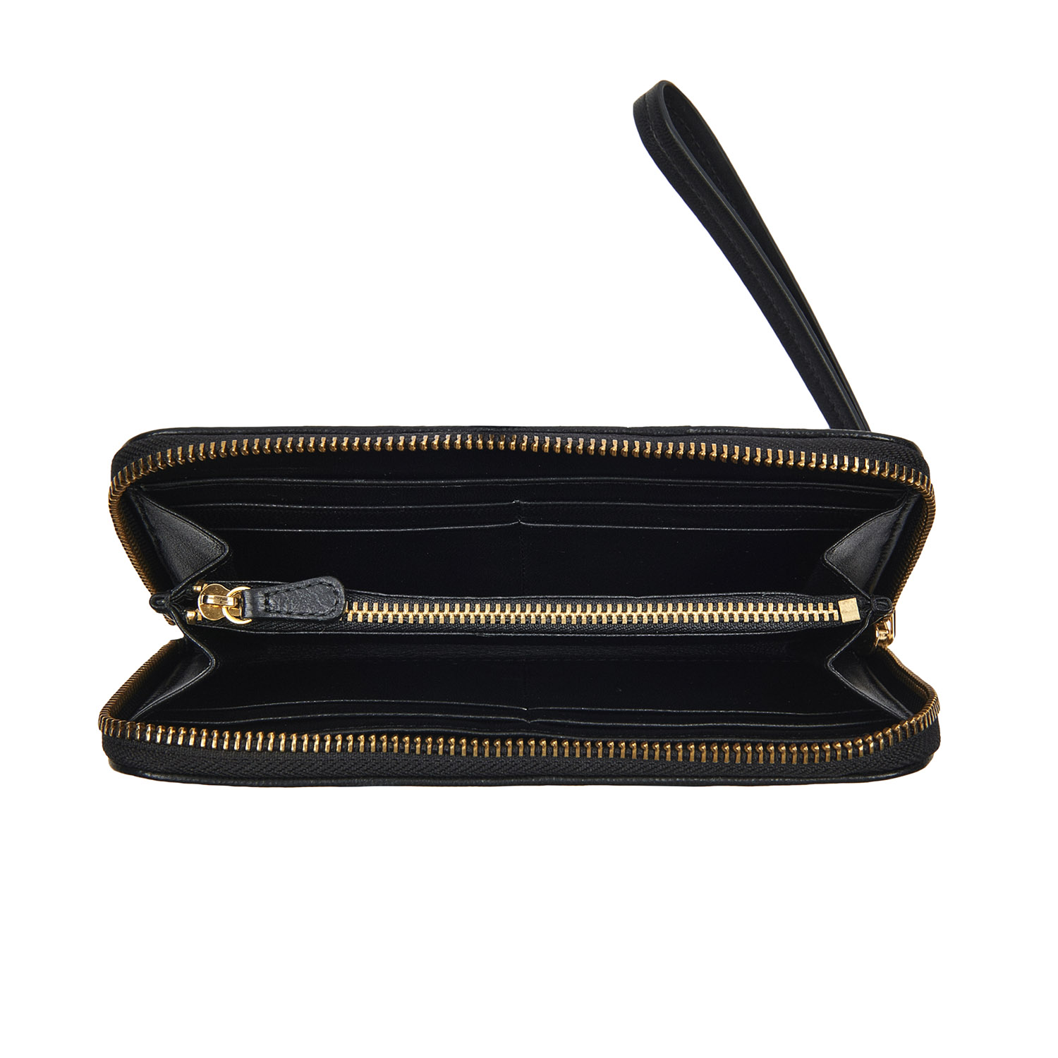 Perfore napa derisi kullanılarak tasarlanmış, fermuarlı kadın cüzdanıdır.
