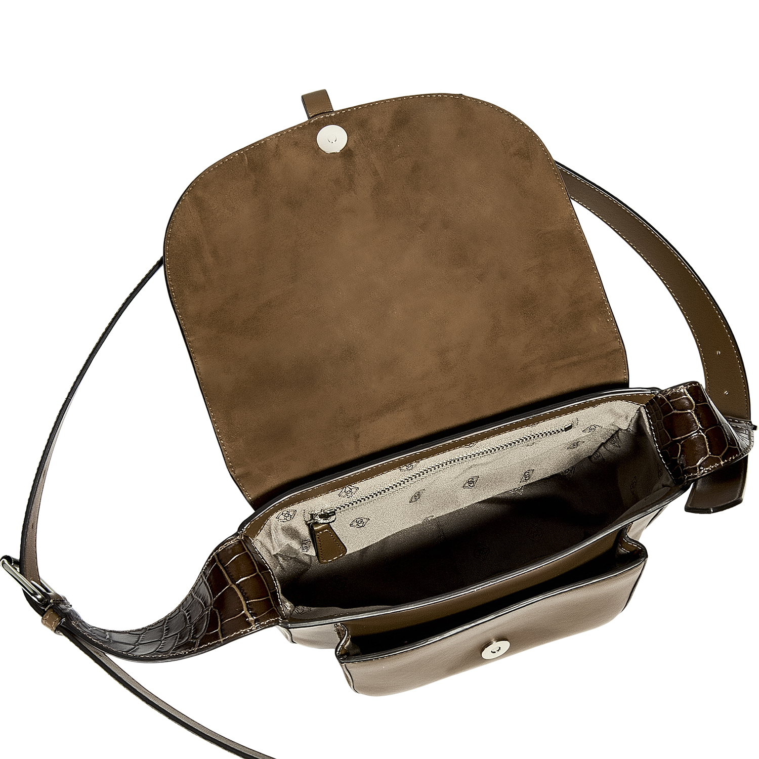 Çantanın ağız kapaması mıknatıslıdır ve içinde gizli fermuarlı cep vardır.