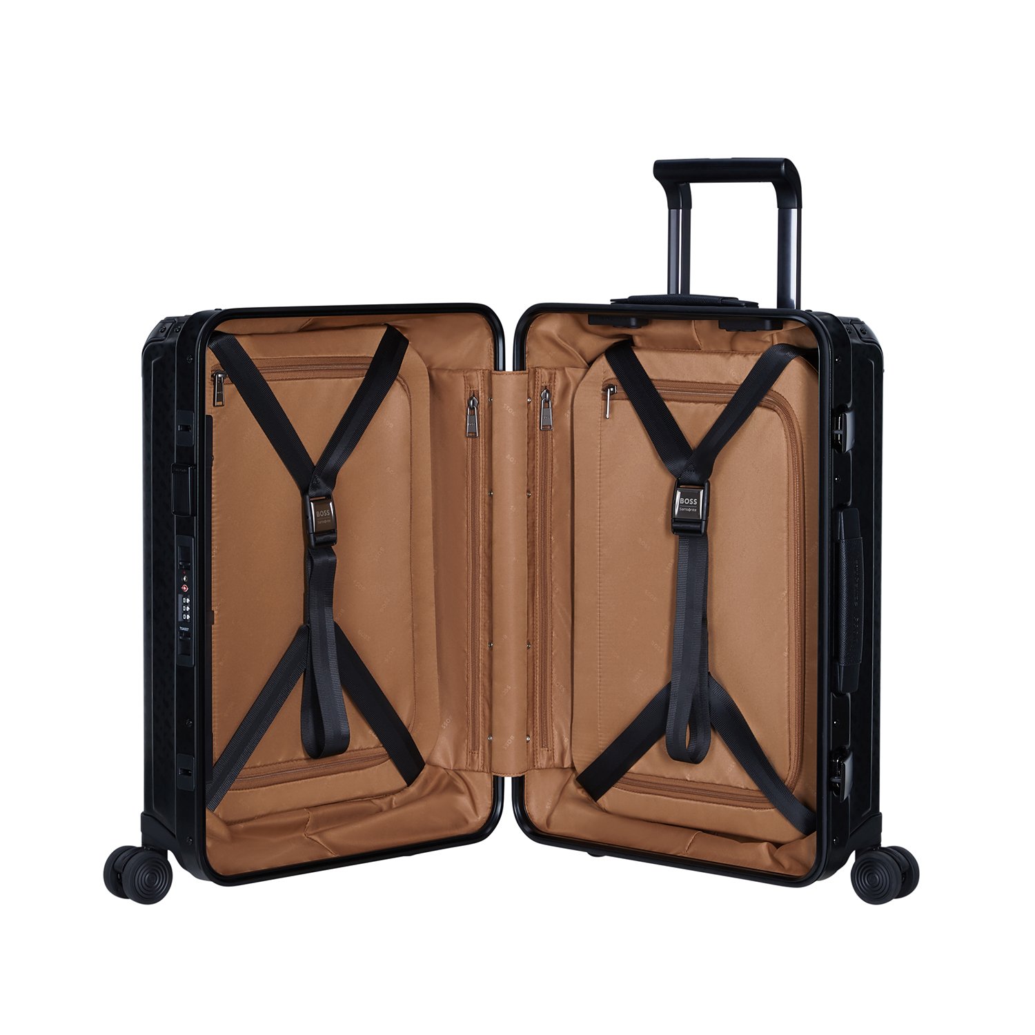 Samsonite siyah lite-box alu boss-spinner 55 cm orta boy valiz.