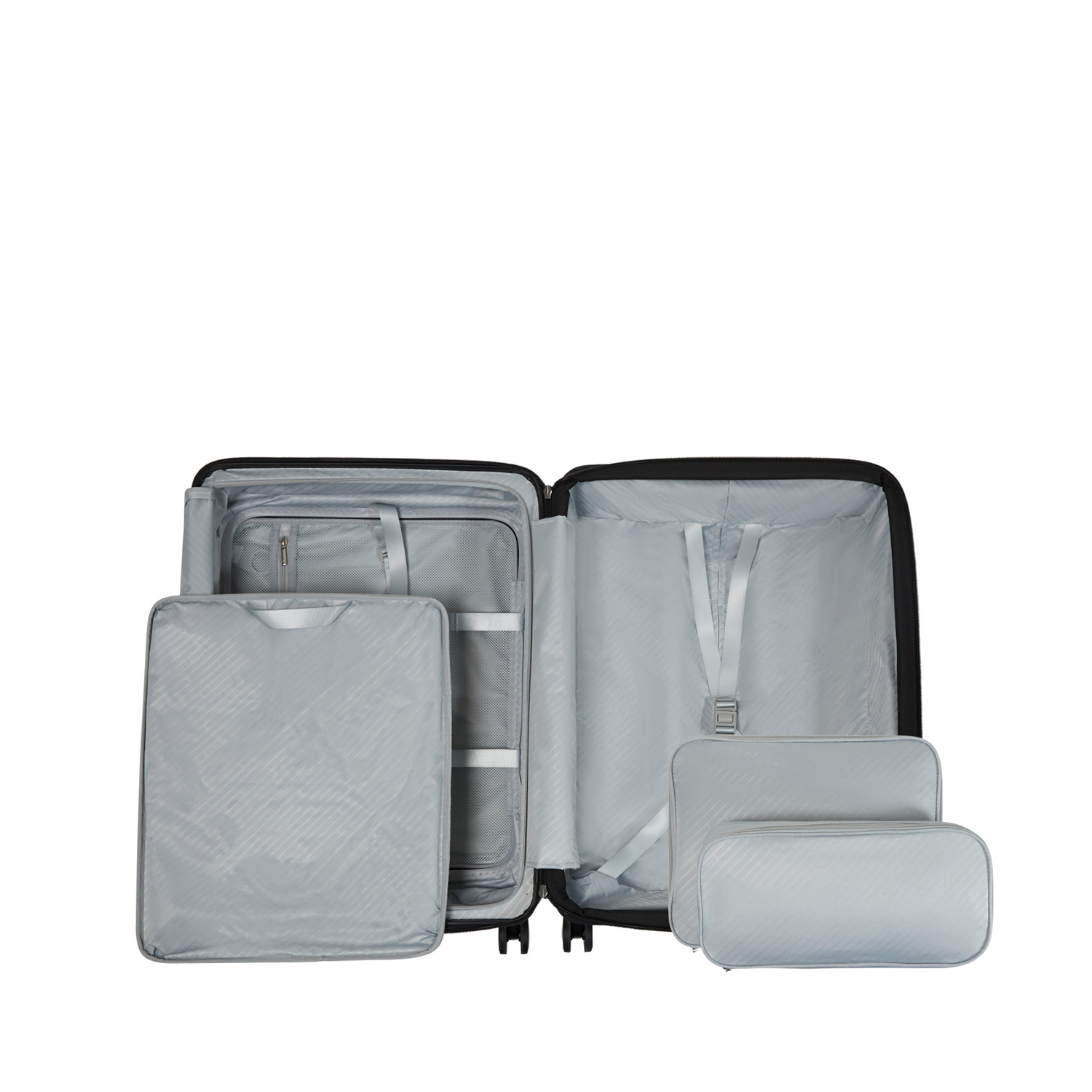 Sert kabin valizler, geleneksel orta açılıma ek olarak, eşyalarınıza kolay erişim sağlayan yenilikçi bir ön kapak ve yanında sunulan paketleme küpleriyle donatılmıştır.