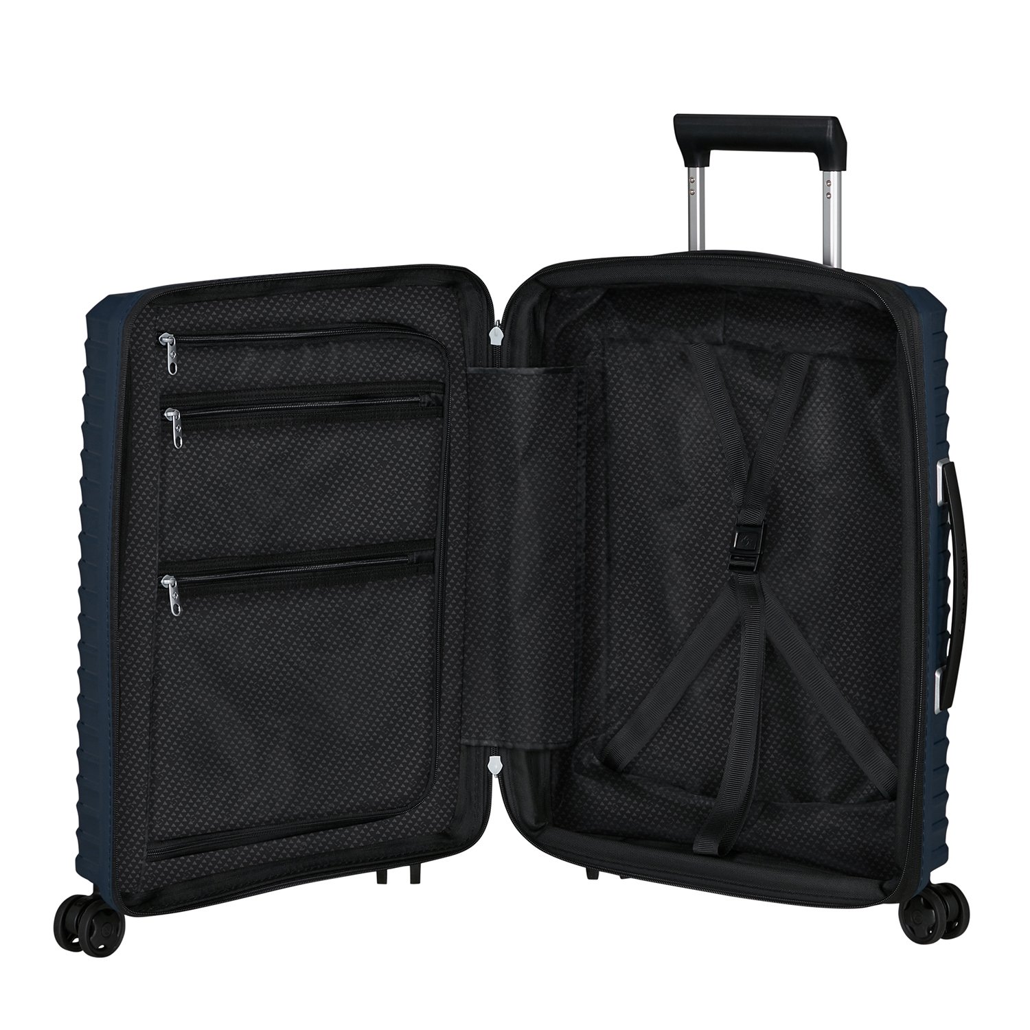 Upscape ile konforu seçin! Hafifliği, darbe emici süspansiyon tekerlekleri ve çıkarılabilir ve yıkanabilir iç astarı sayesinde kaygısız seyahatin keyfini çıkarın. Kullanışlı genişletilebilir körük özelliği ve göz alıcı gümüş kaplamaları seyahatinizin rahat ve kolay geçmesine katkıda bulunuyor..