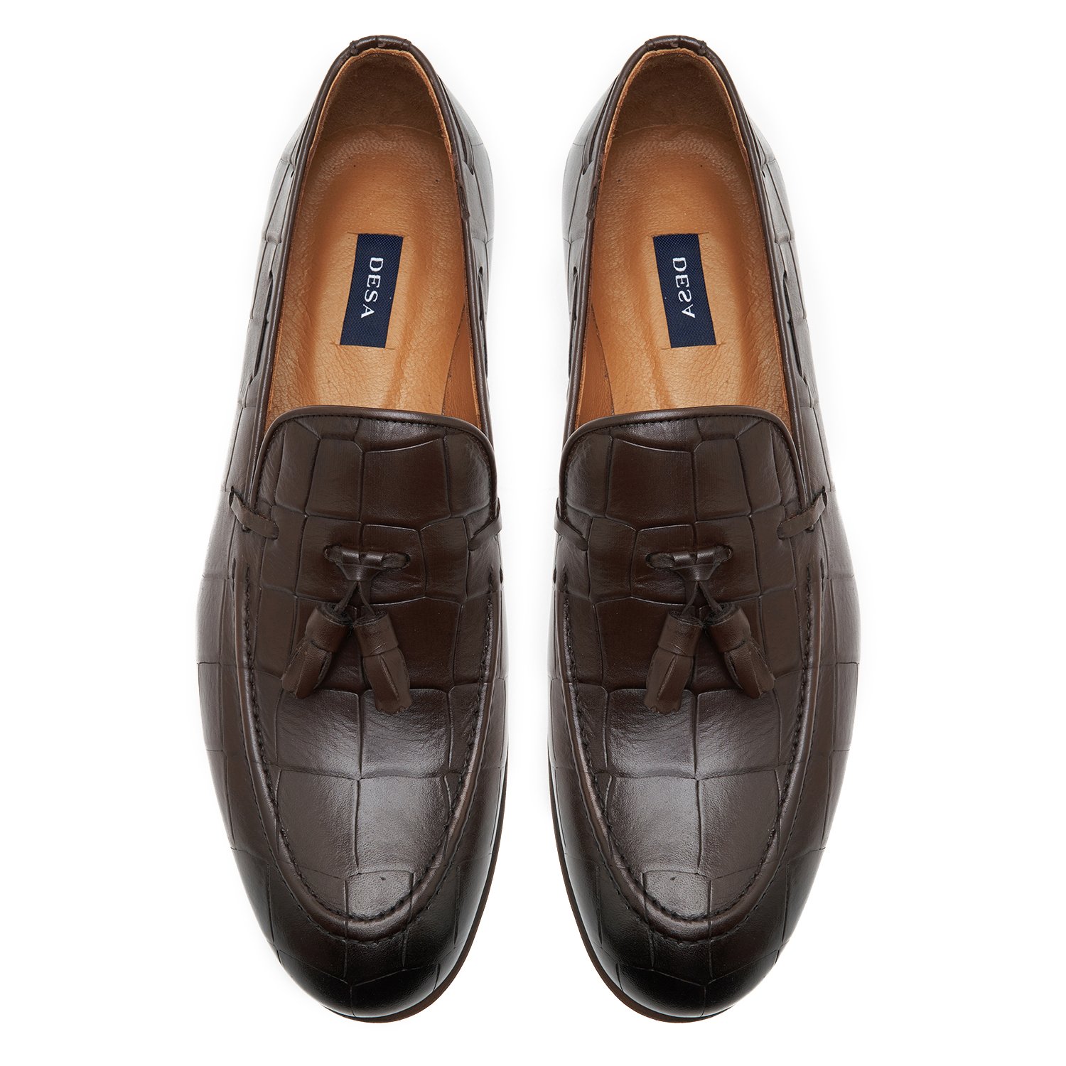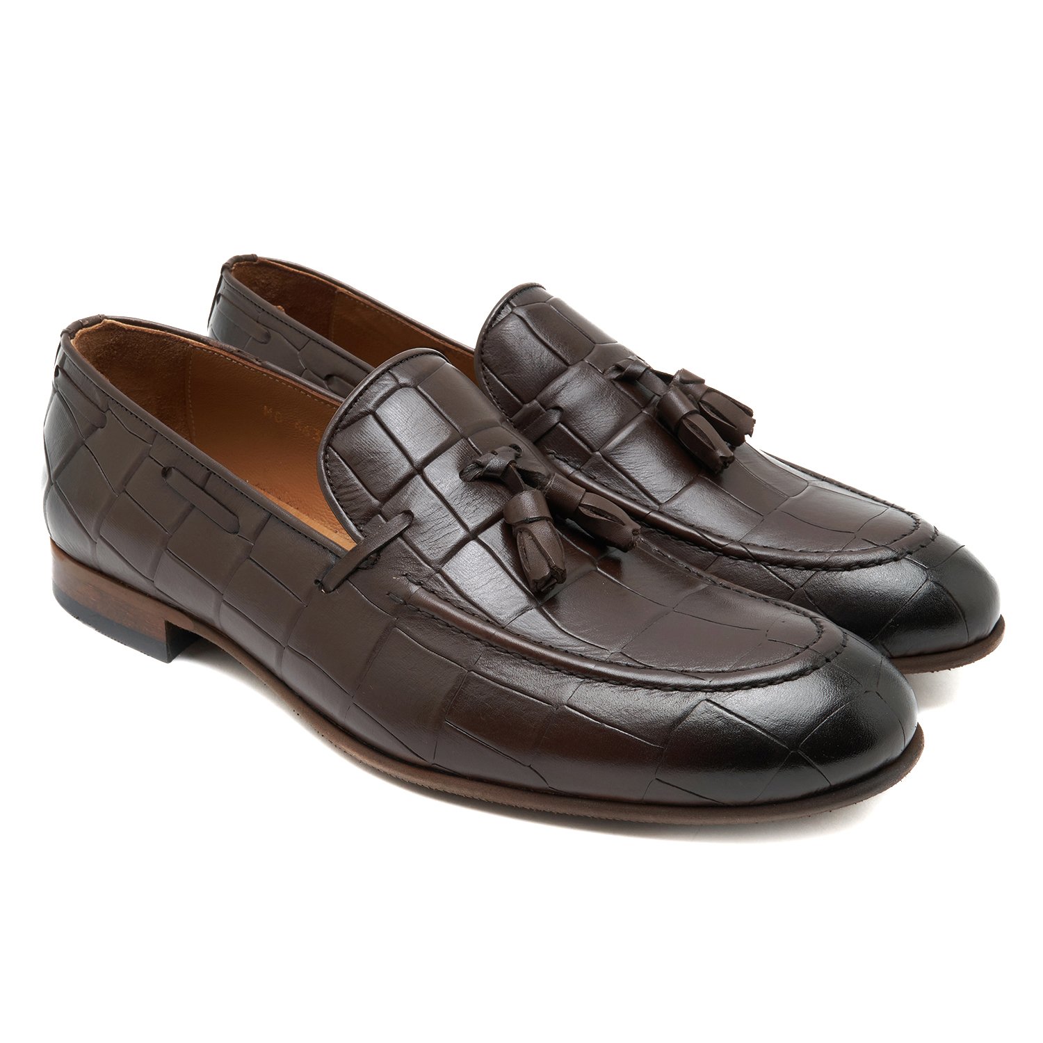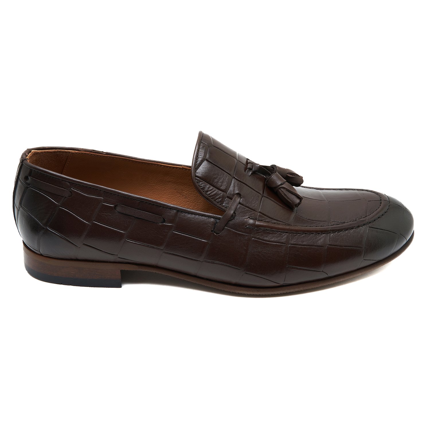 Samuel Kahve Erkek Kroko Baskılı Deri Klasik Ayakkabı