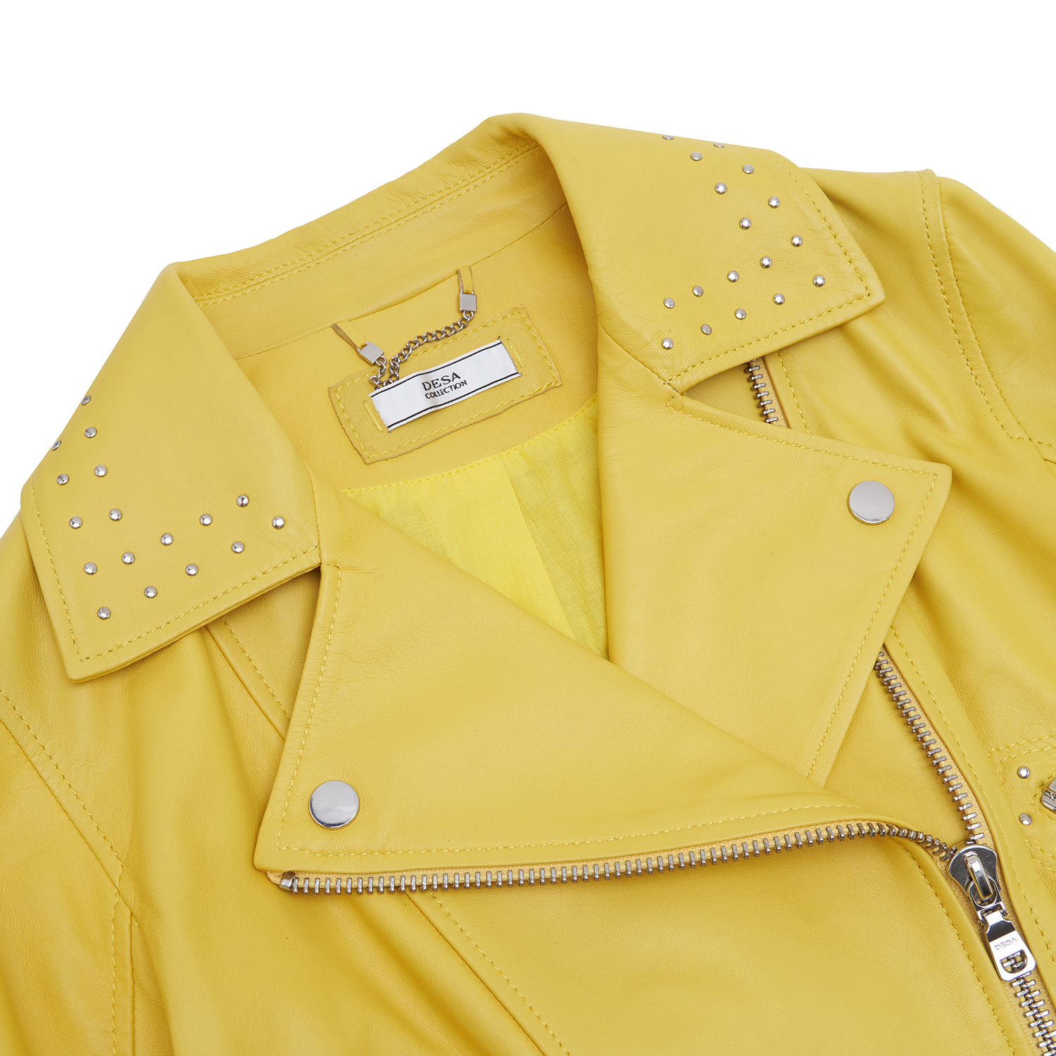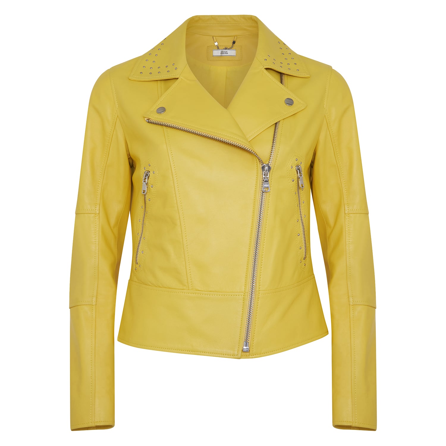 Sarı Belina Kadın Biker Deri Ceket