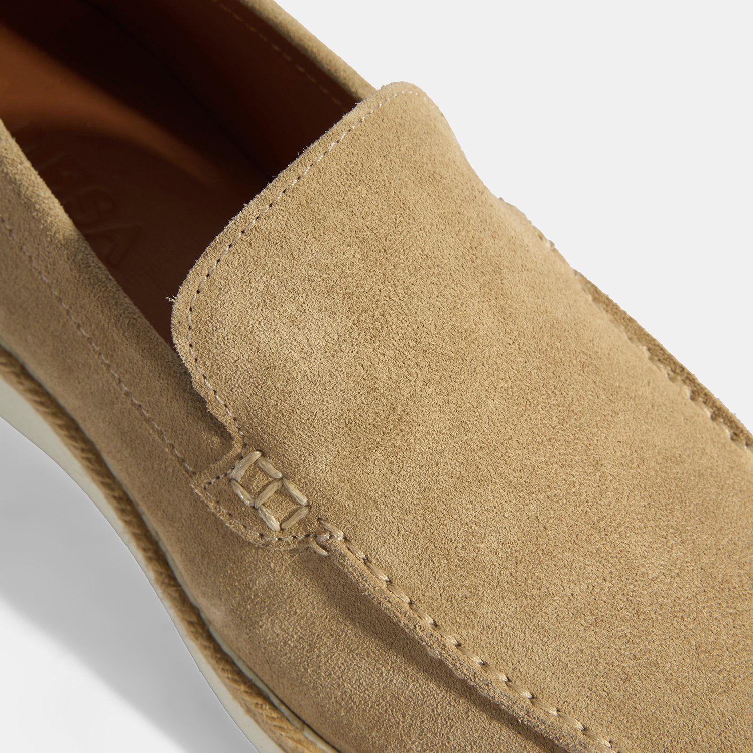 %100 süet deri, %100 deri astar ve mostra, eva tabanlı bağcıksız erkek loafer.