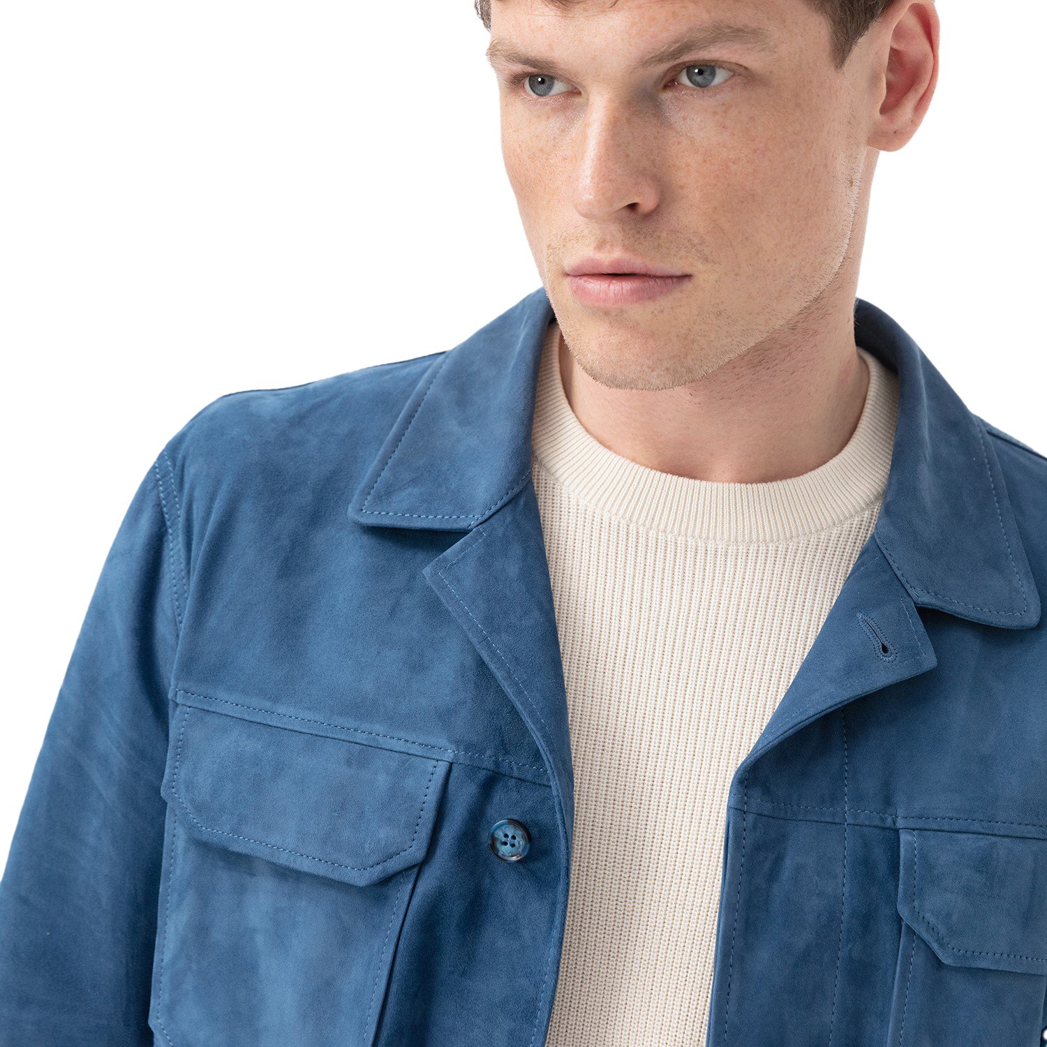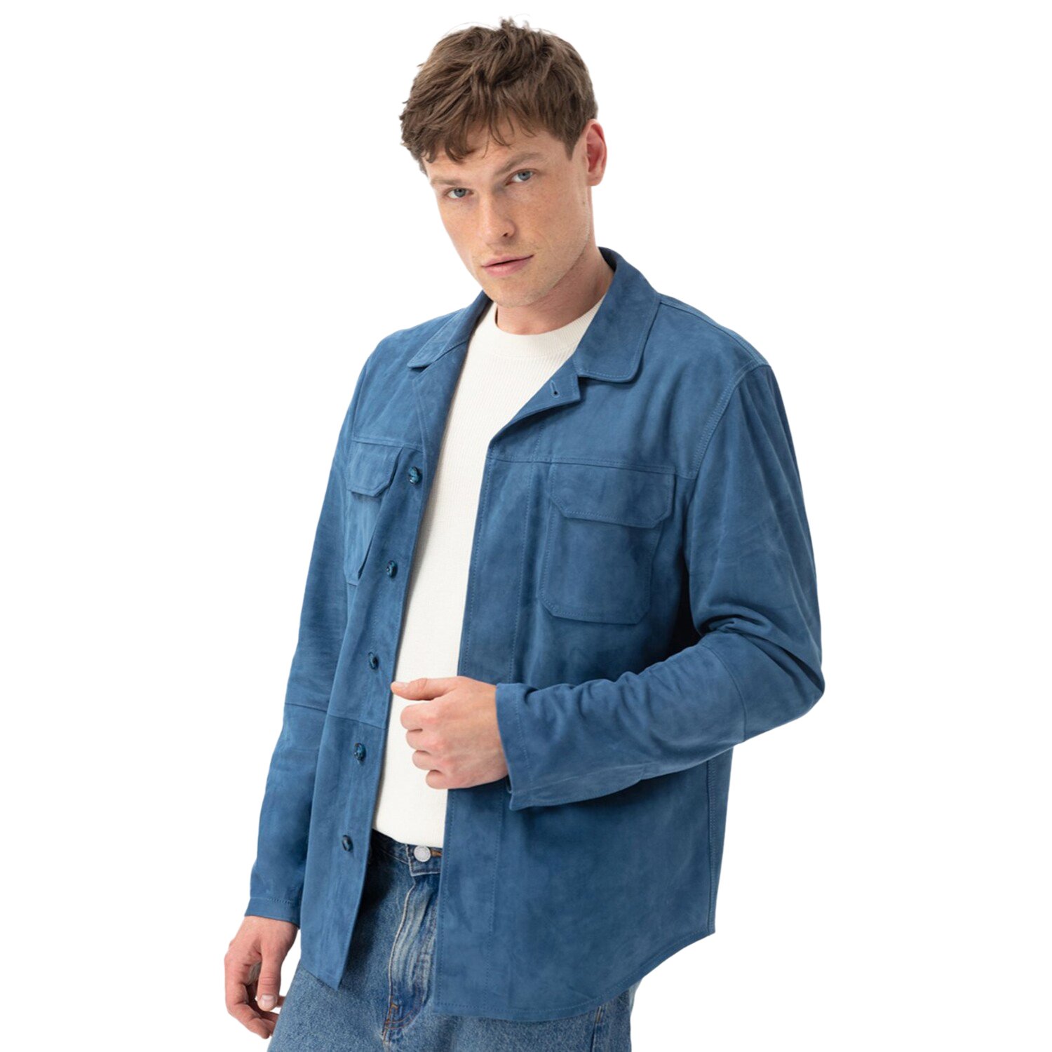 Saverio Lacivert Erkek Süet Deri Gömlek