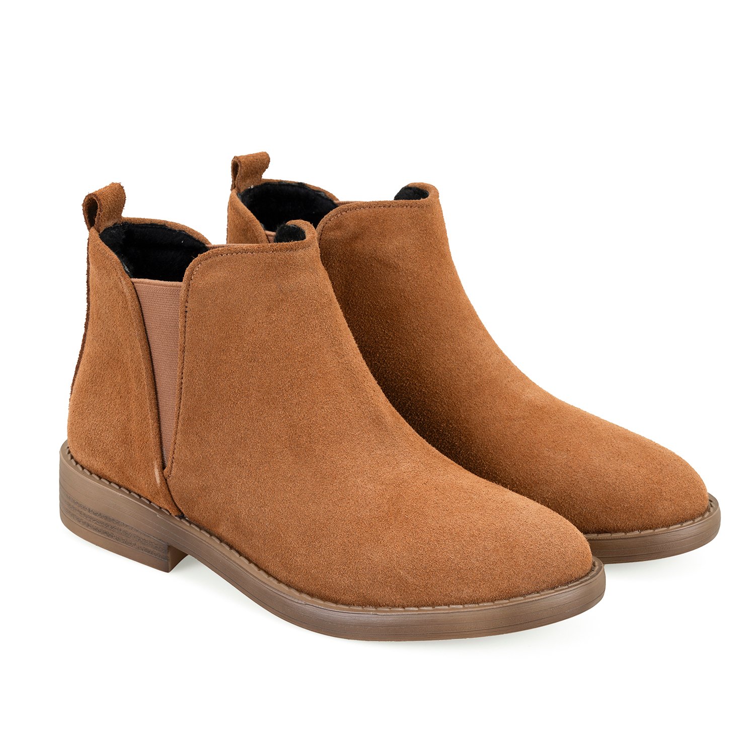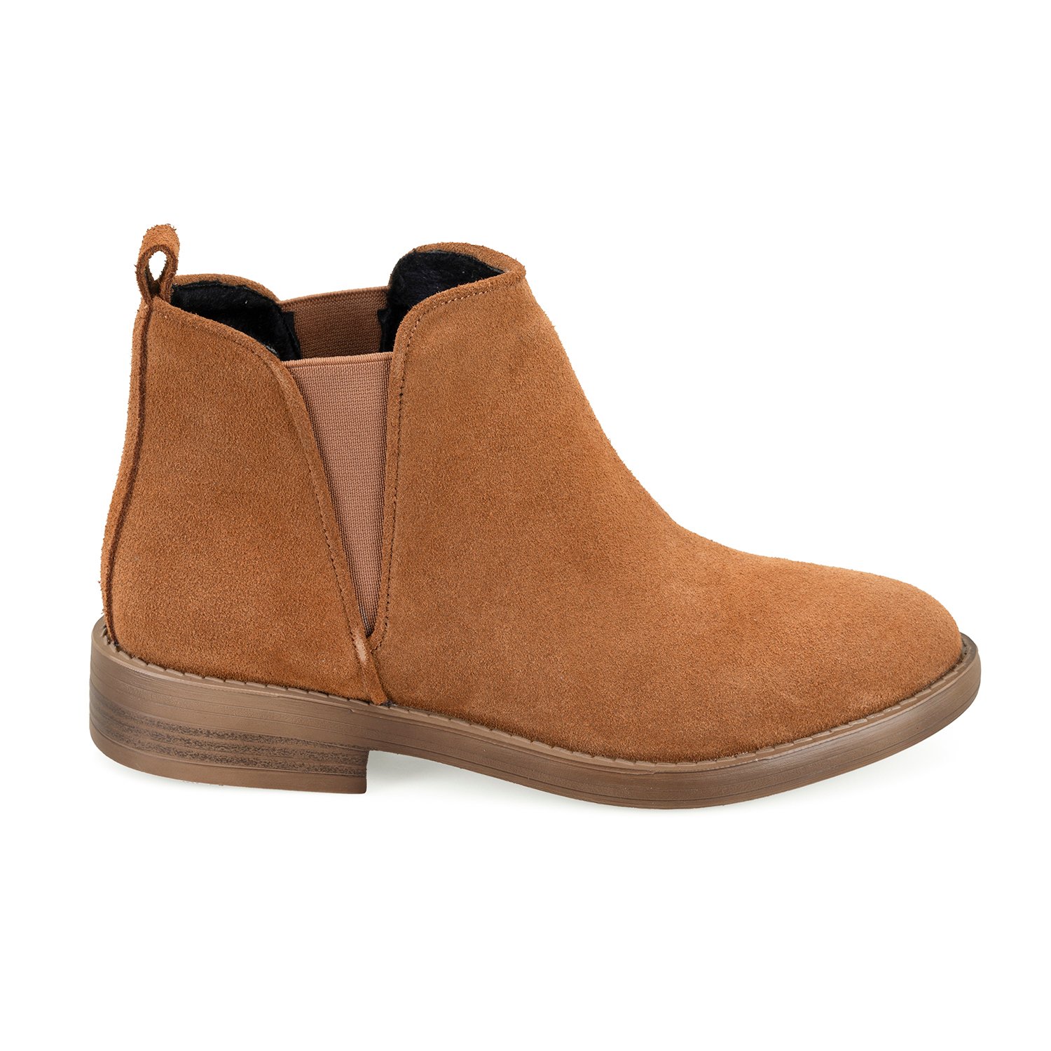 %100 süet deri, deri iç tabanlı, tekstil astarlı, termo tabanlı, lastik detaylı kadın chelsea bot.