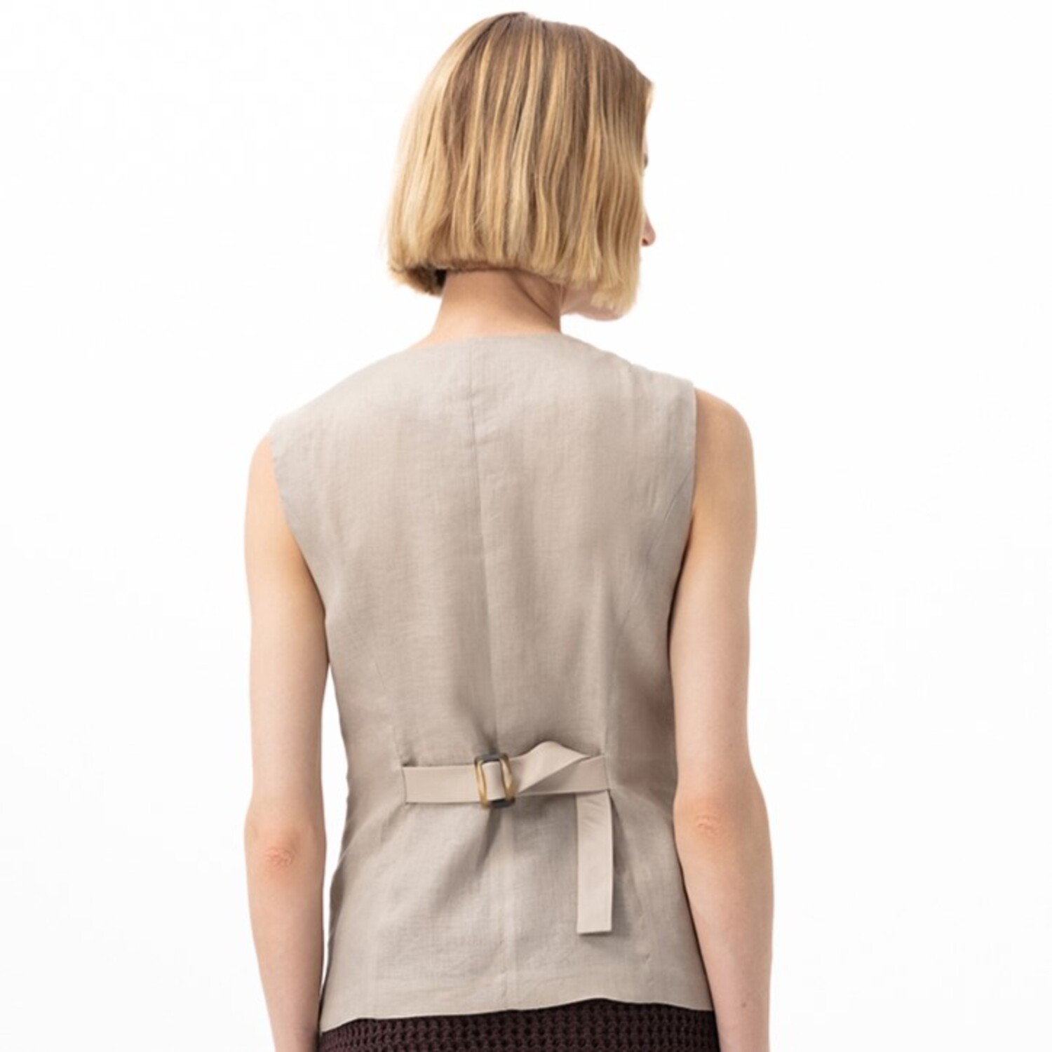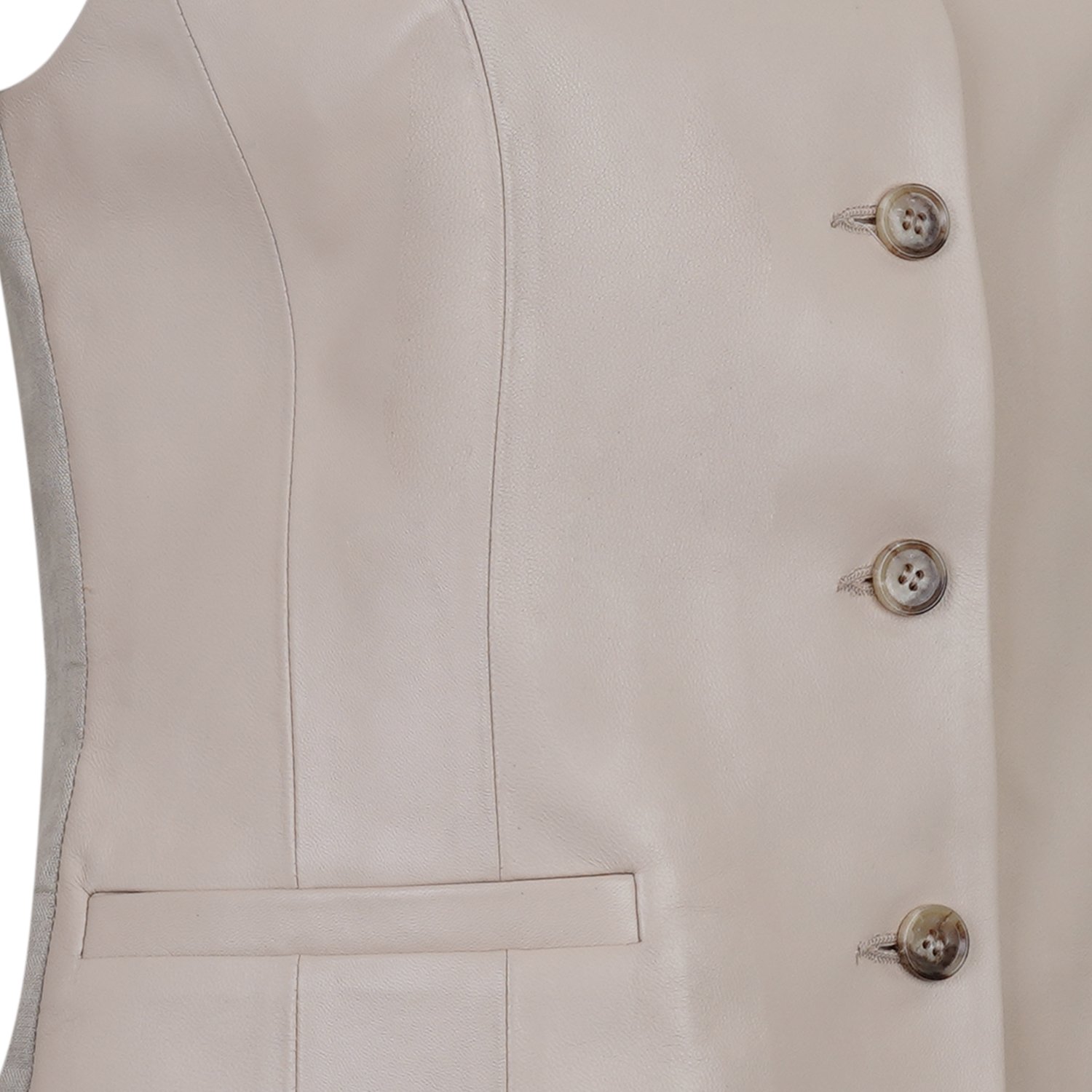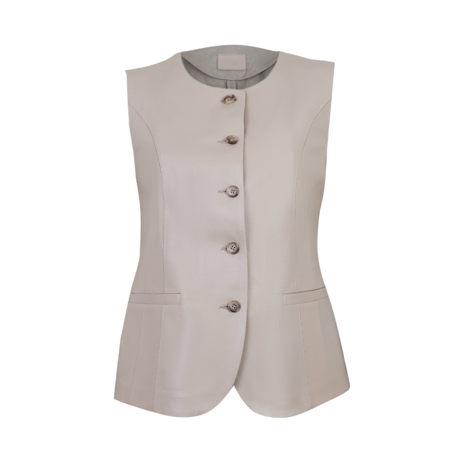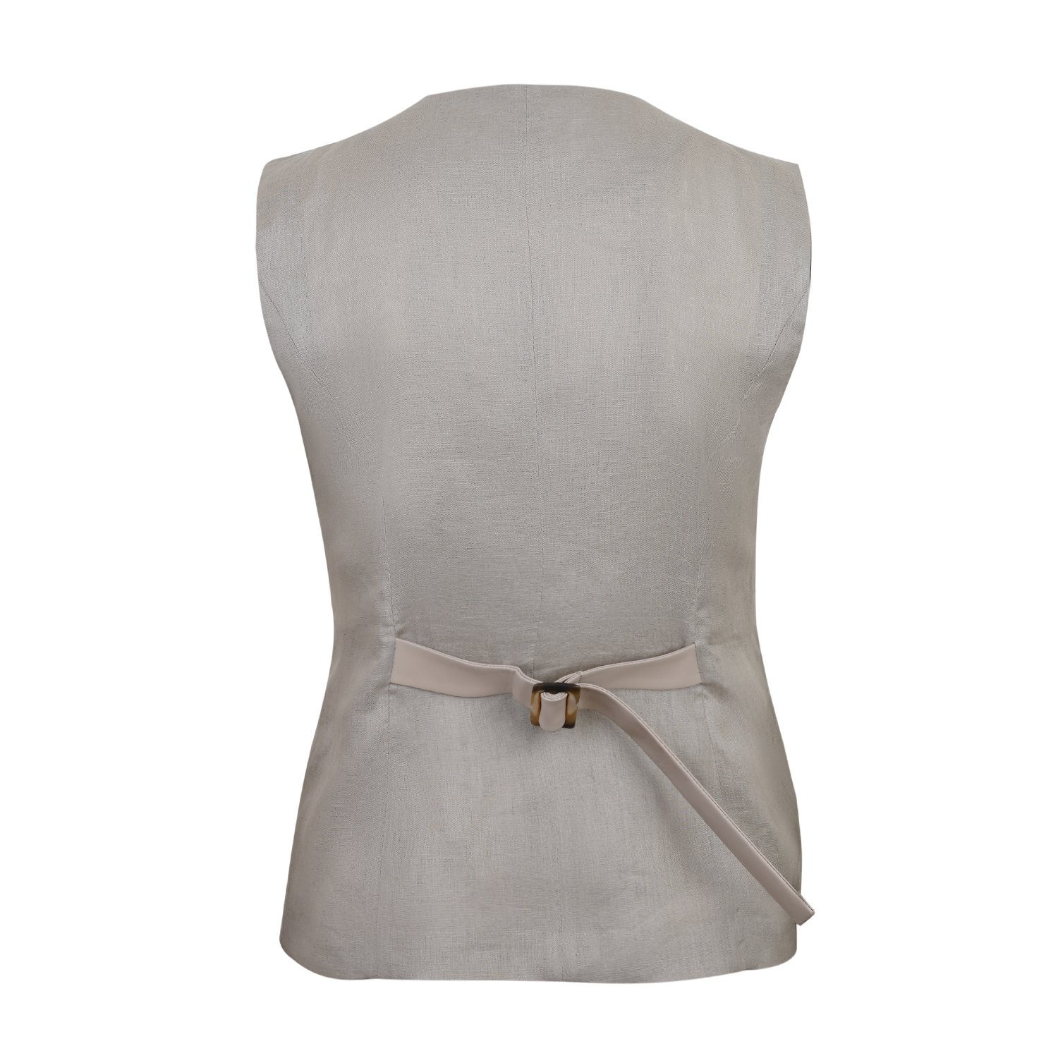 Siena Bej Kadın Deri Keten Yelek/Bluz