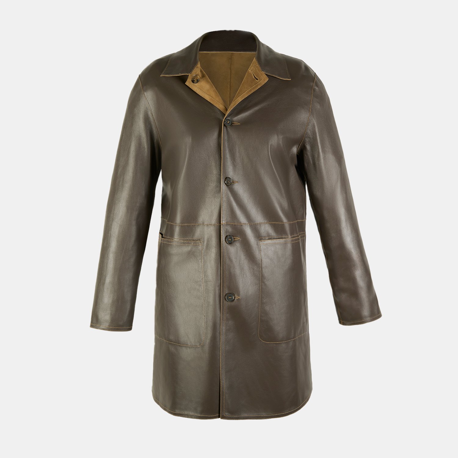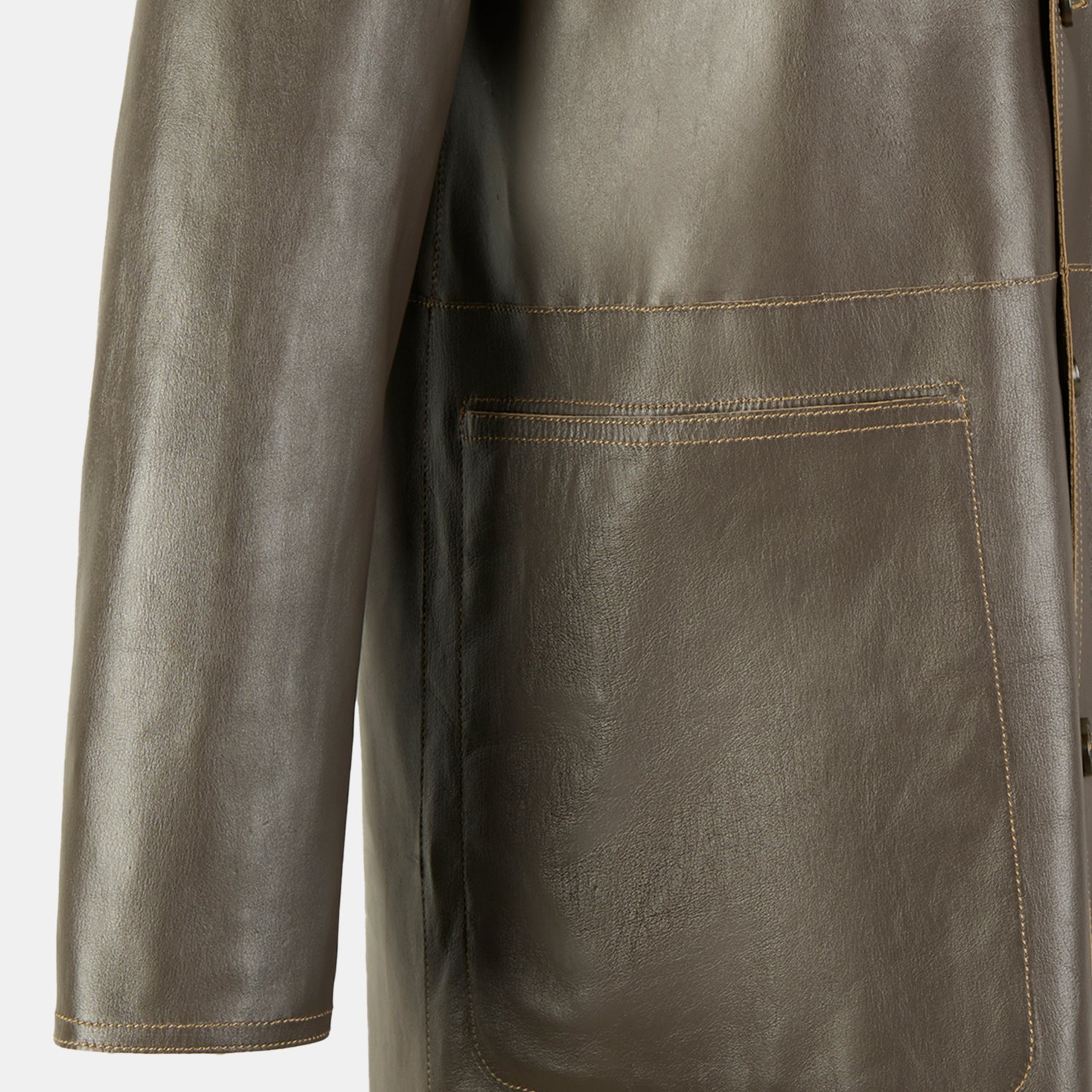Simonetta Yeşil Kadın Çift Taraflı Deri Pardösü