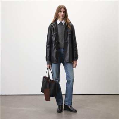 Siola Siyah Kadın Deri Mont