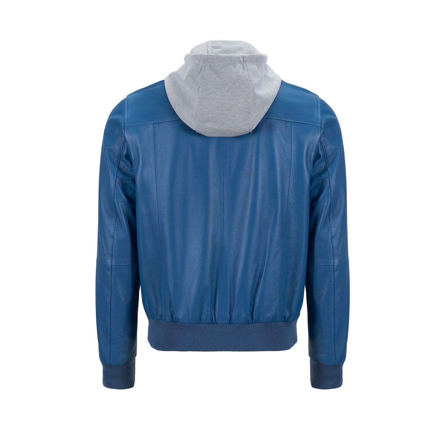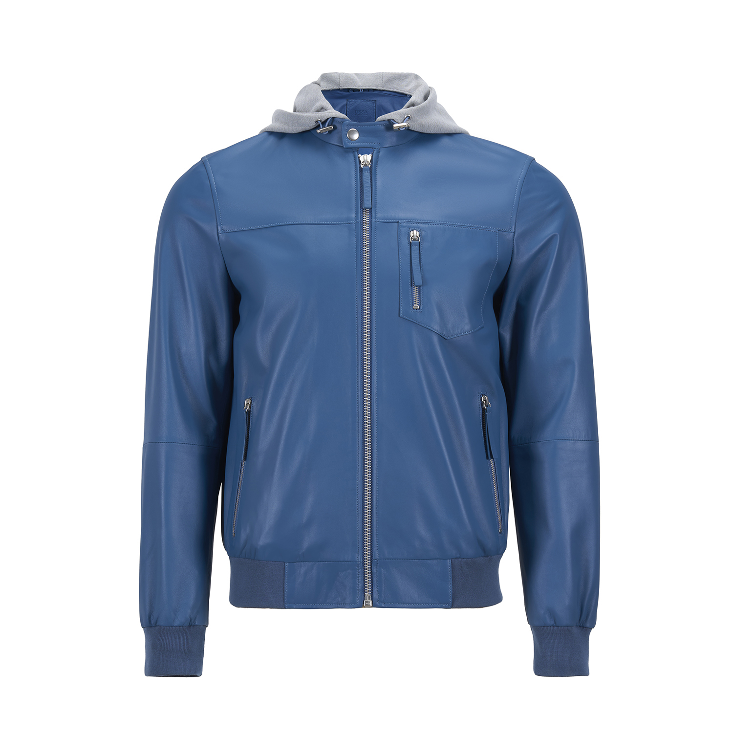 Erkek hakim yakalı çıkma kapüşonlu bomber ceket, önden metal fermuar kapamalıdır.