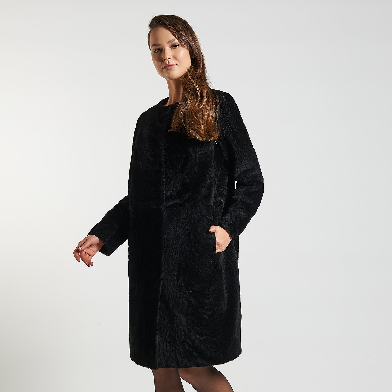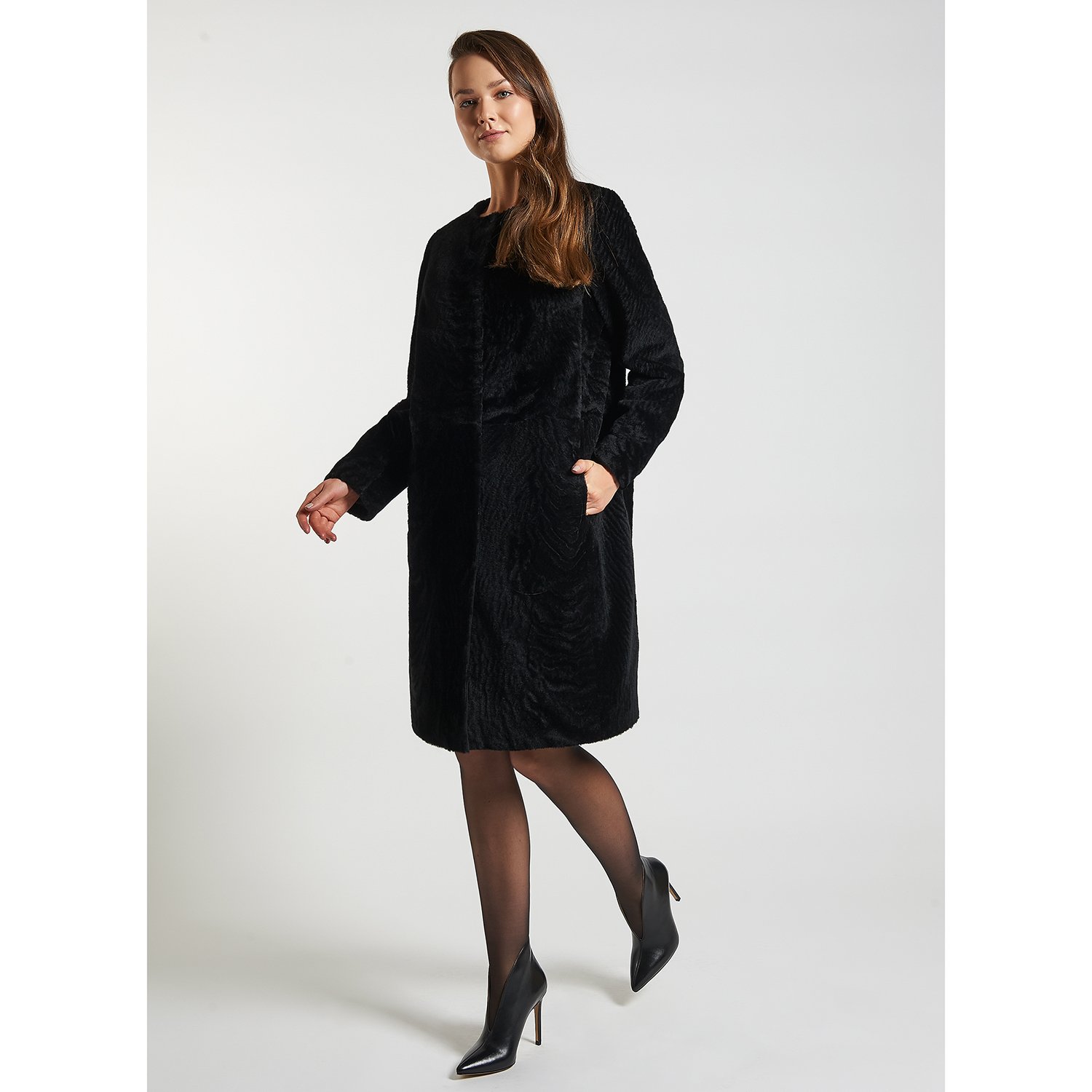 Sade ve şık bayan kürk kaban.
