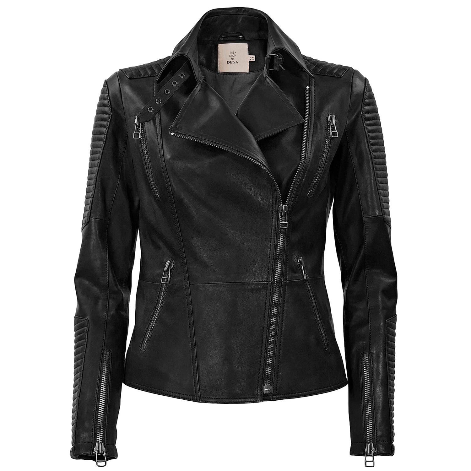 Biker model, kadın deri ceket.