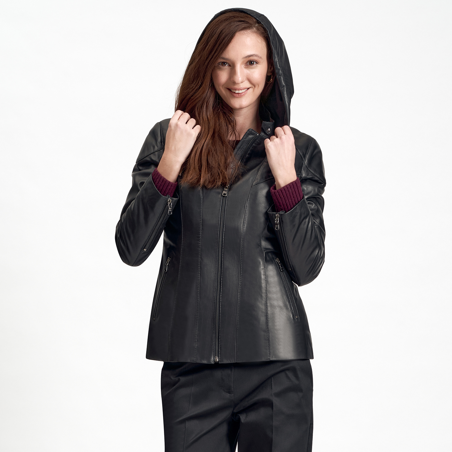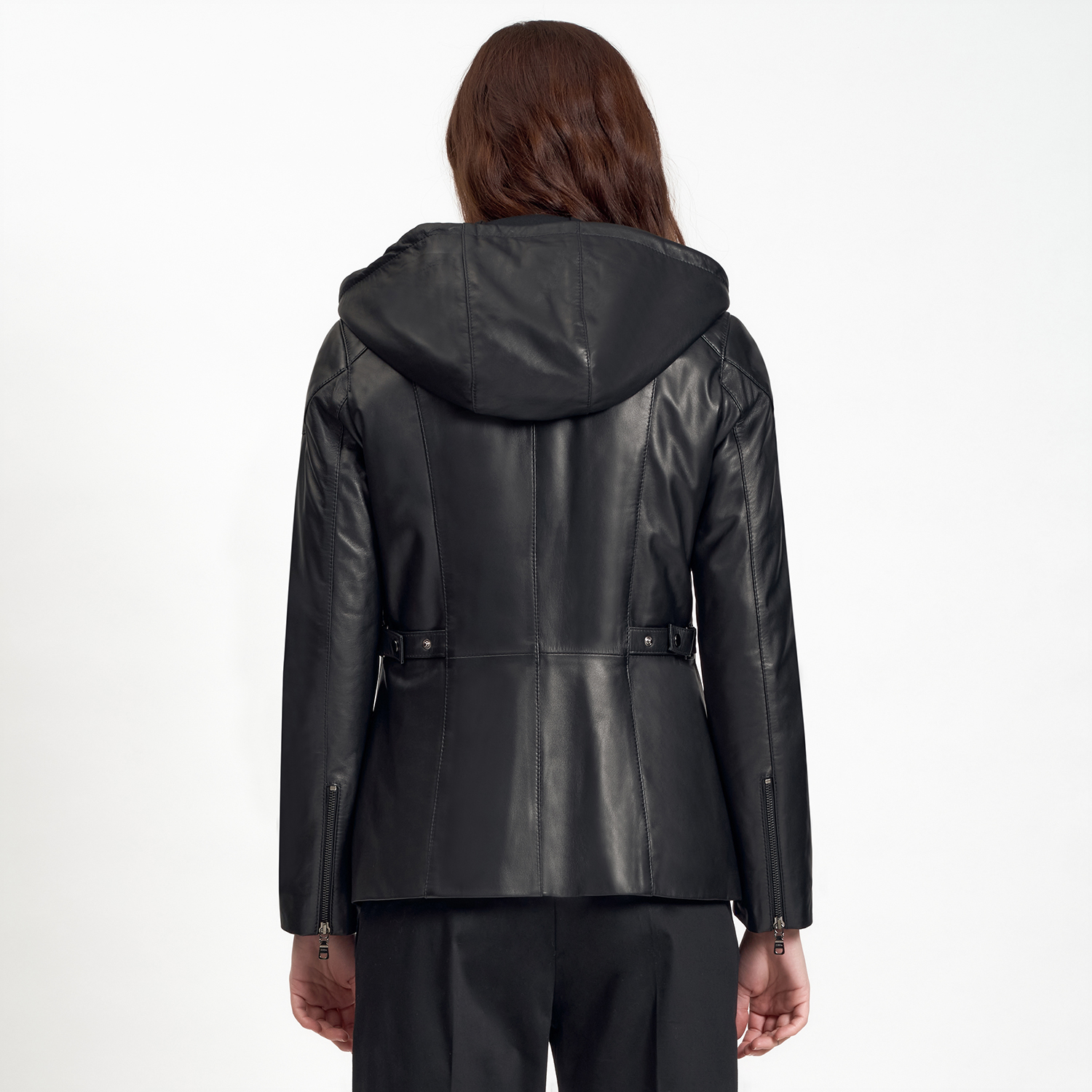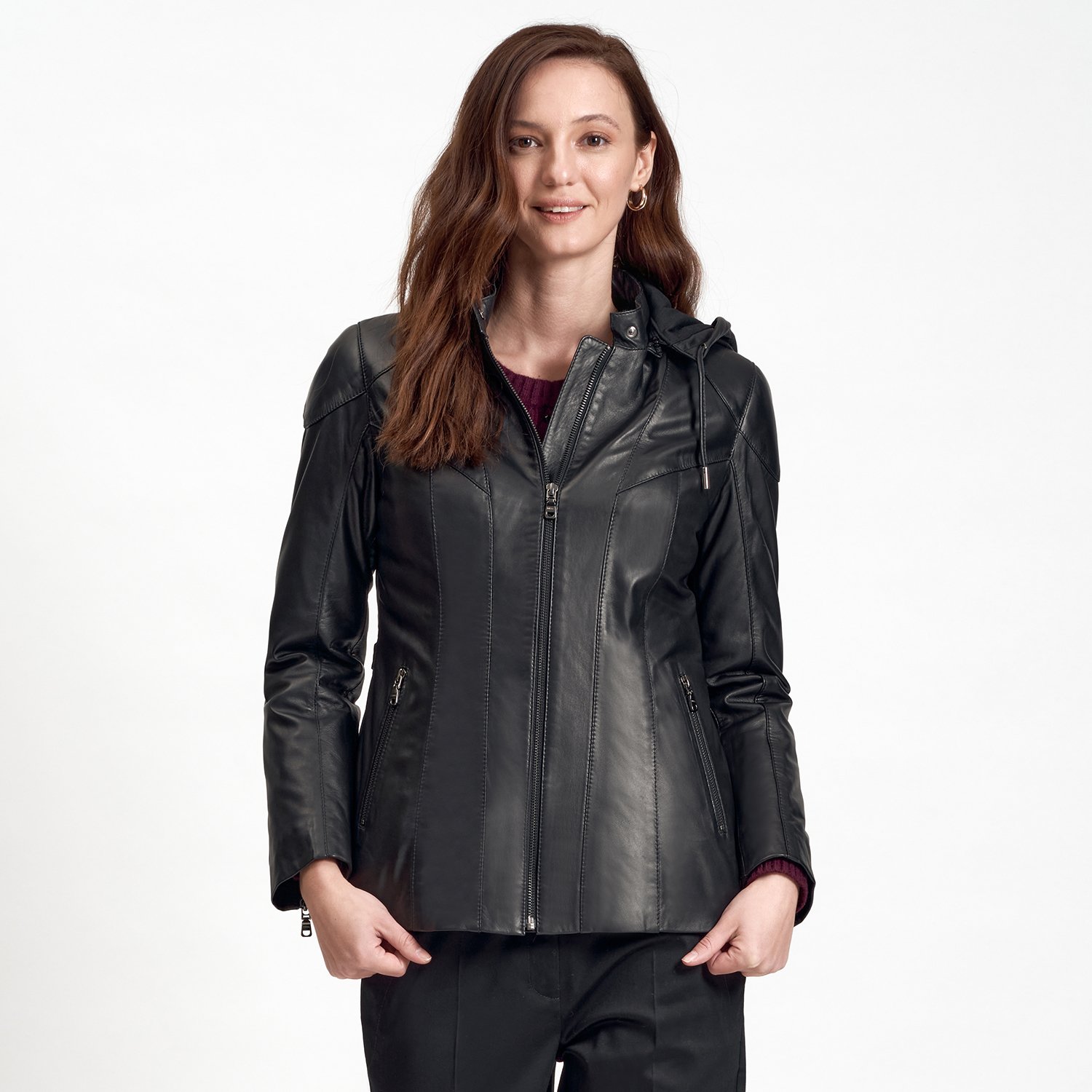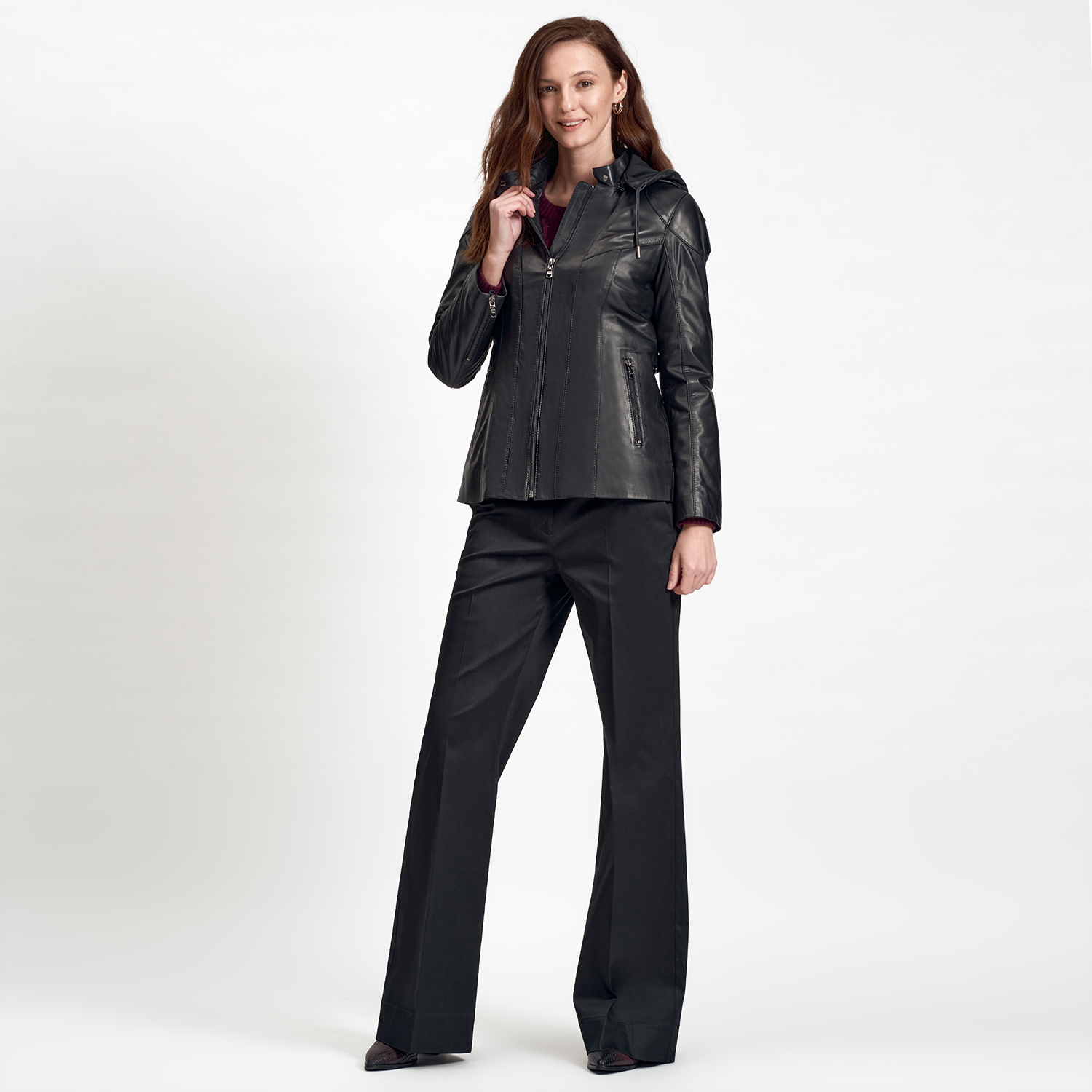 Kadın, deri mont.