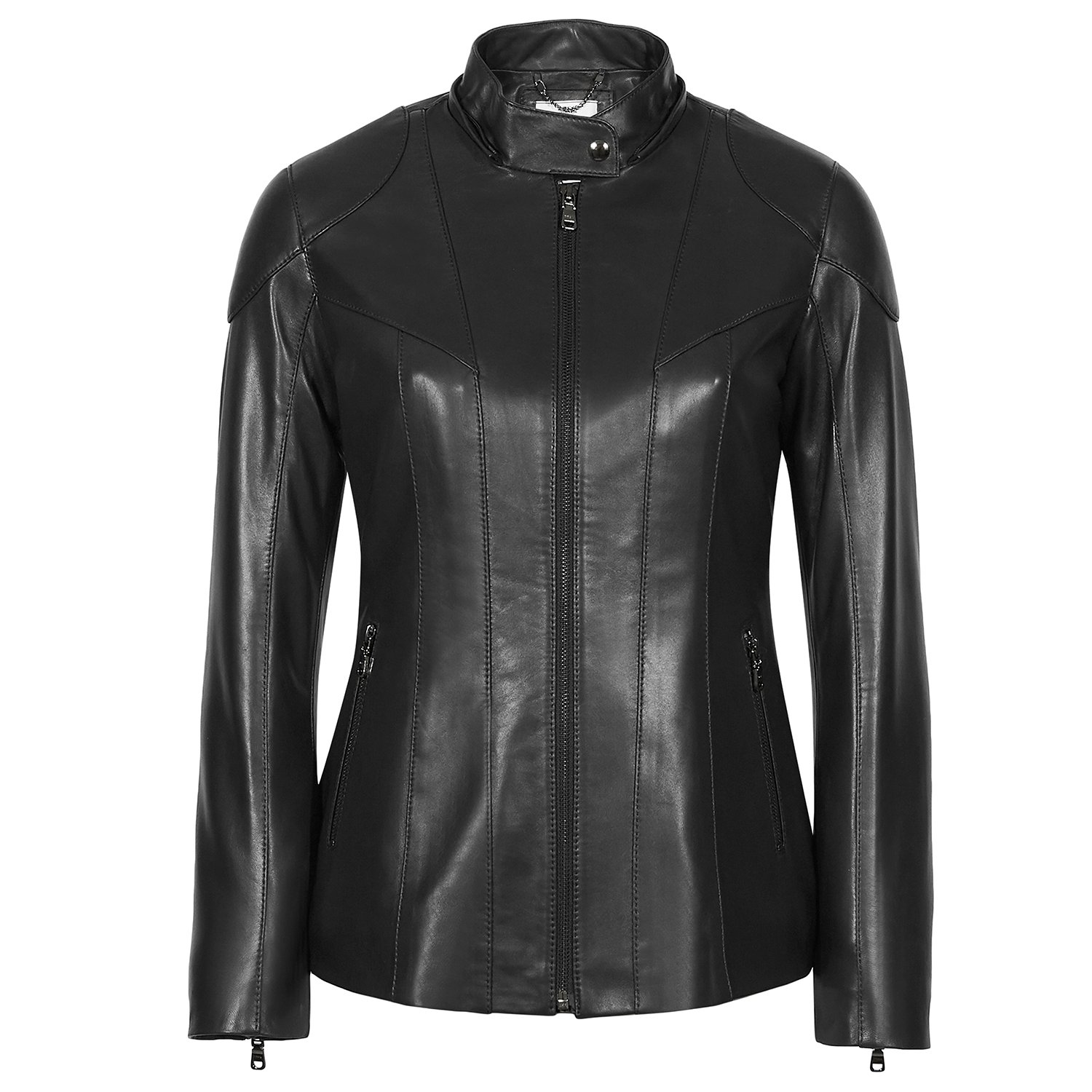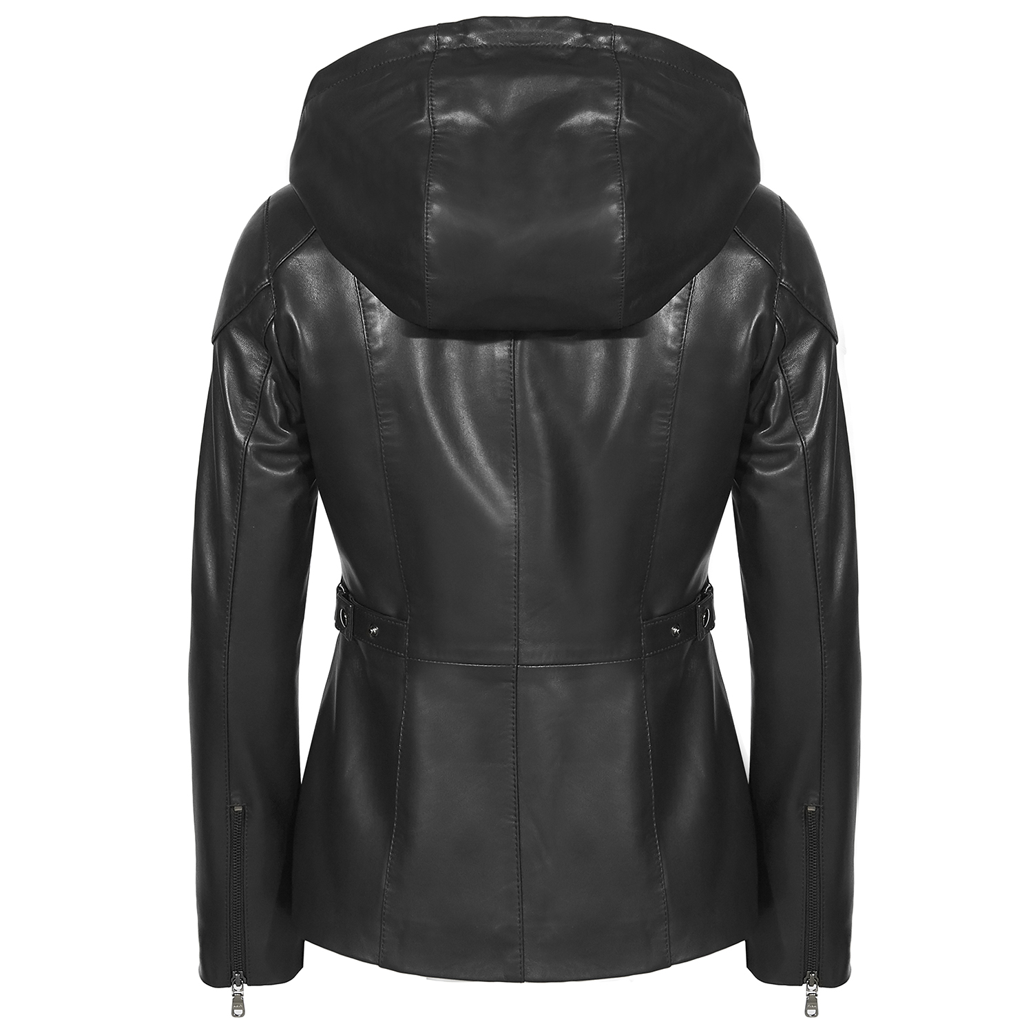 Siyah Dayra Kadın Deri Mont