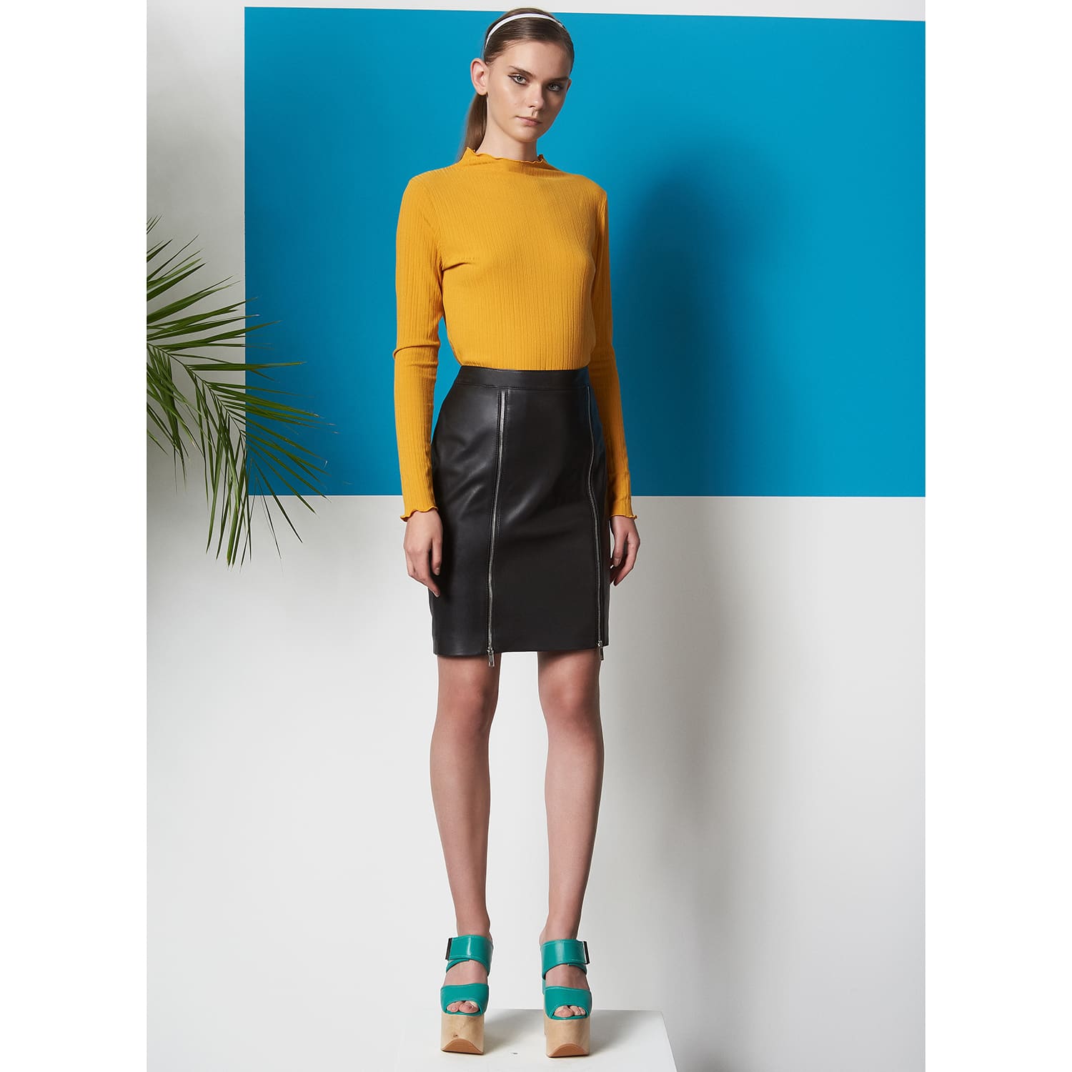 Önden süs metal fermuar detaylıArkadan gizli fermuar kapamalıYanlarda süs cep girişi vardır.