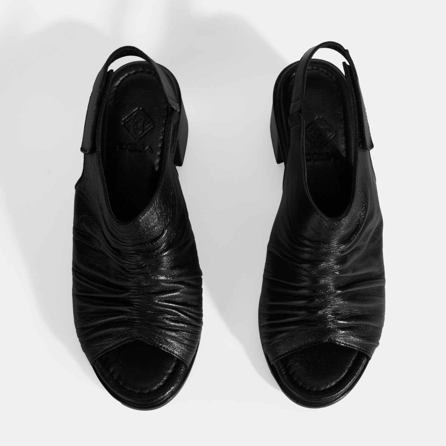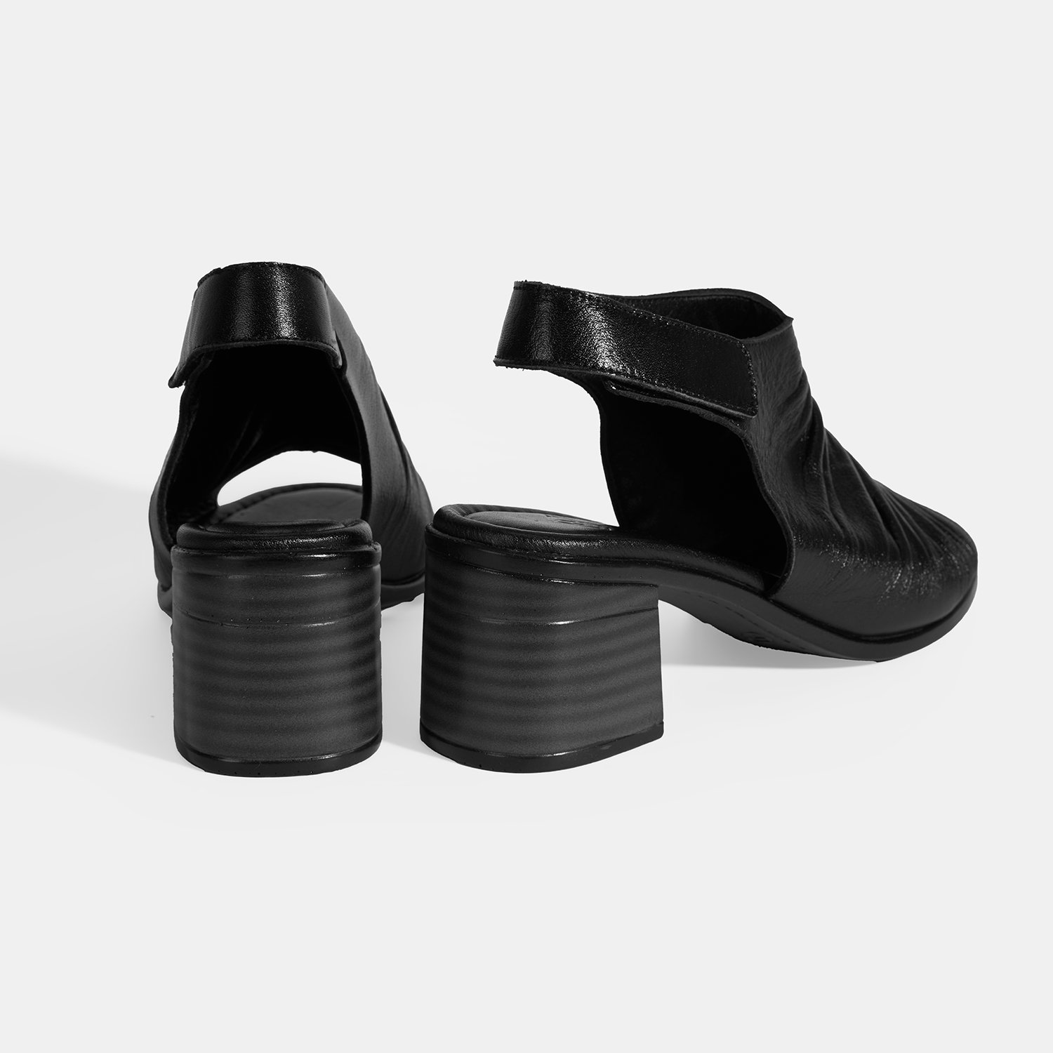 Siyah Kadın Cırt Cırtlı Deri Sandalet