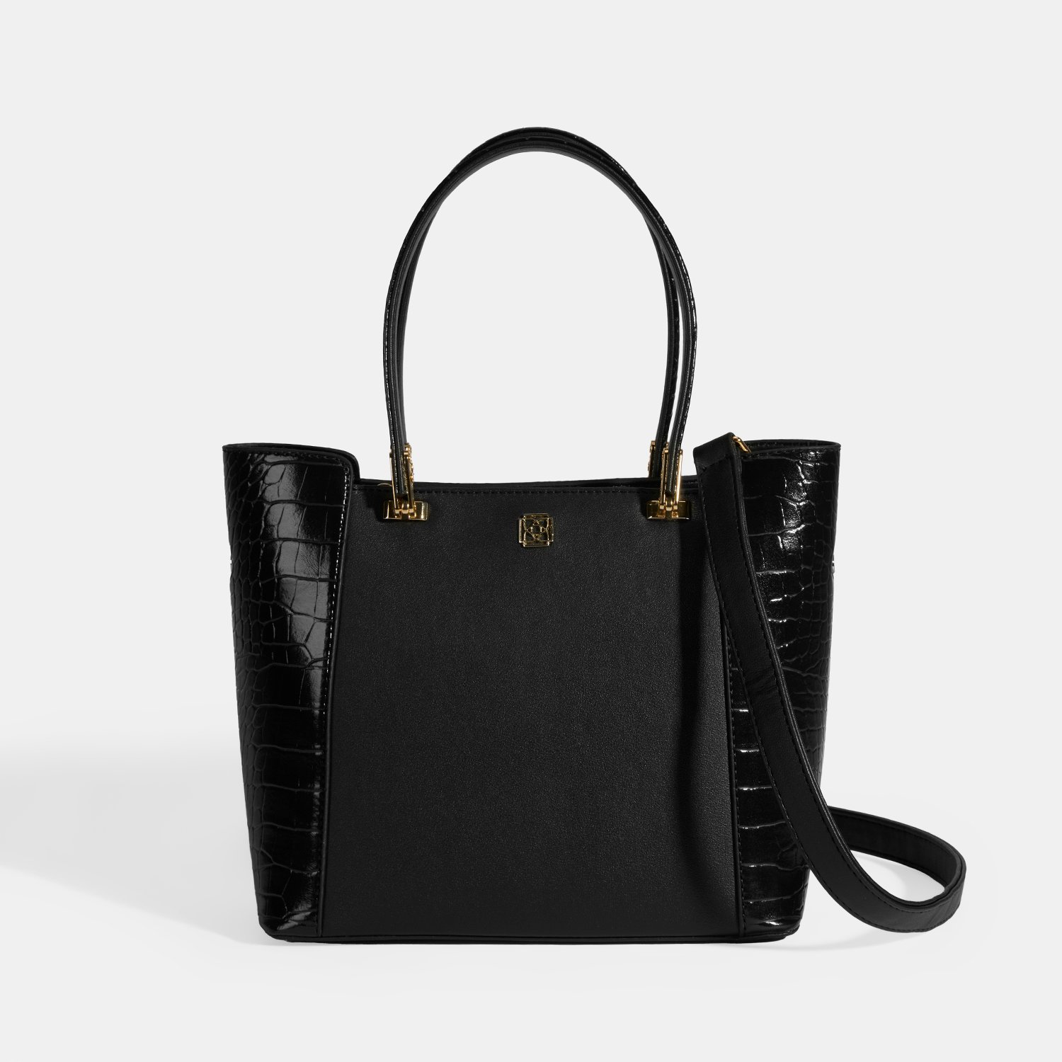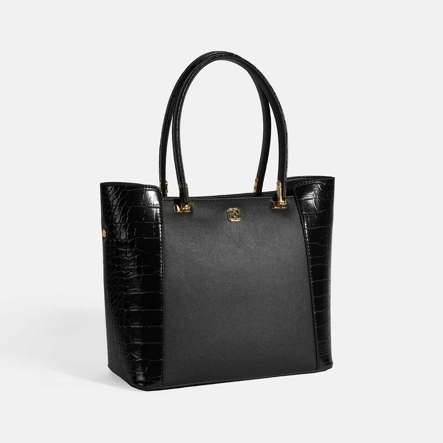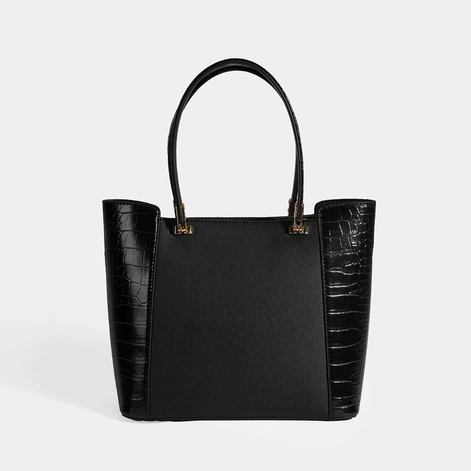 Düz ve kroko desenli suni deri detayları, çantaya sofistike bir hava katar.
