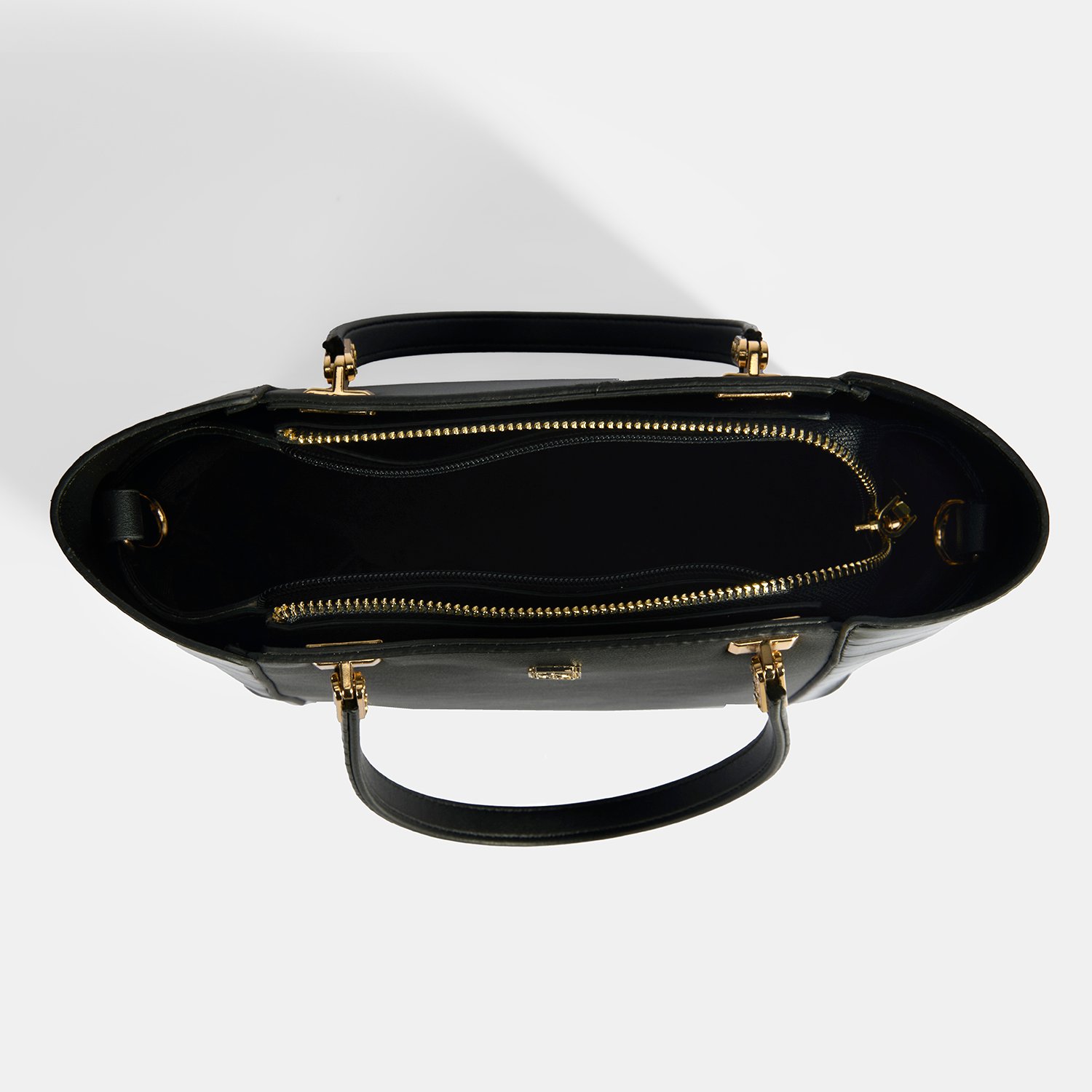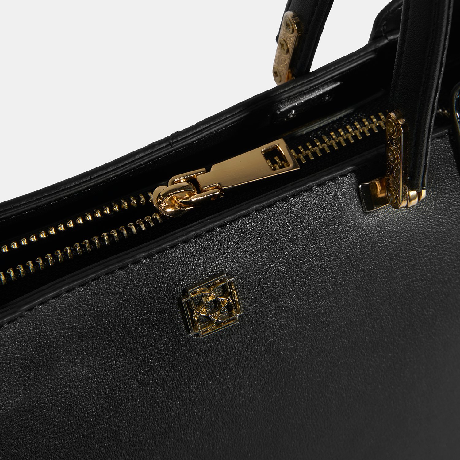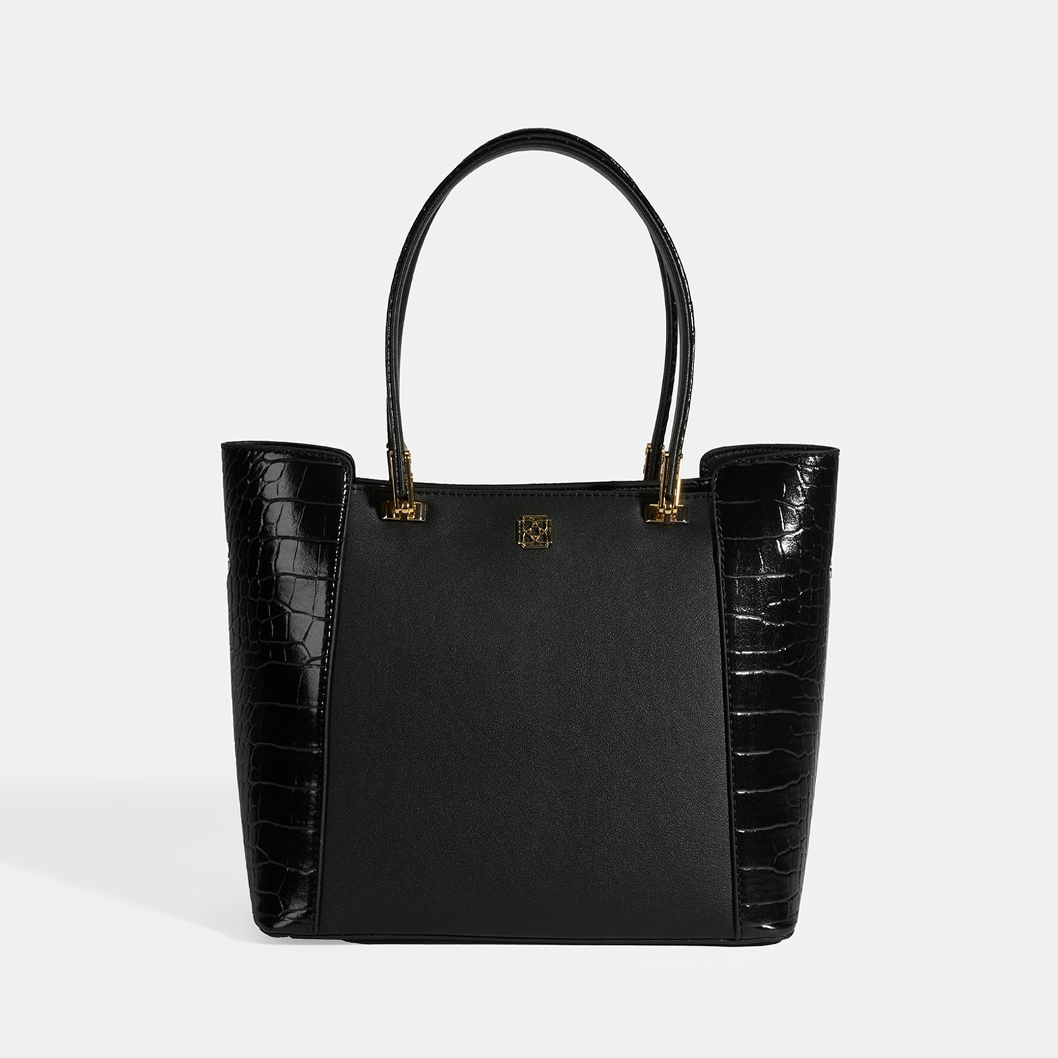 Düz ve kroko desenli suni deri detayları, çantaya sofistike bir hava katar.