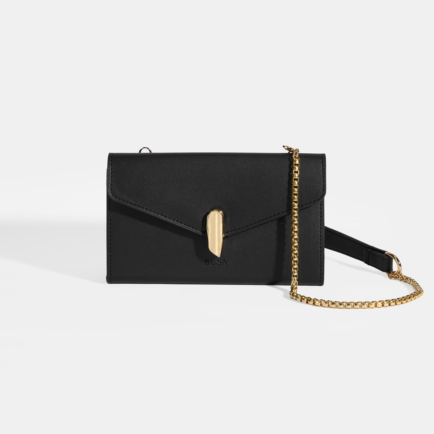 Altın renkli metal detayıyla tamamlanan zarflı kapanışı, çantaya modern bir hava katar.