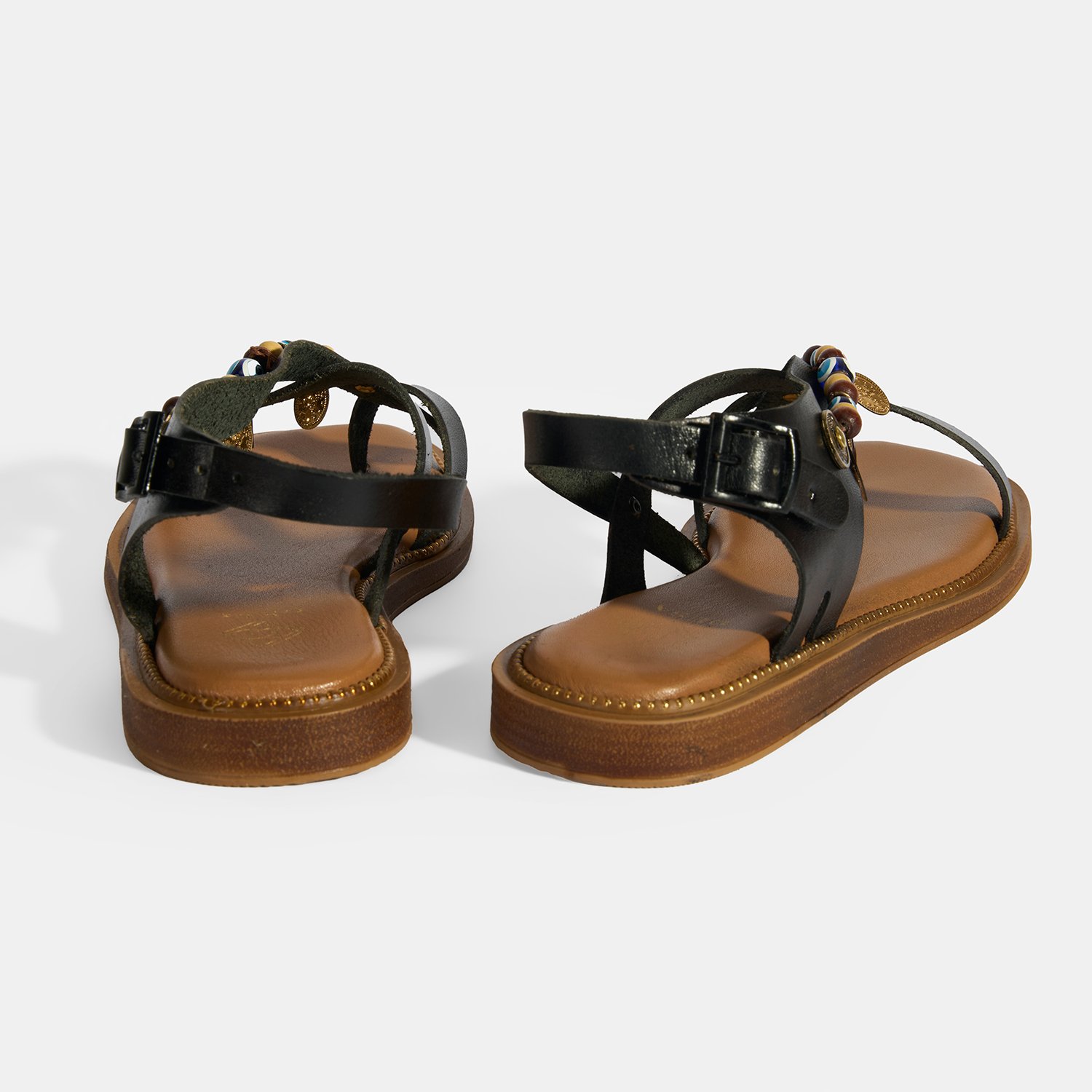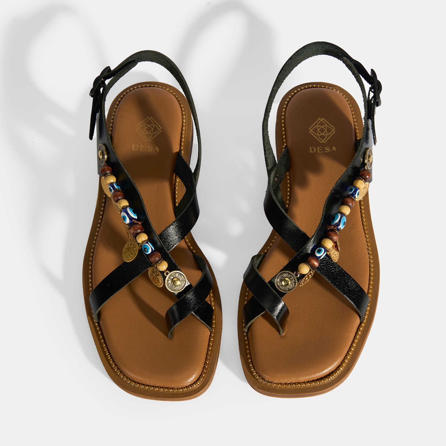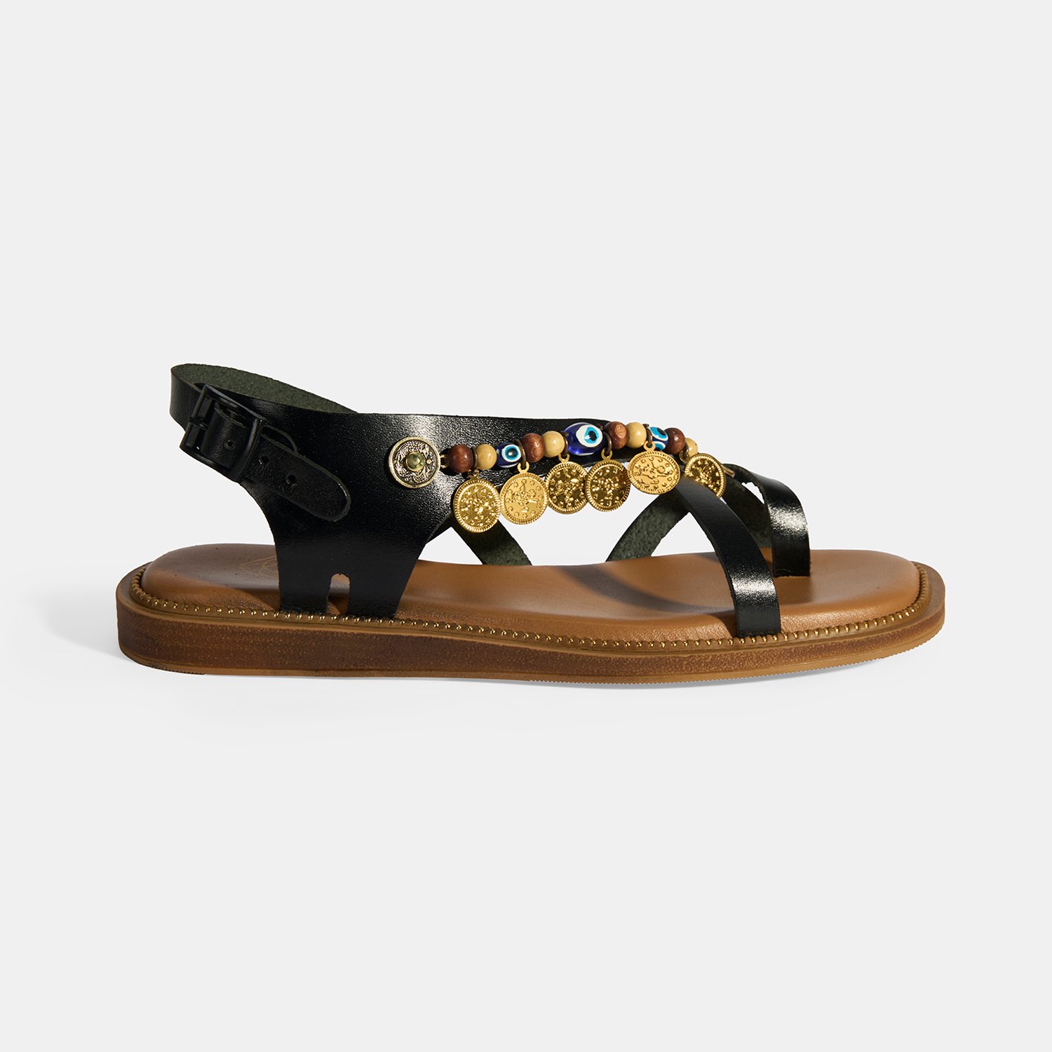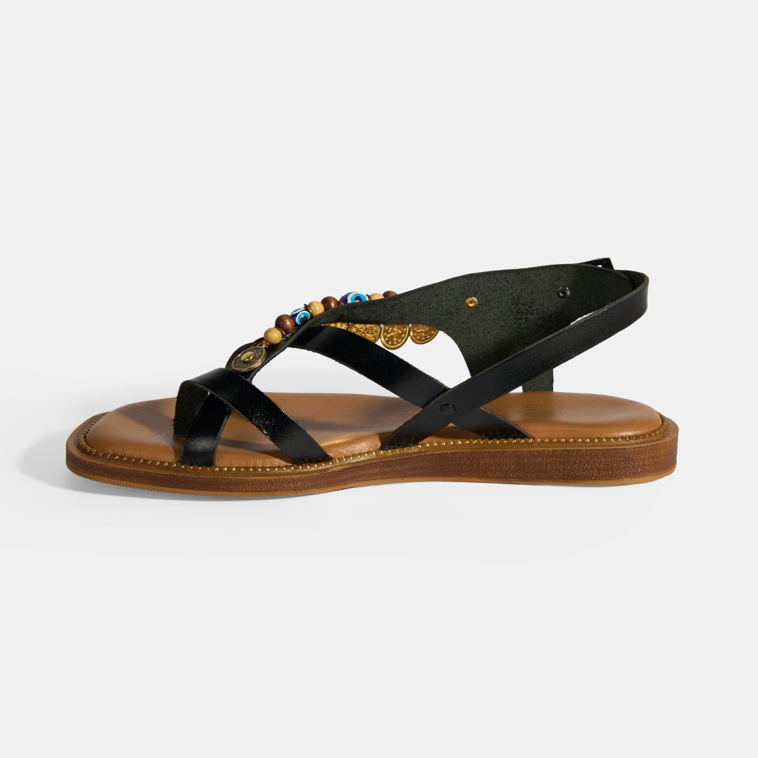 Siyah Kadın Toka Detaylı Aksesuarlı Deri Sandalet