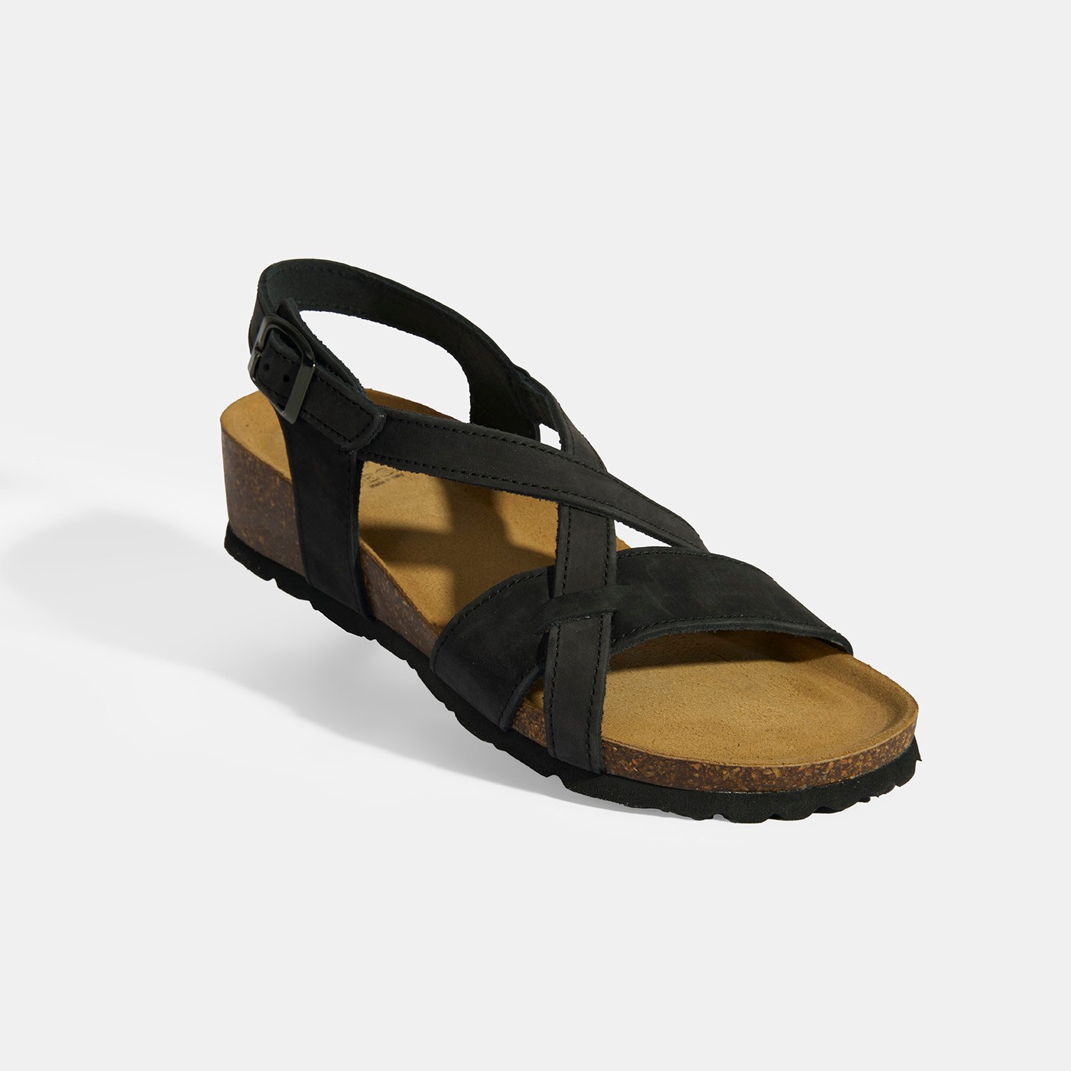 %100 nubuk deri, deri iç tabanlı, deri astarlı, ayaralanabilir metal tokalı, eva tabanlı, kadın sandalet.