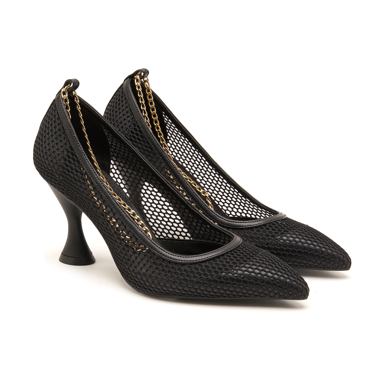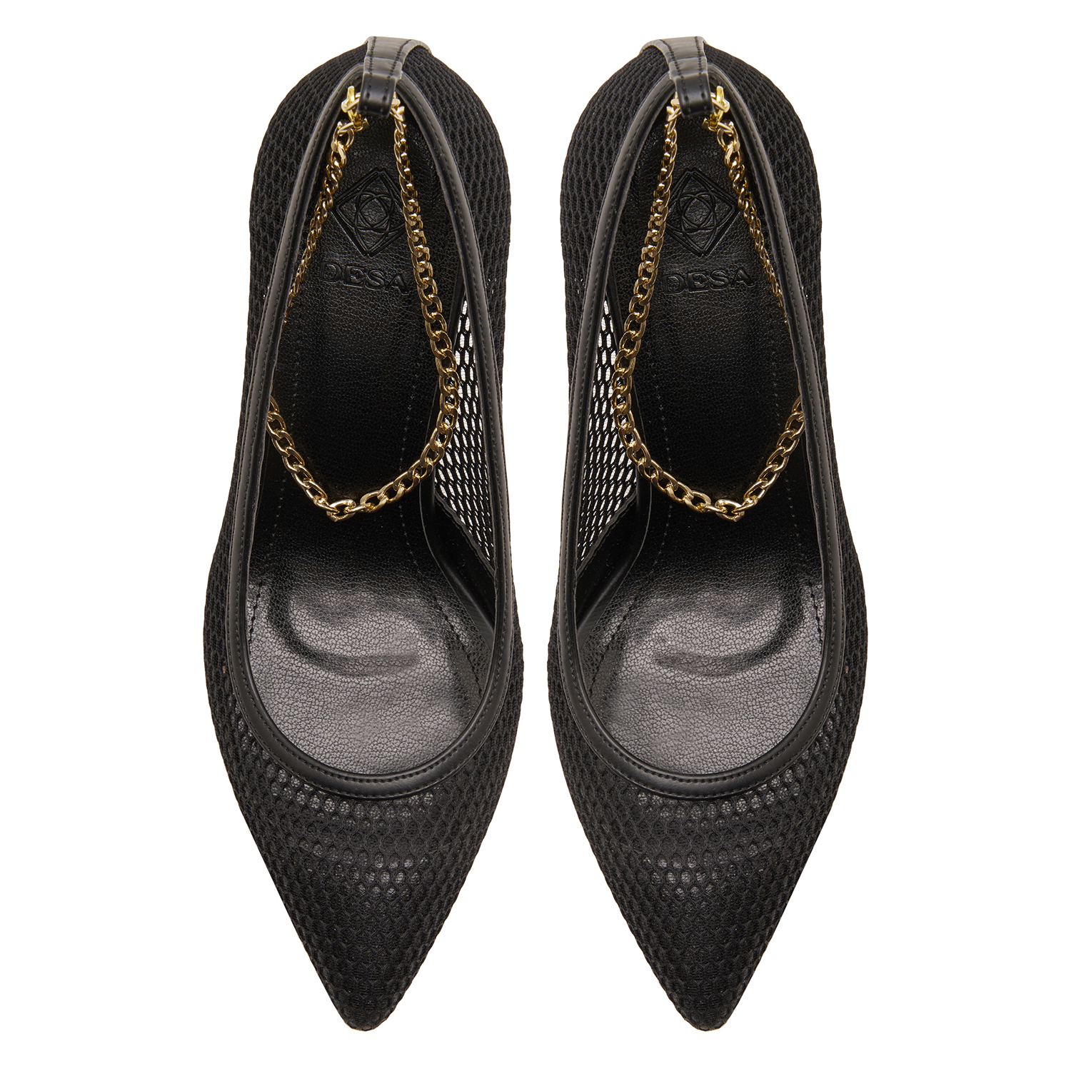 Ayarlanabilir zincir detaylı, neolit tabanlı kadın klasik ayakkabı.