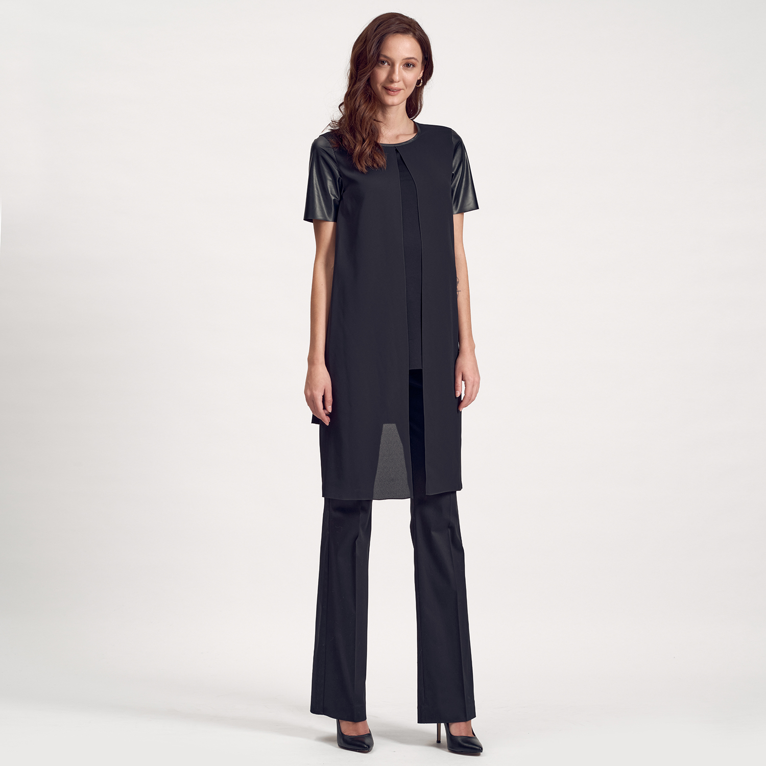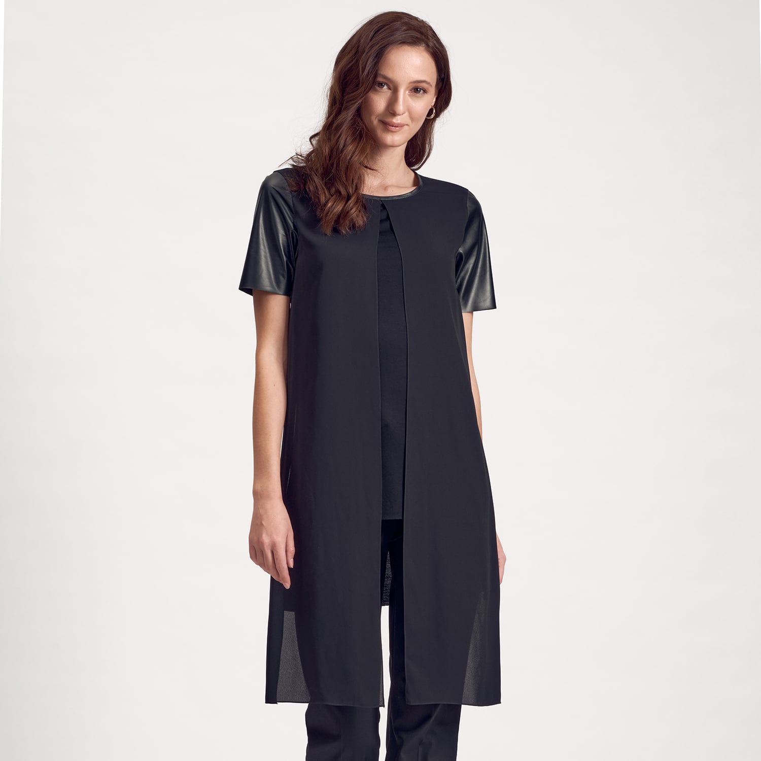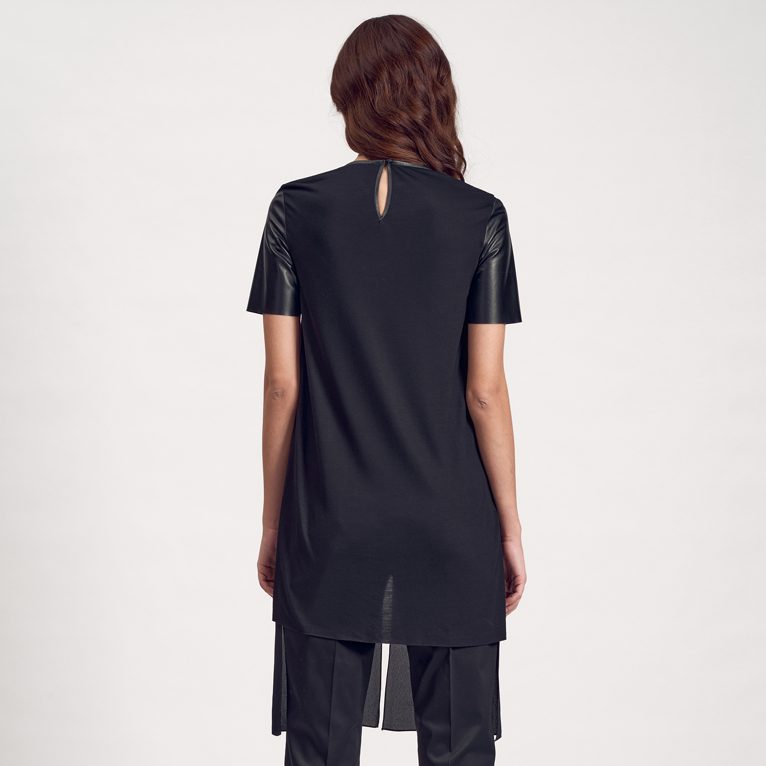 Gerçek deri detaylı kısa kollu kadın tunik.