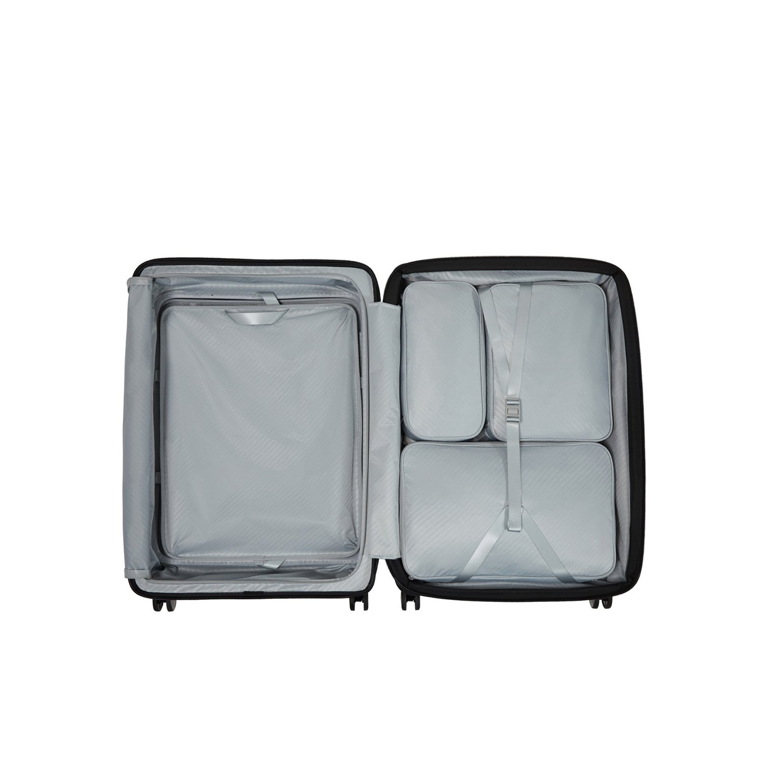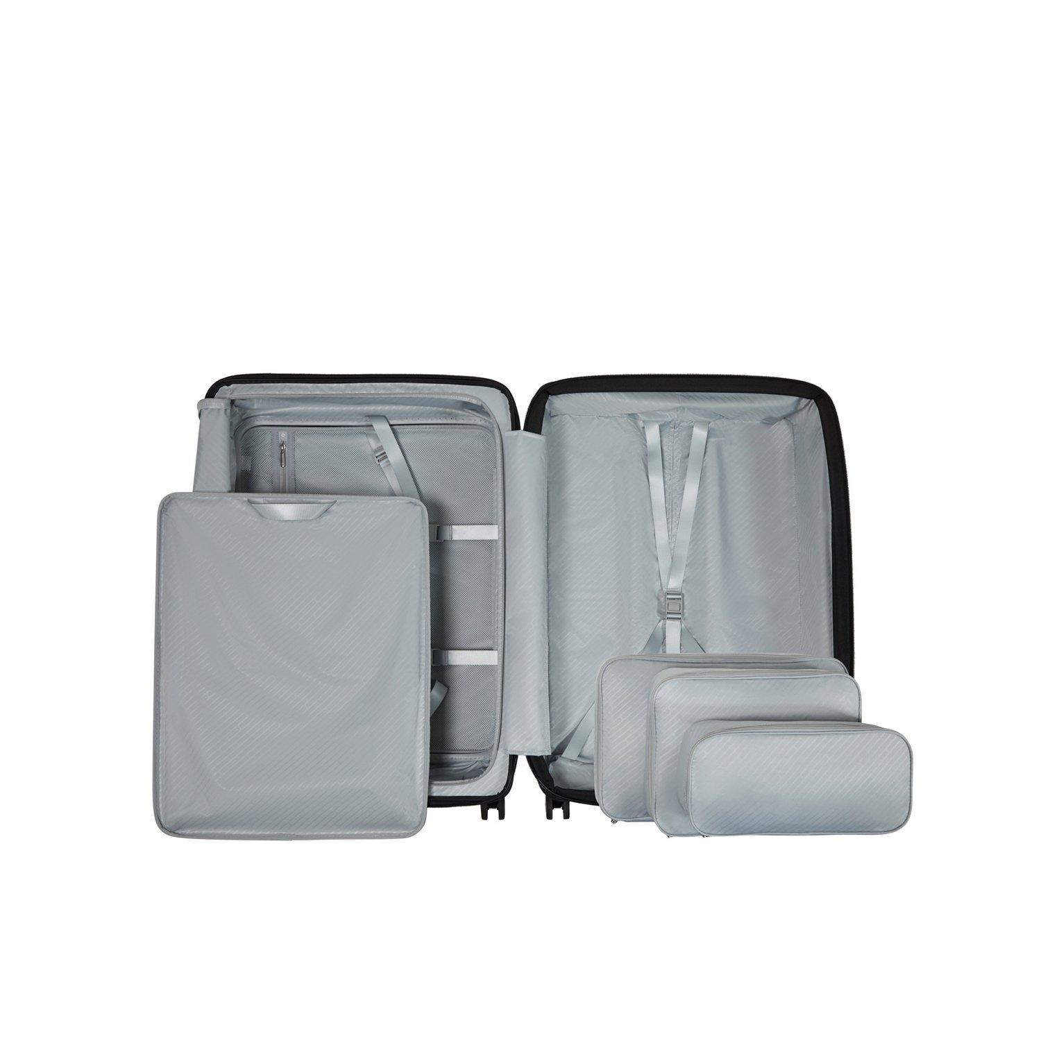 Sert kabin valizler, geleneksel orta açılıma ek olarak, eşyalarınıza kolay erişim sağlayan yenilikçi bir ön kapak ve yanında sunulan paketleme küpleriyle donatılmıştır.