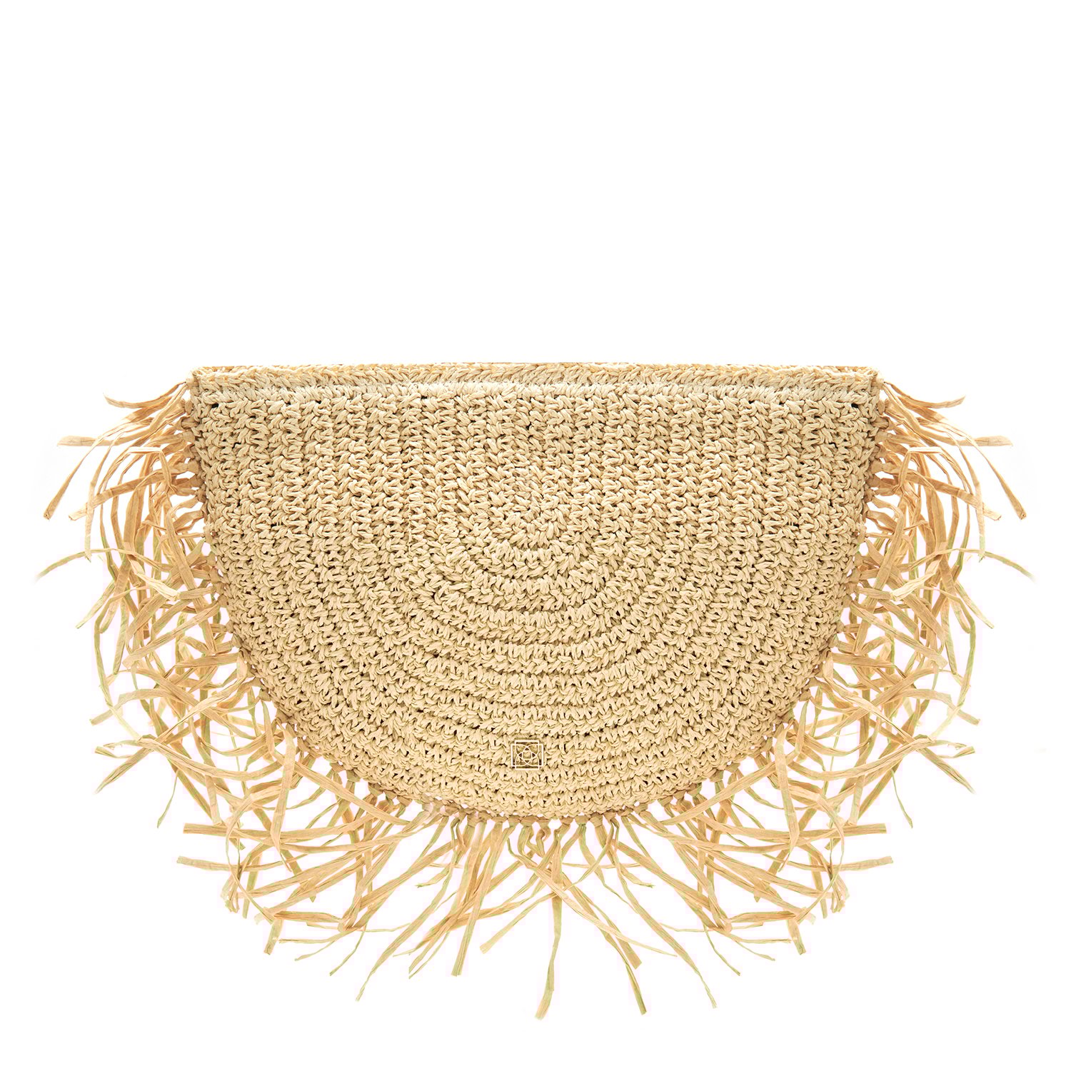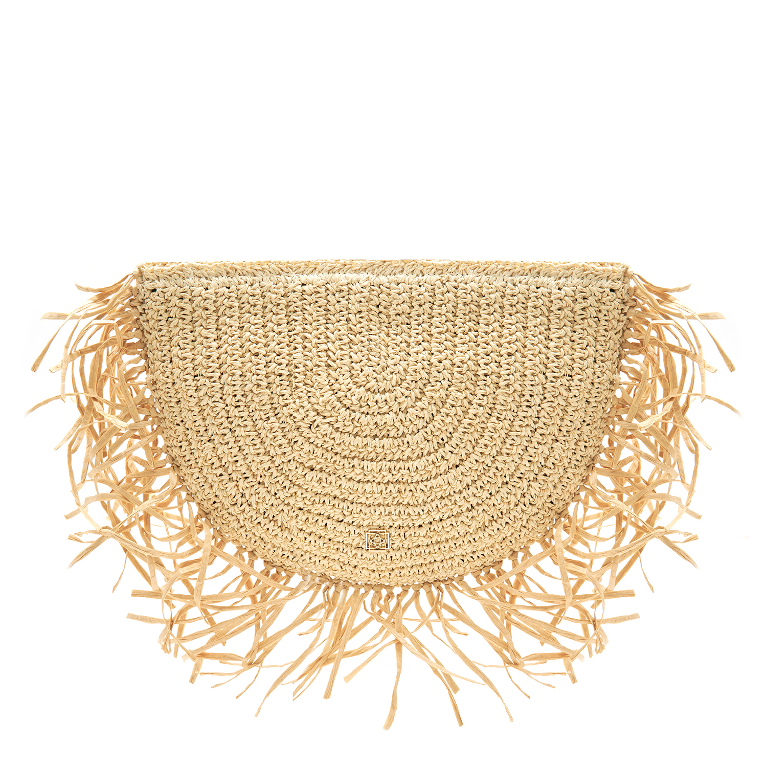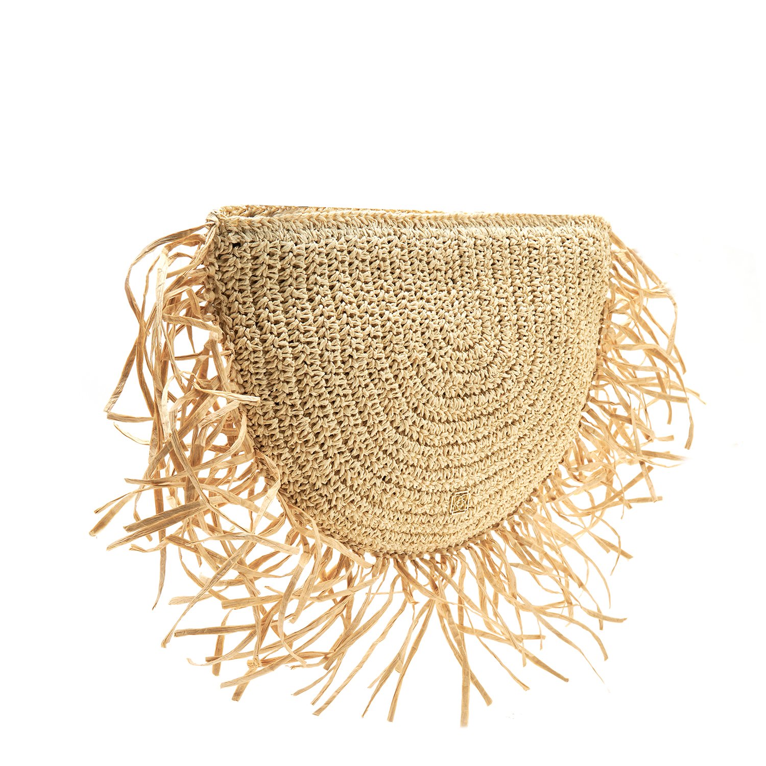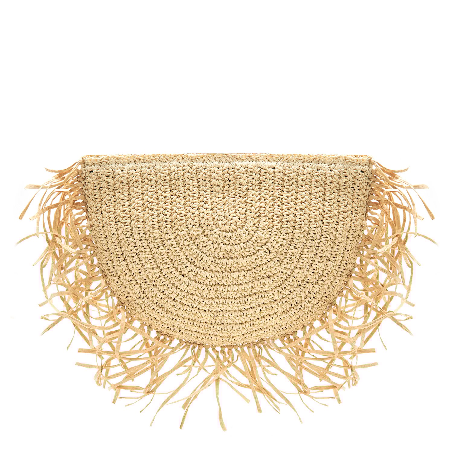 Rafya malzeme ile üretilmiş kadın clutch çantasıdır.