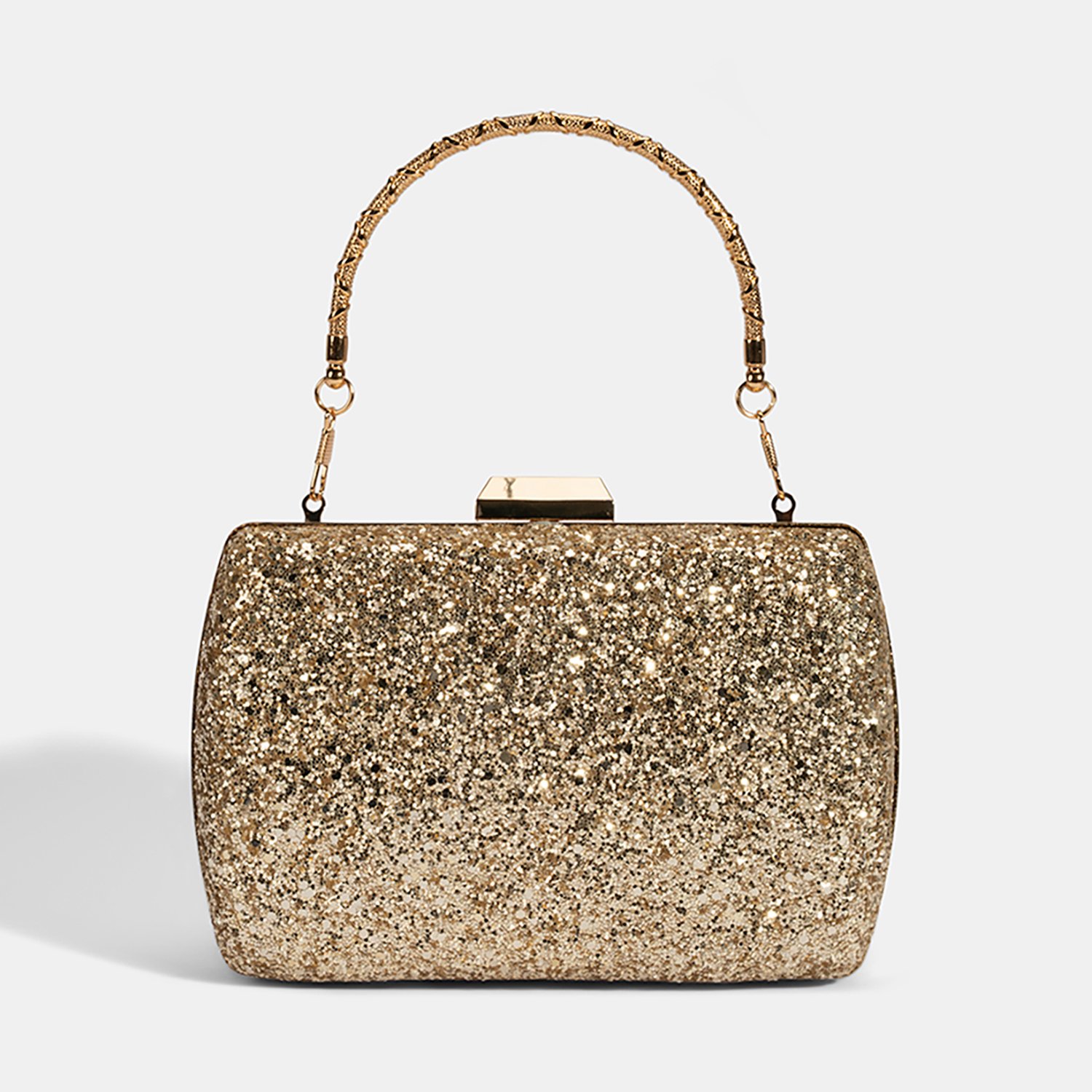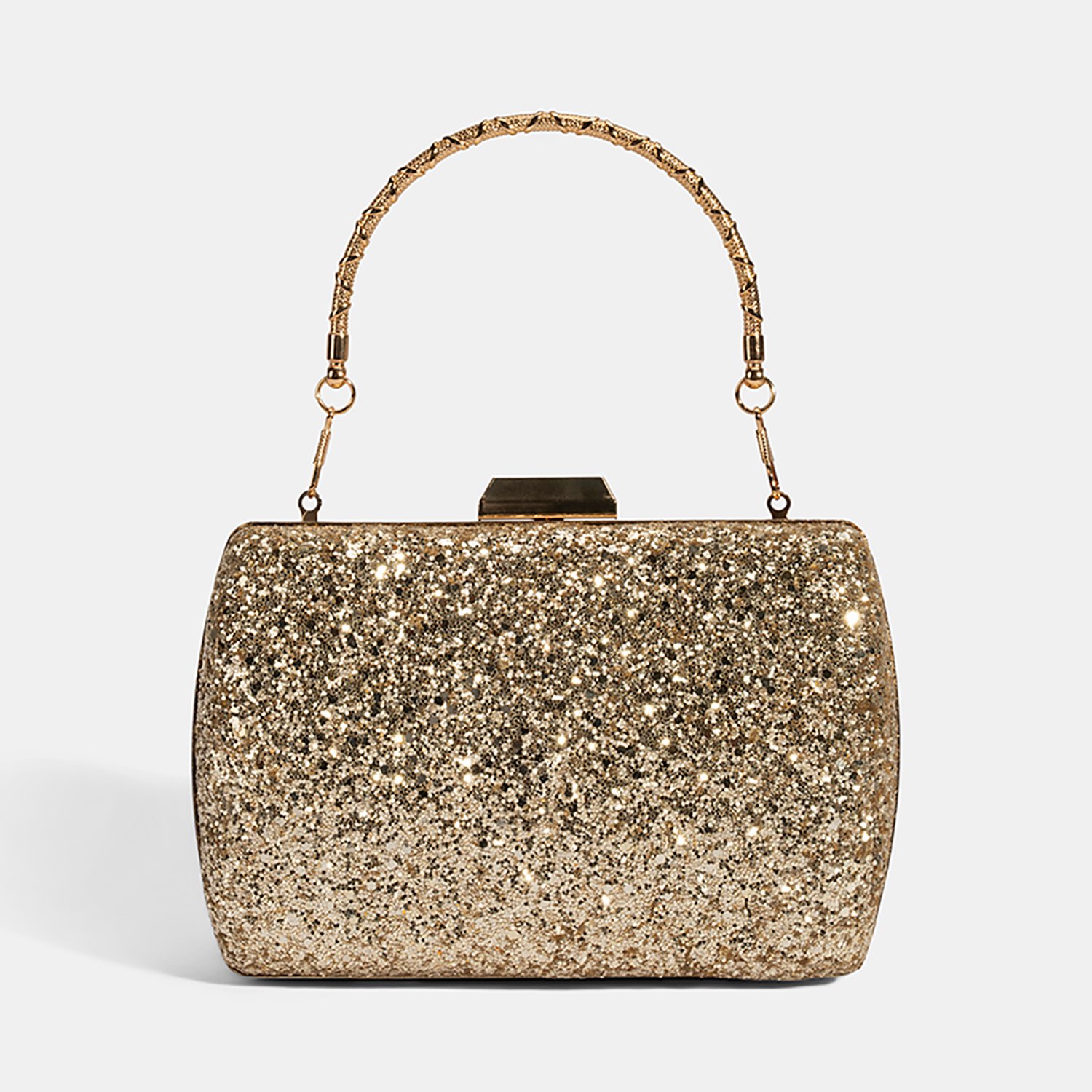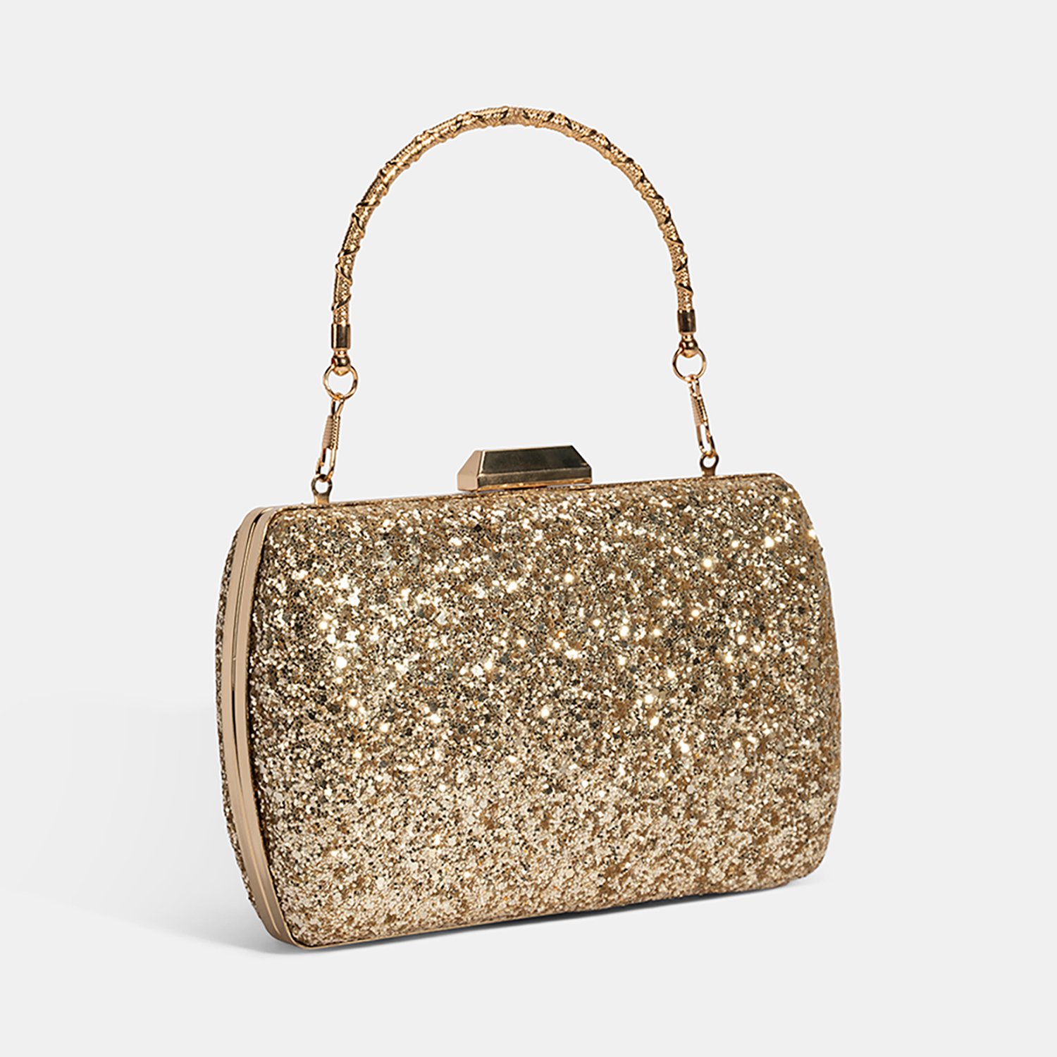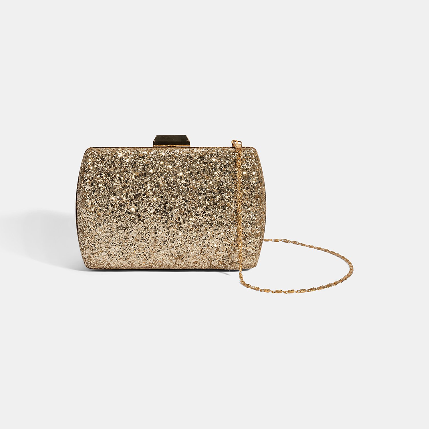 Tamamen parlak taşlarla kaplı yüzeyiyle göz alıcı bir ışıltı sunan bu gold clutch, özel davetlerde ve kutlamalarda stilinizi ön plana çıkarır.