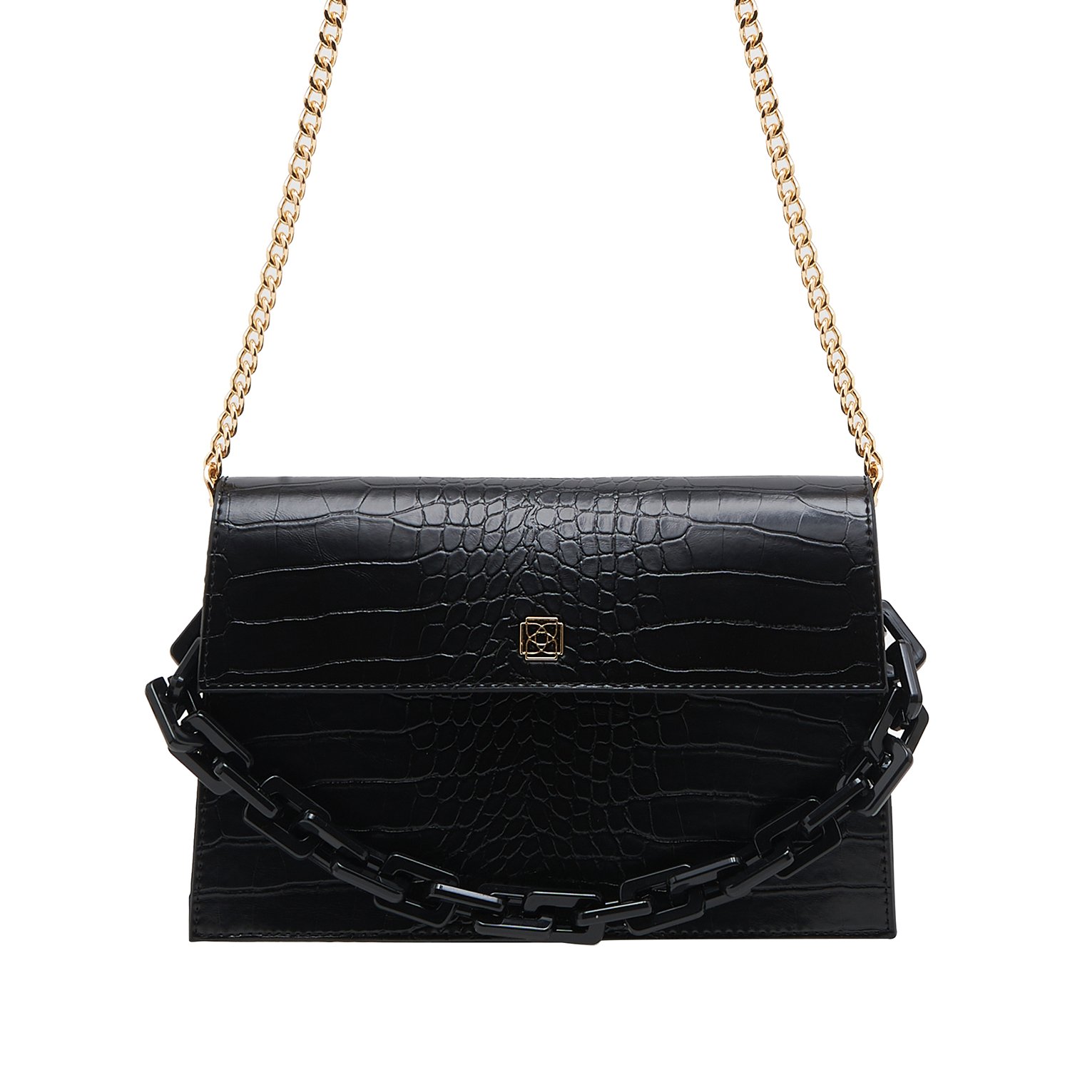 Siyah Fisole Zincir Detaylı Kadın Omuz Çantası