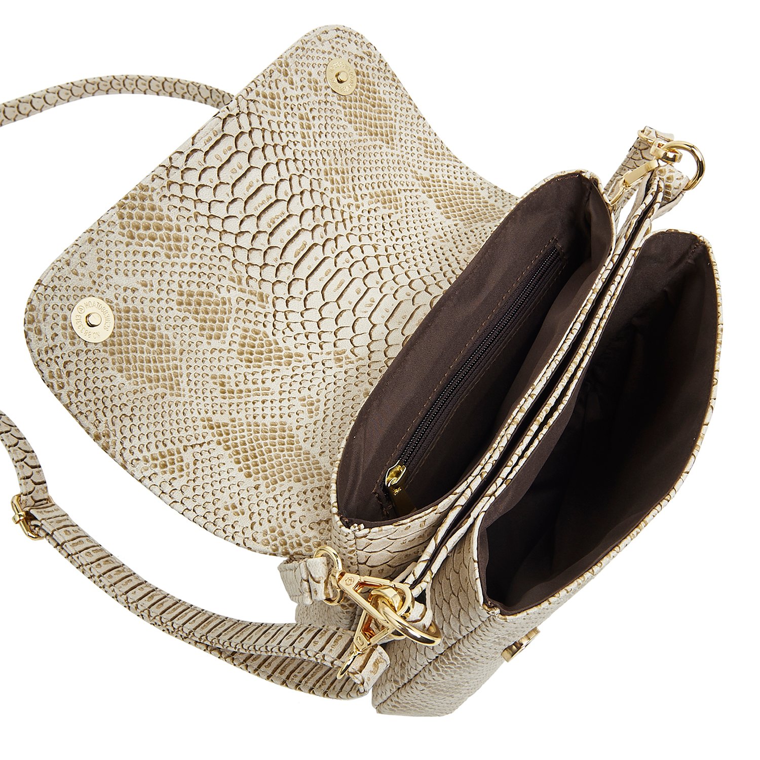 Bej Betty Kadın Egzotik Baskılı Deri Omuz Çantası
