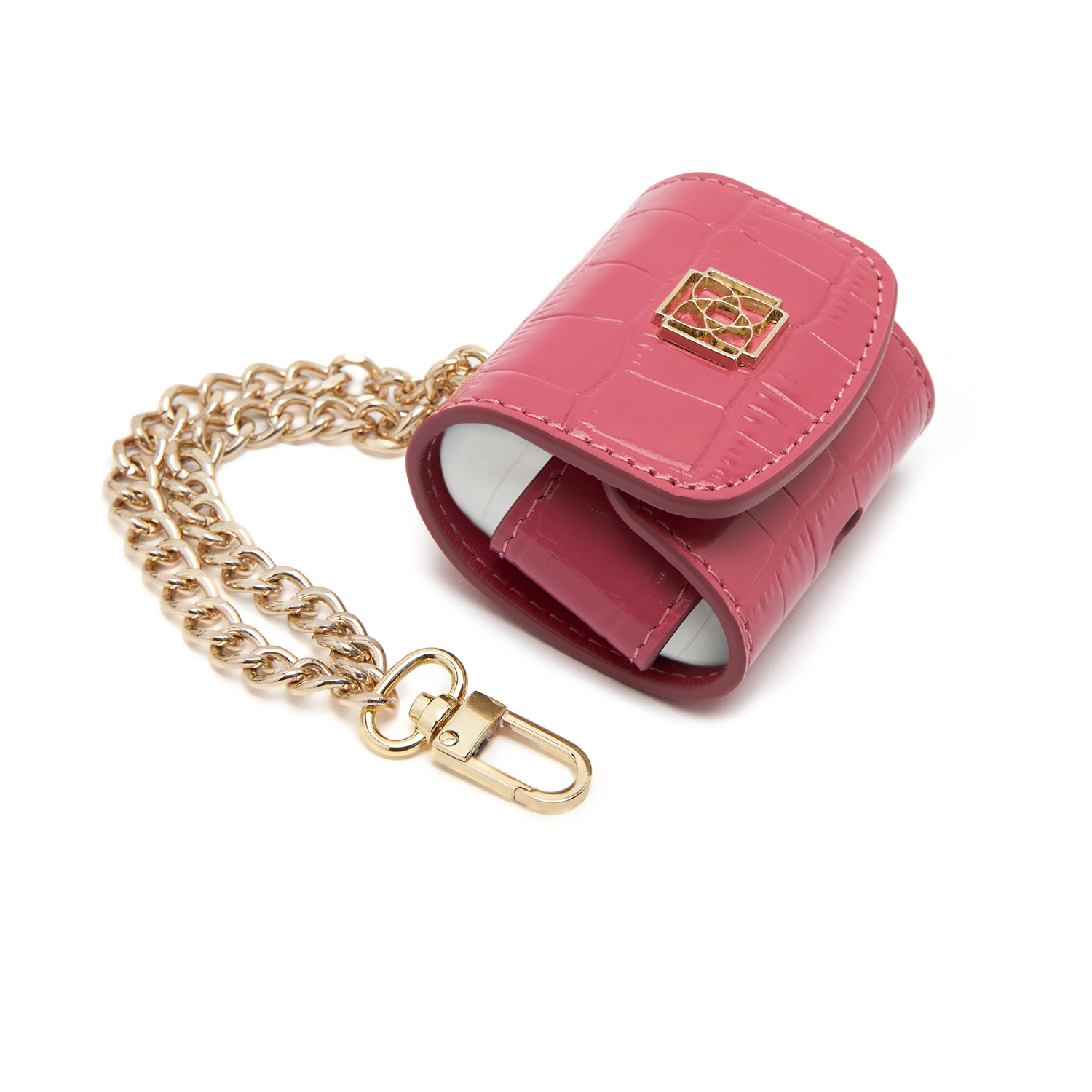 Fuşya Zincir Detaylı Deri Airpods Pro Kılıfı