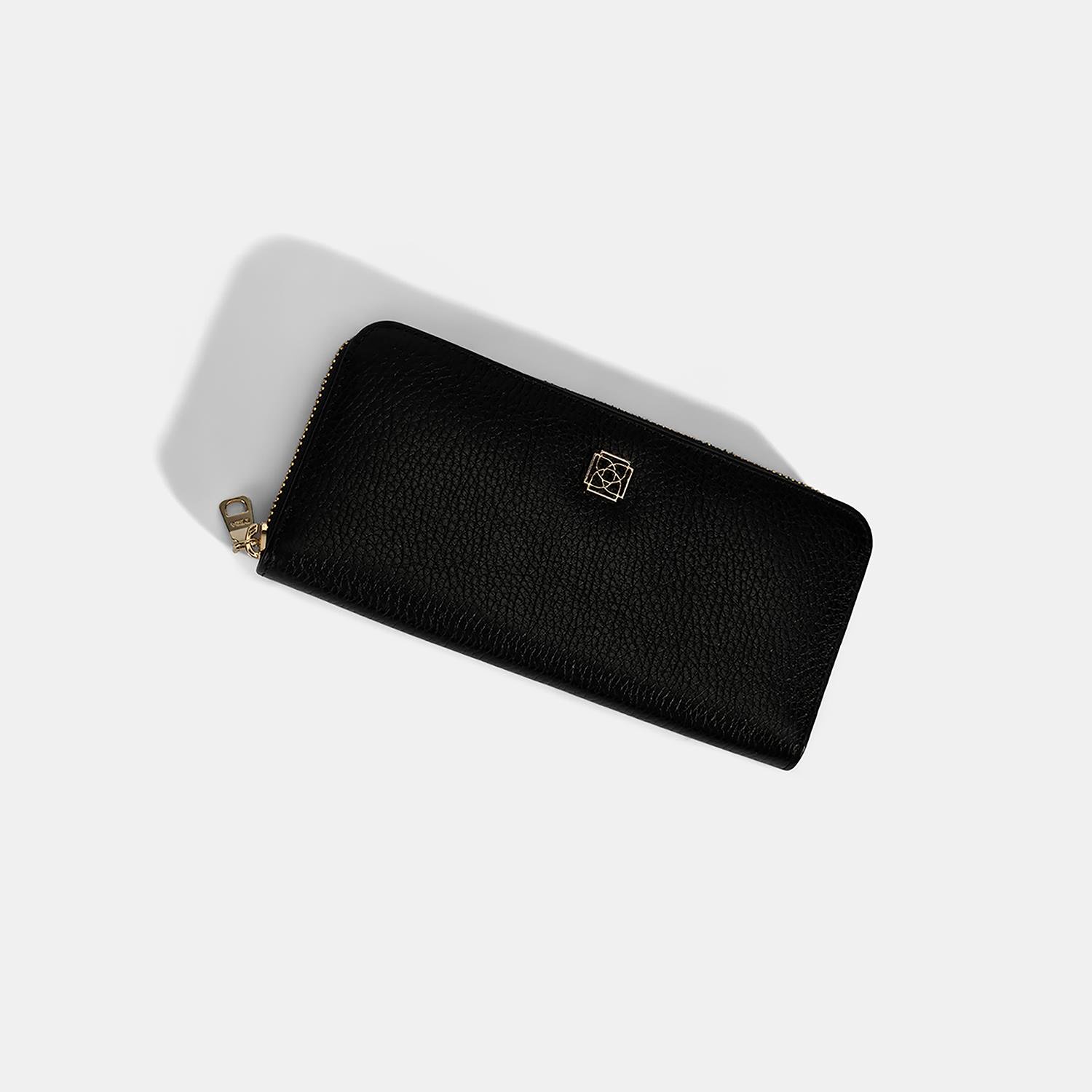 Kadın Siyah Deri Fermuarlı Cüzdan