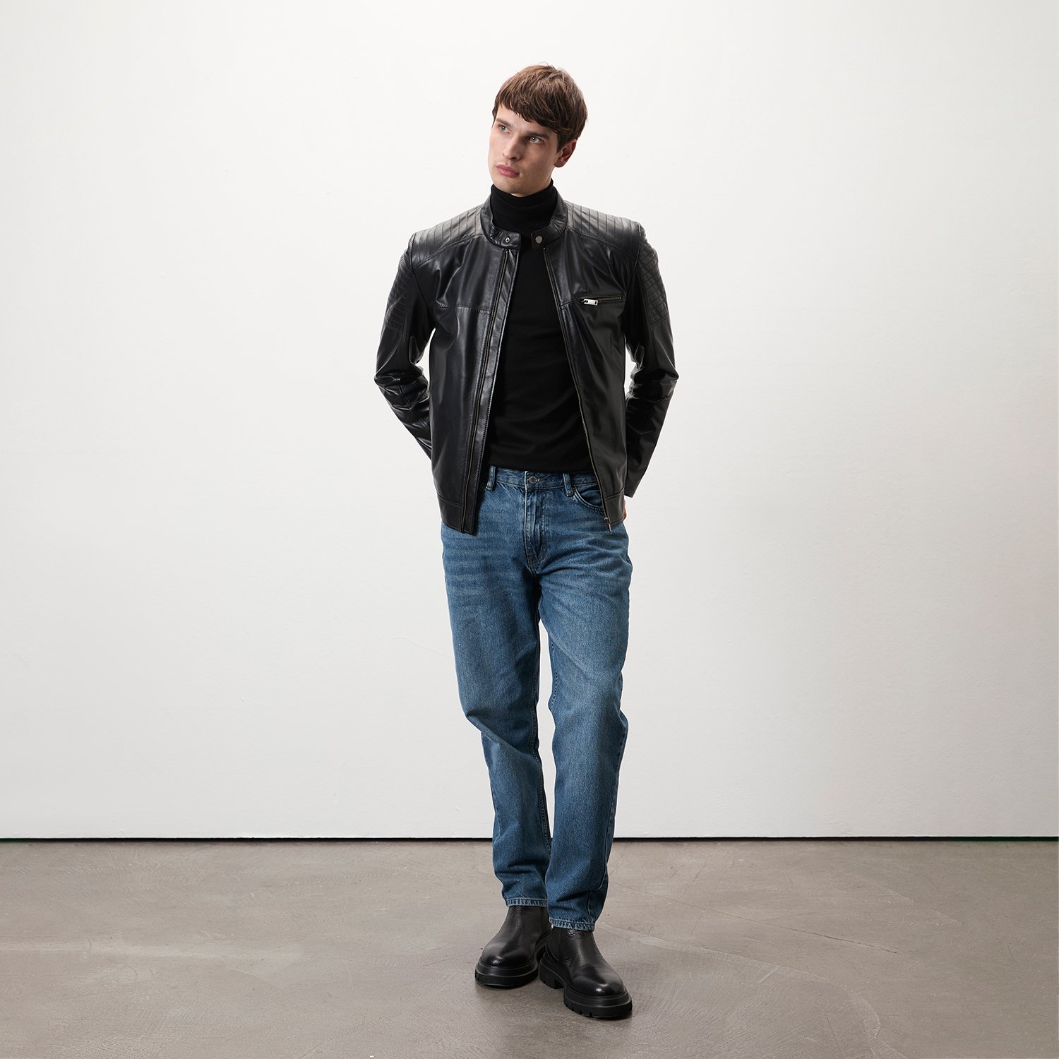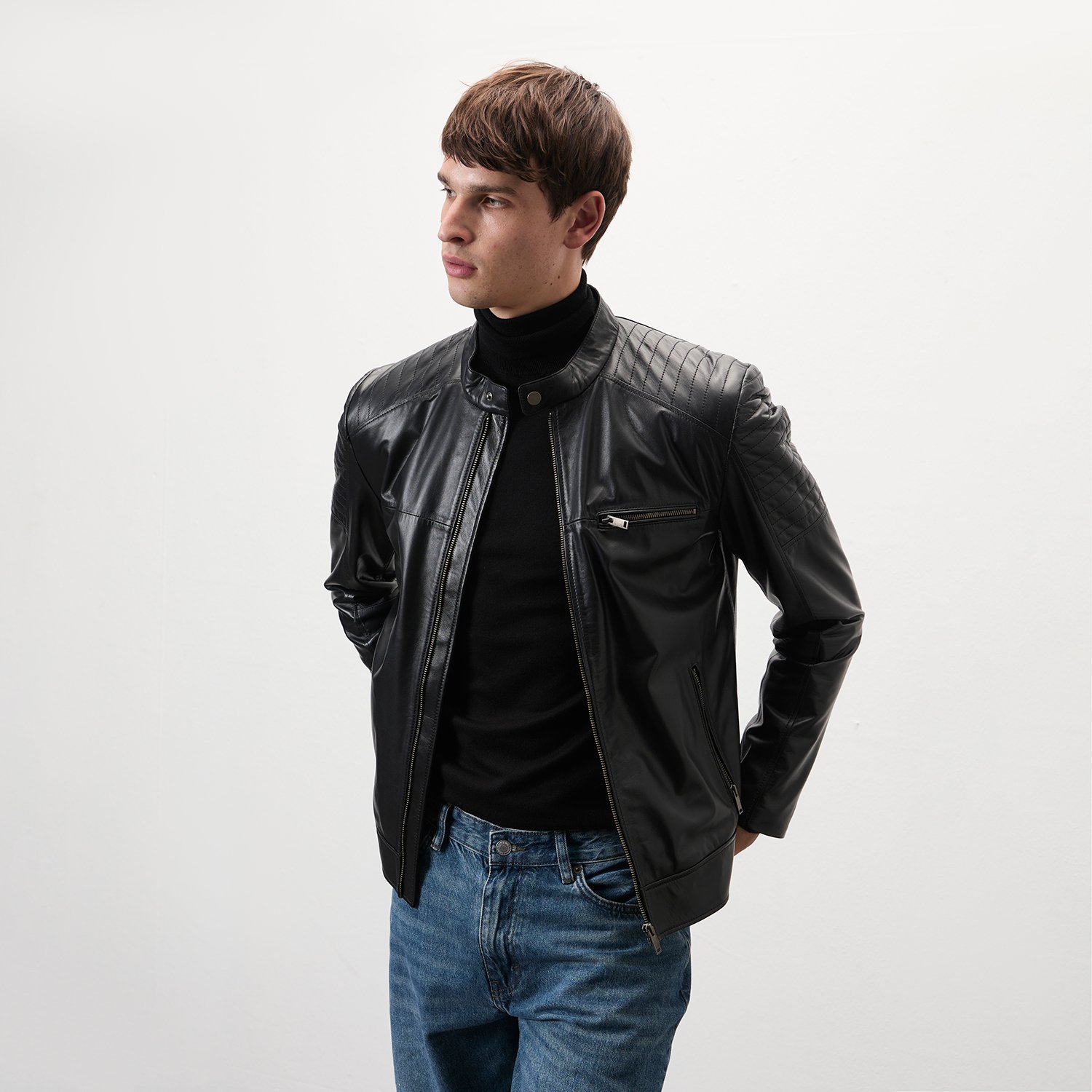 Steven Siyah Erkek Deri Mont