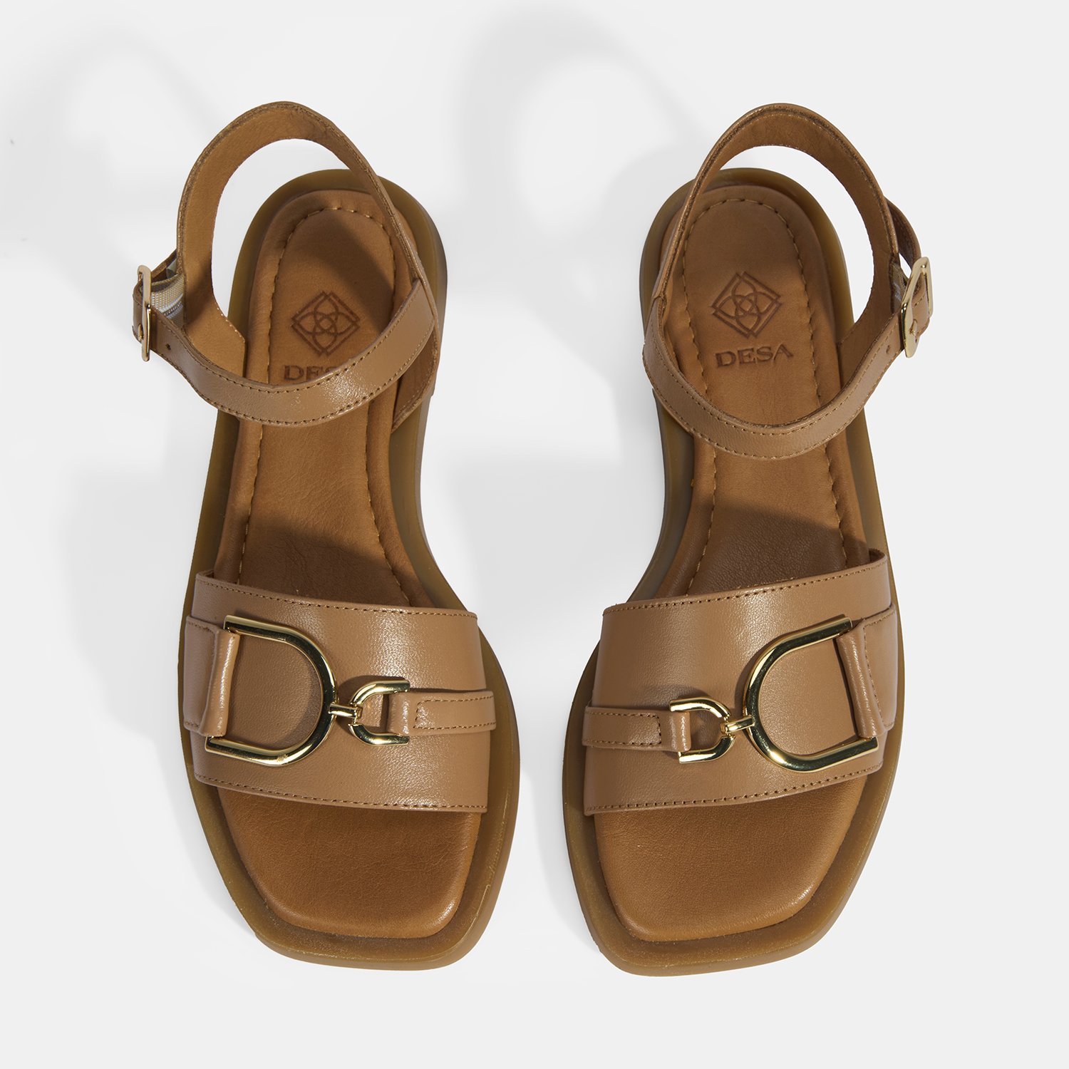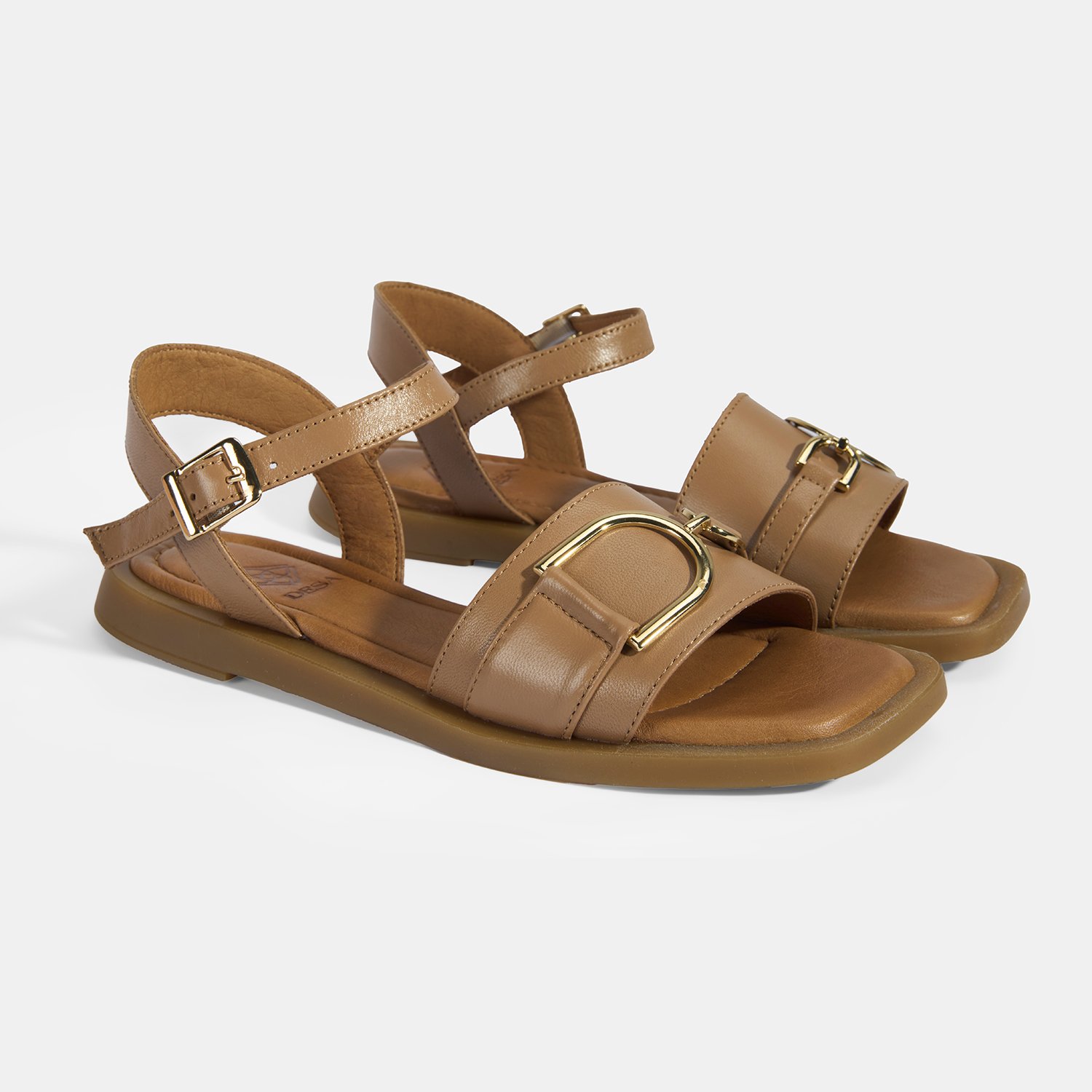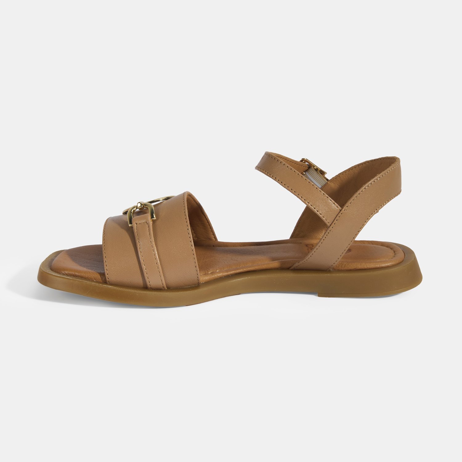 Taba Kadın Metal Aksesuarlı Ayarlanabilir Tokalı Deri Sandalet