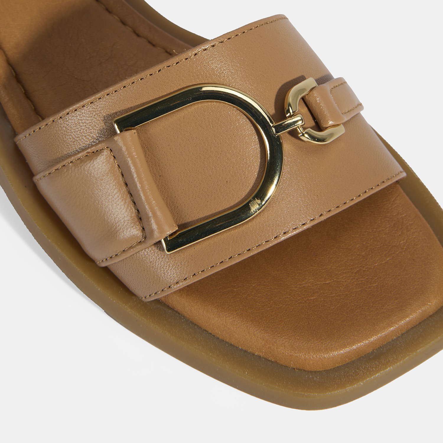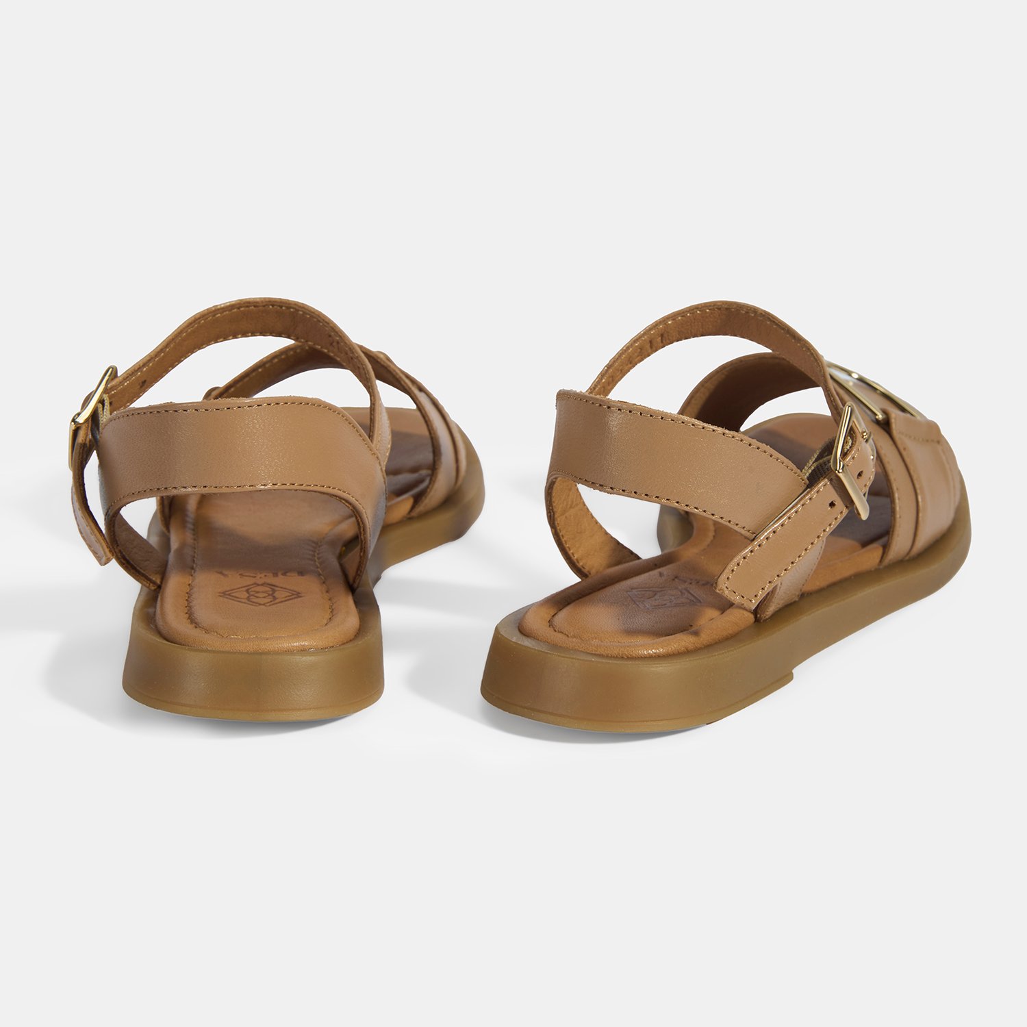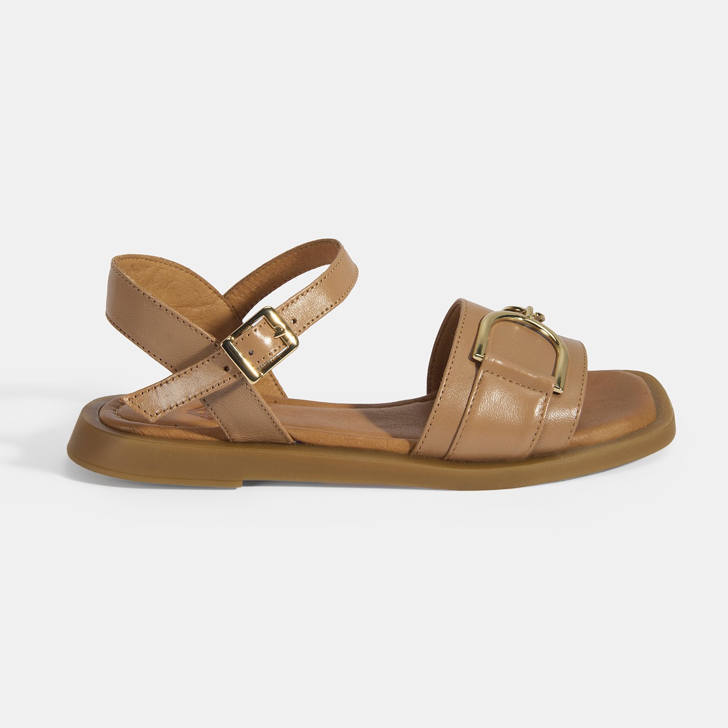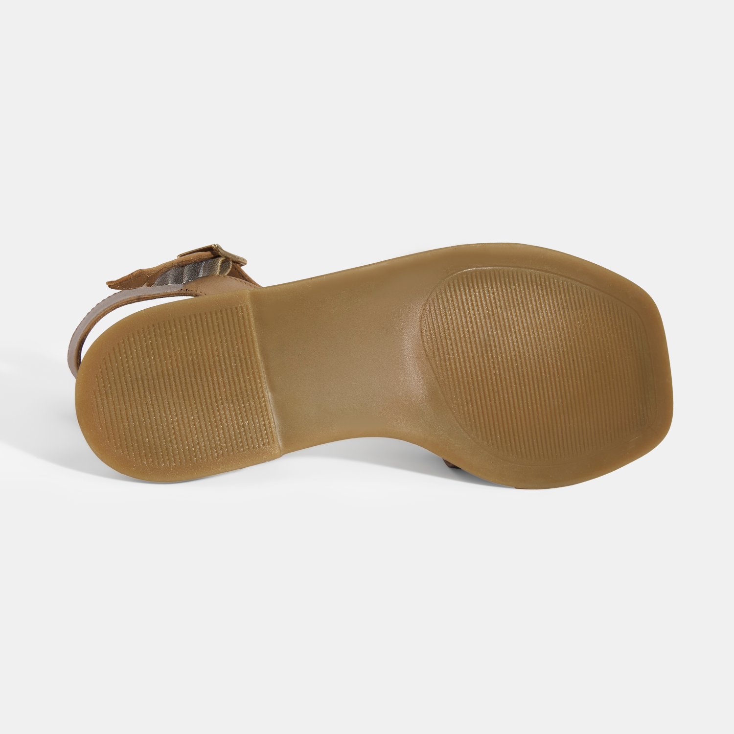 Taba Kadın Metal Aksesuarlı Ayarlanabilir Tokalı Deri Sandalet