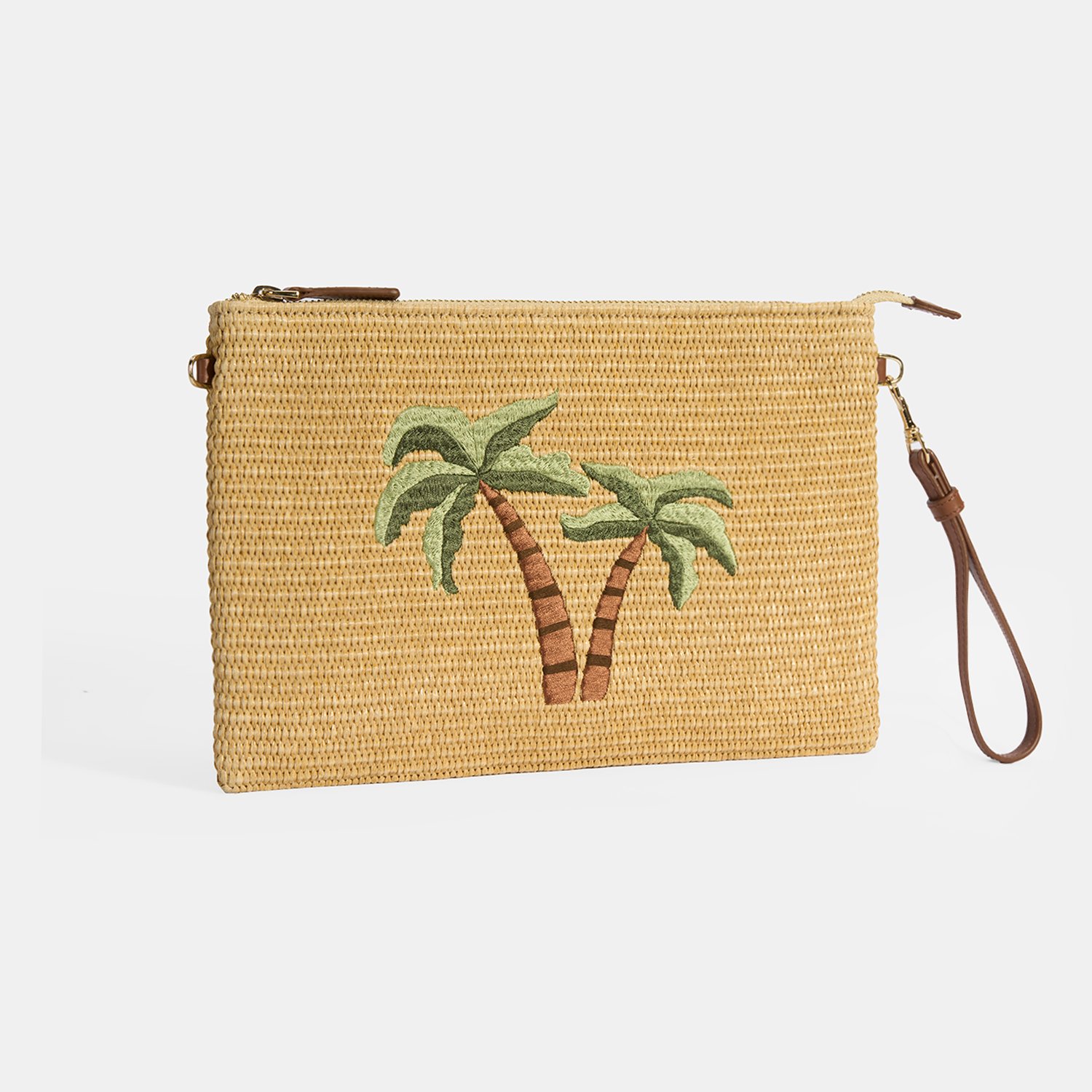 Taba Palmiye Nakışlı Hasır Clutch