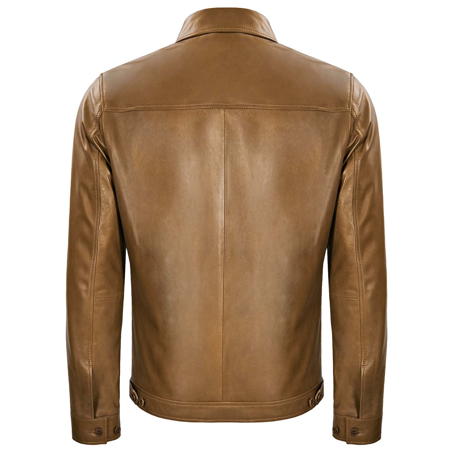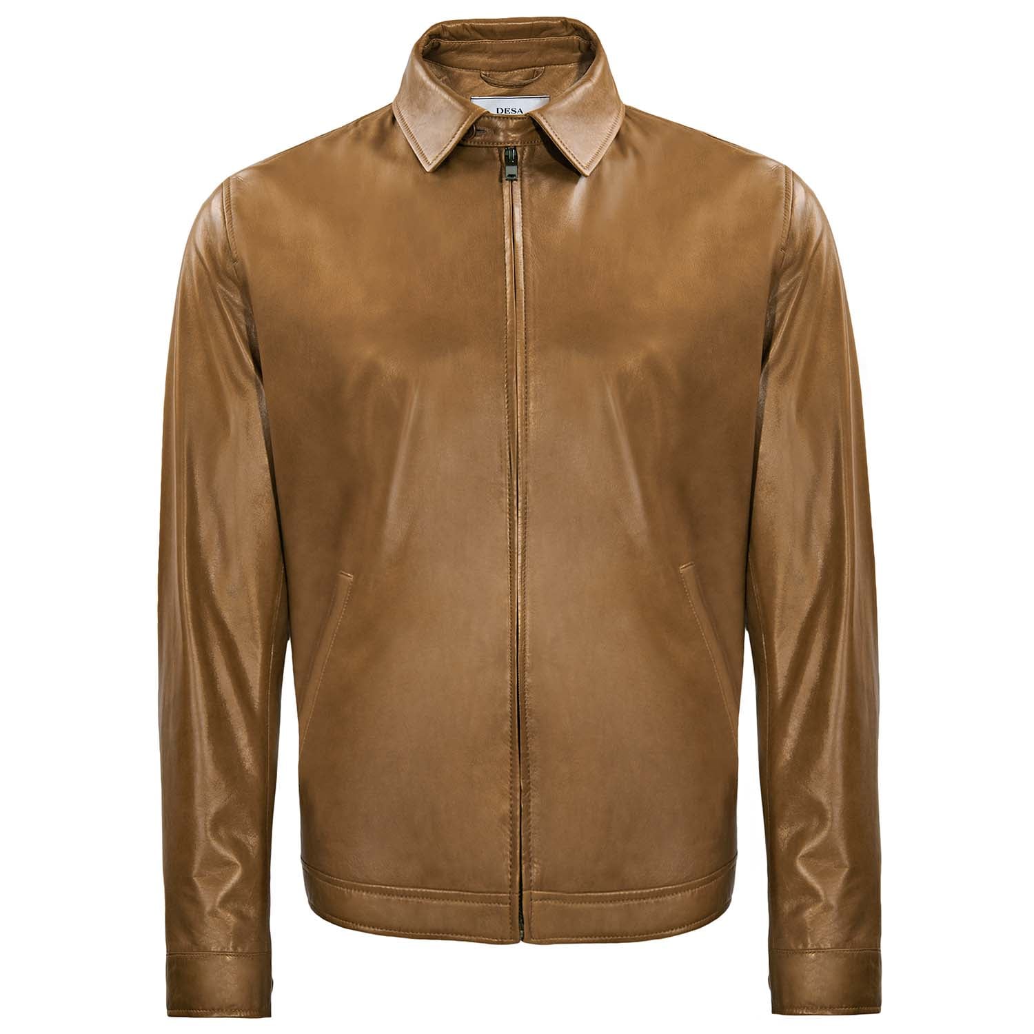 Gömlek yaka, önden fermuar kapamalı erkek deri mont.