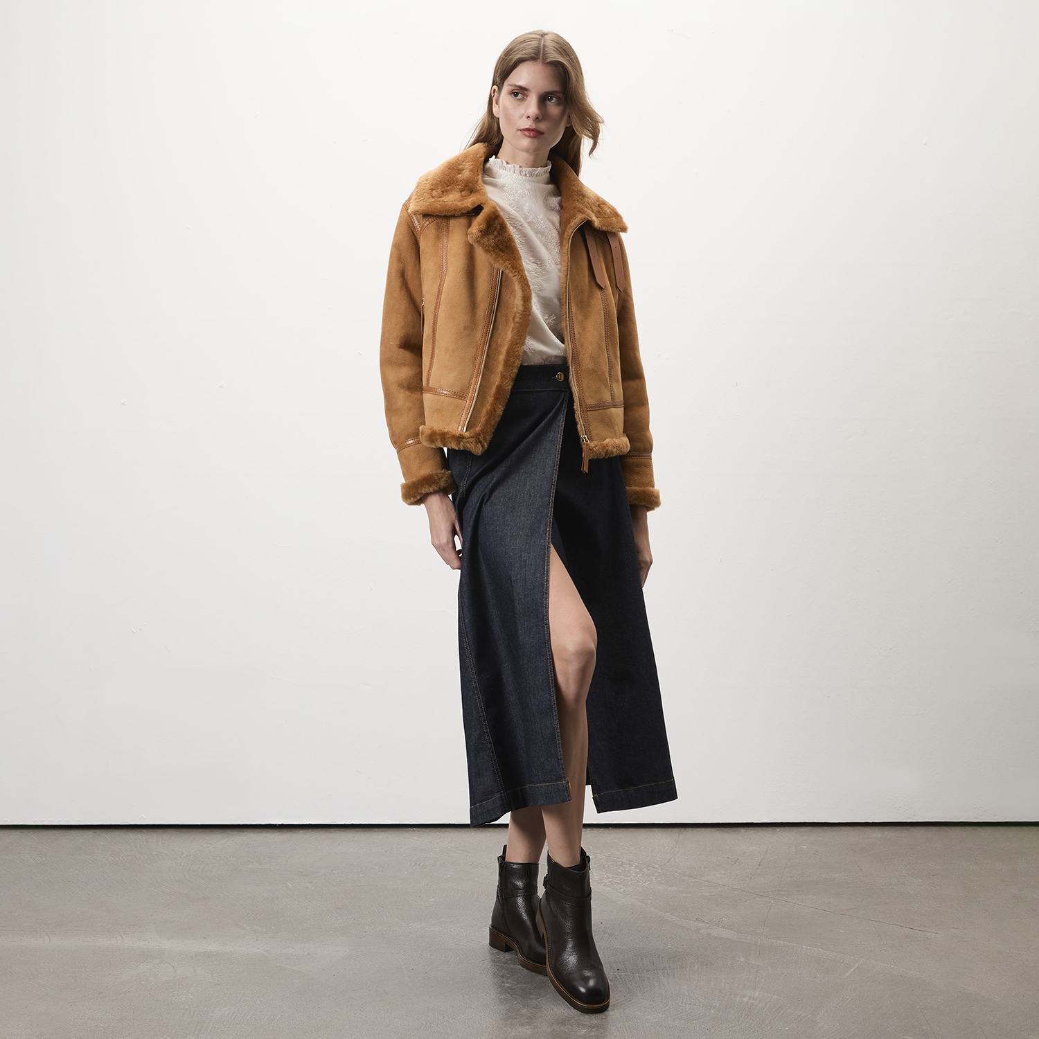 %100 koyun kürkünden olup astarsız çalışılmıştır.