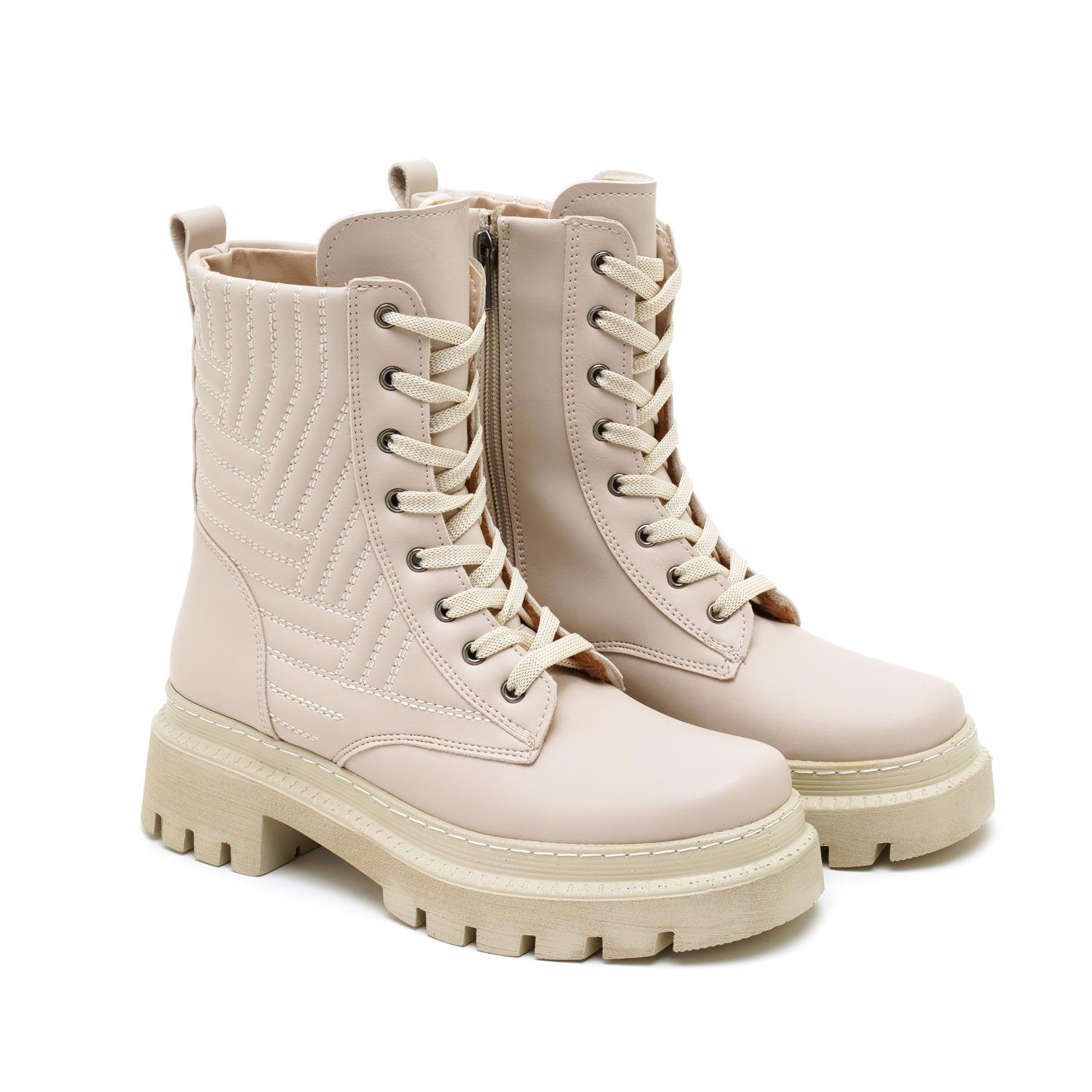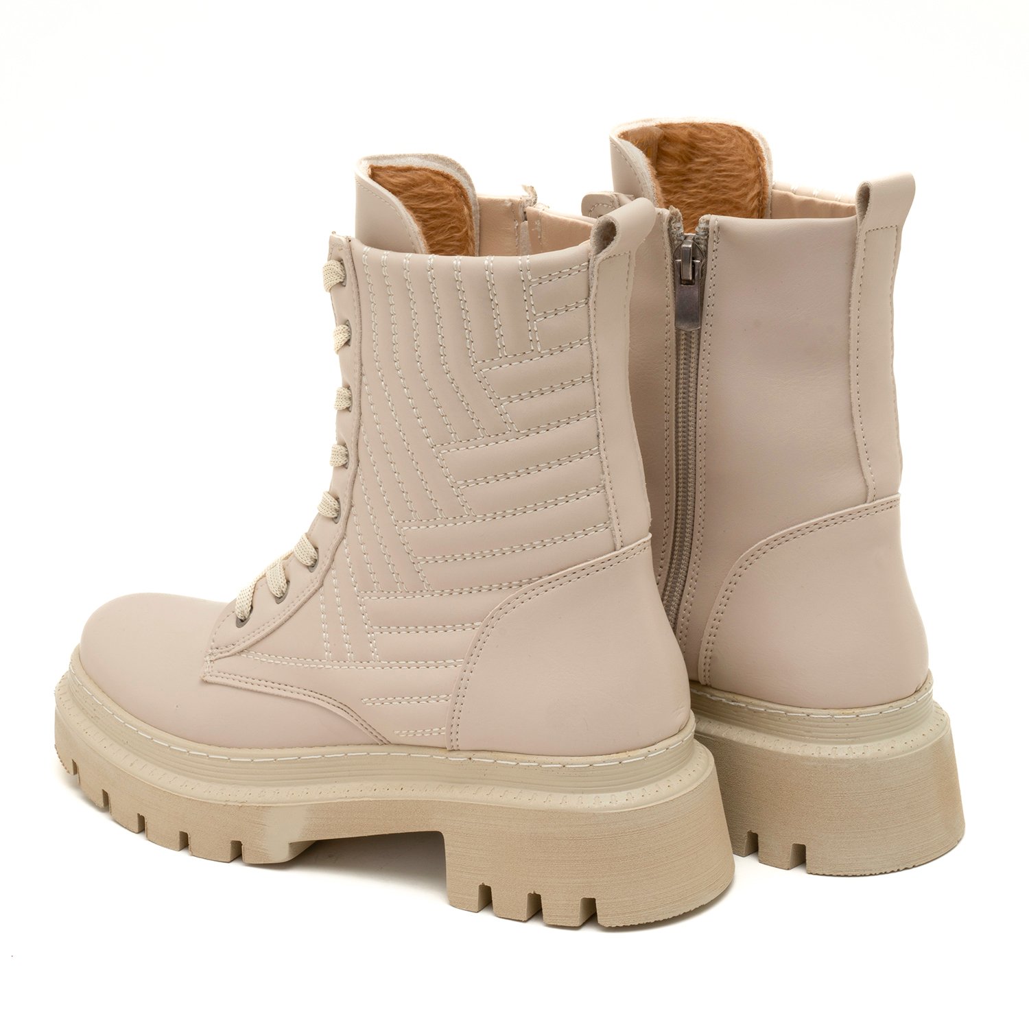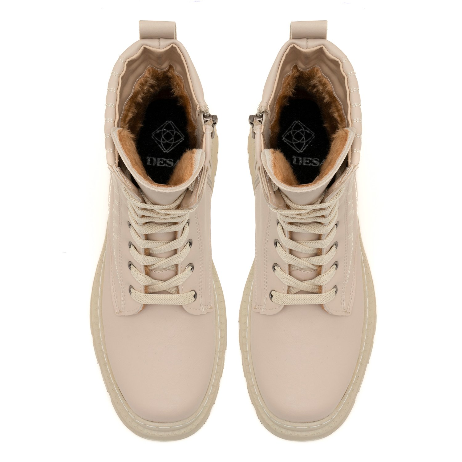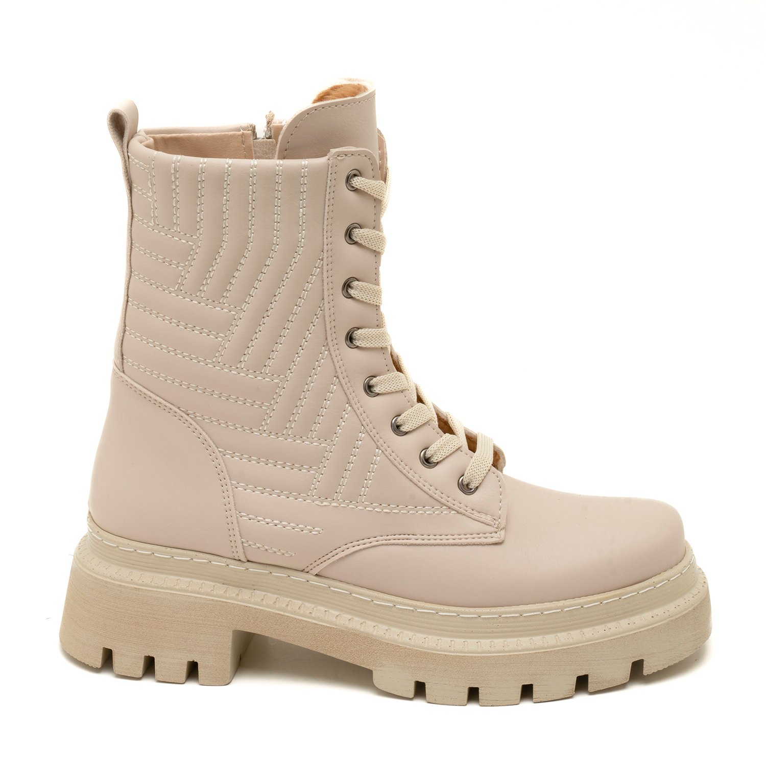 Pu materyalden üretilmiştir, tekstil iç astarlı, tekstil iç tabanlı, deri kürk detaylı, thermo tabanlı,içten fermuarlı bağcıklı kadın bot.