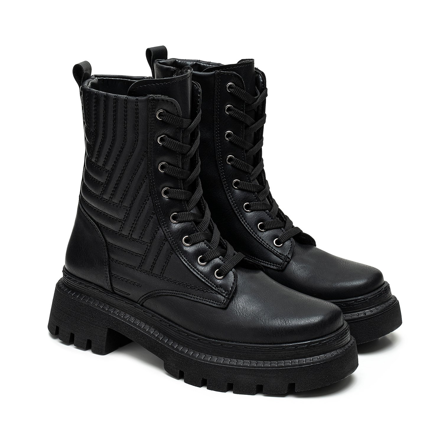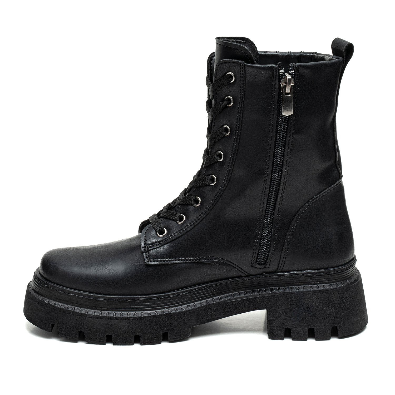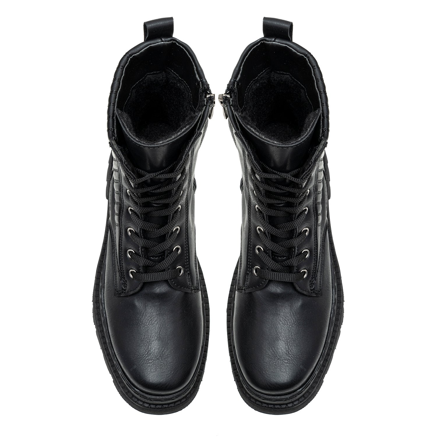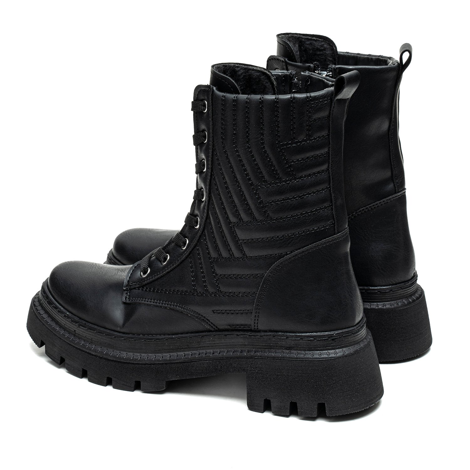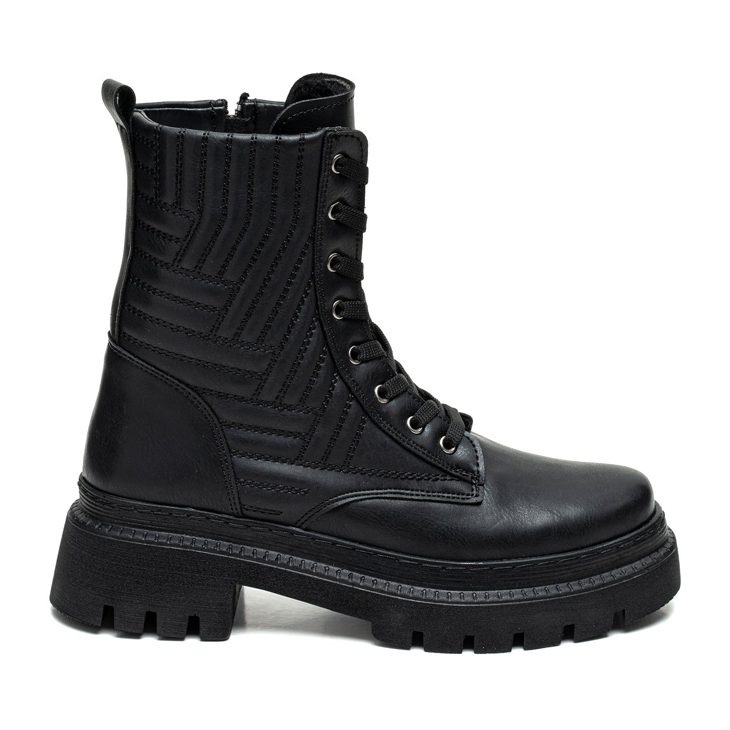 Pu materyalden üretilmiştir, tekstil iç astarlı, tekstil iç tabanlı, deri kürk detaylı, thermo tabanlı,içten fermuarlı bağcıklı kadın bot.