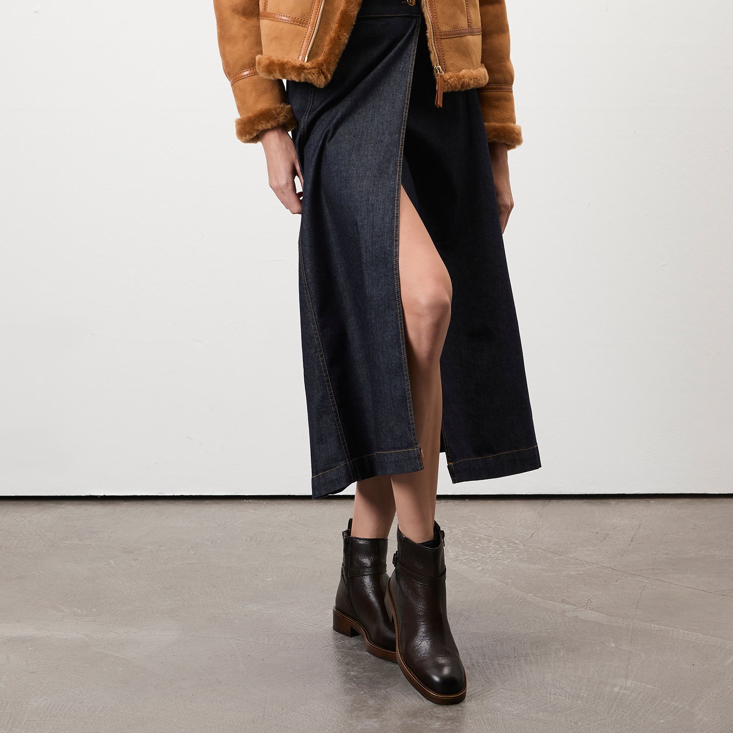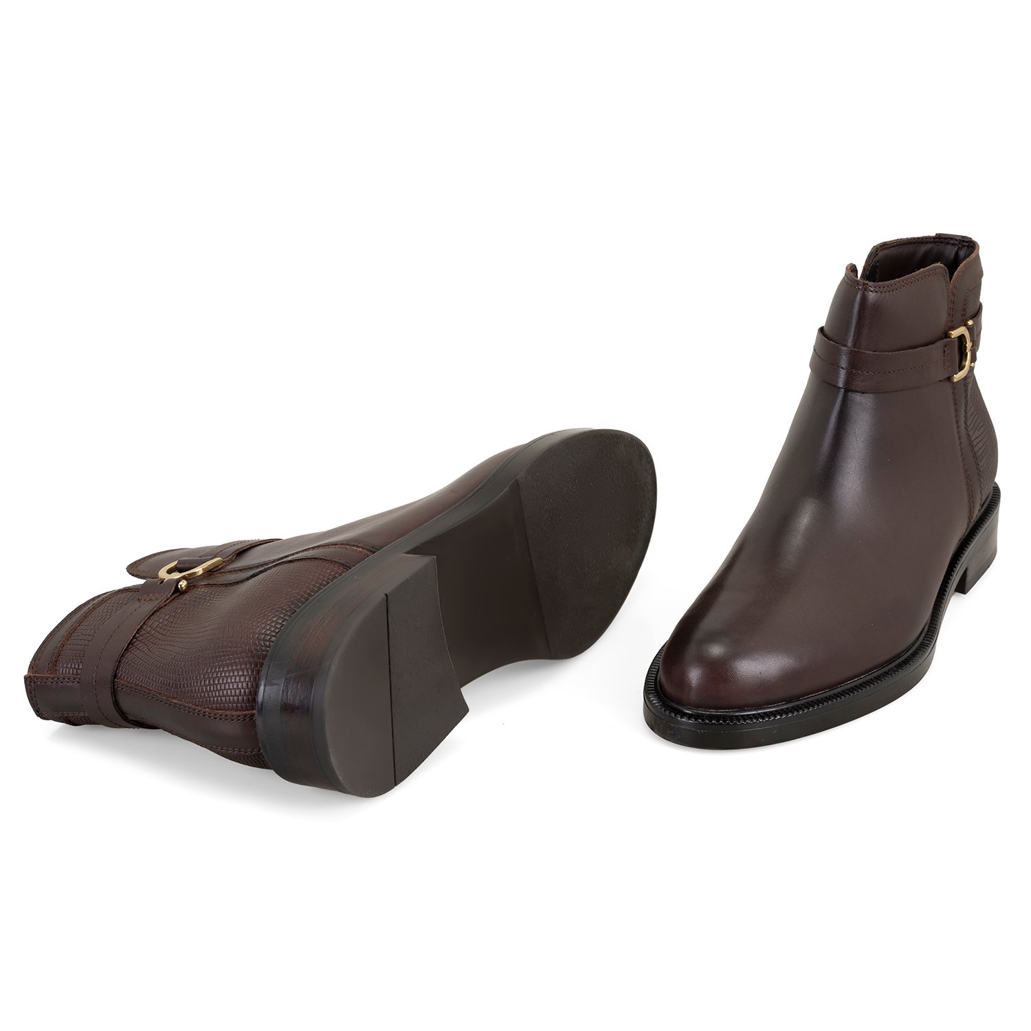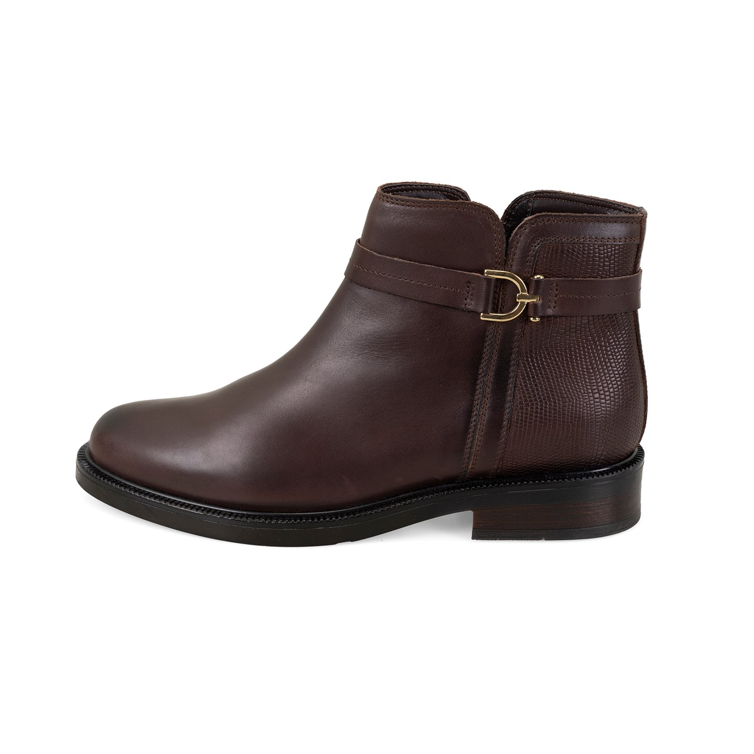 Vesla Metal Aksesuarlı Kahve Kadın Deri Bot
