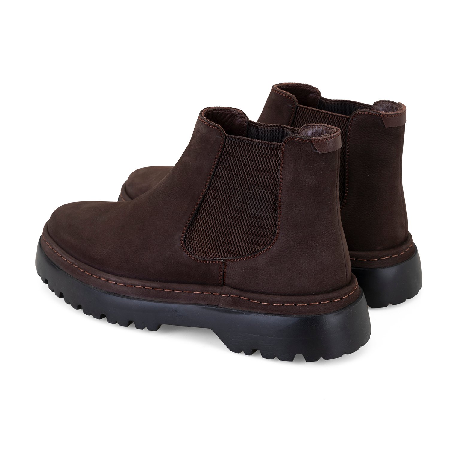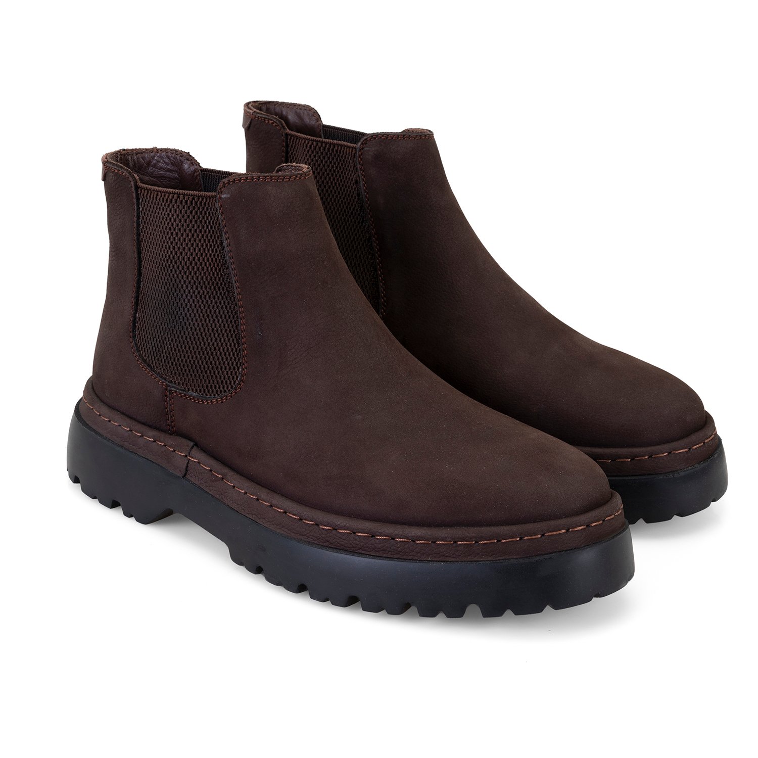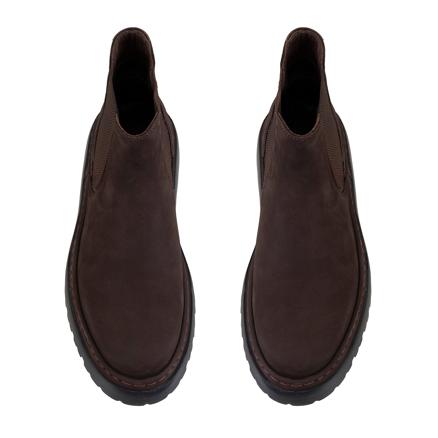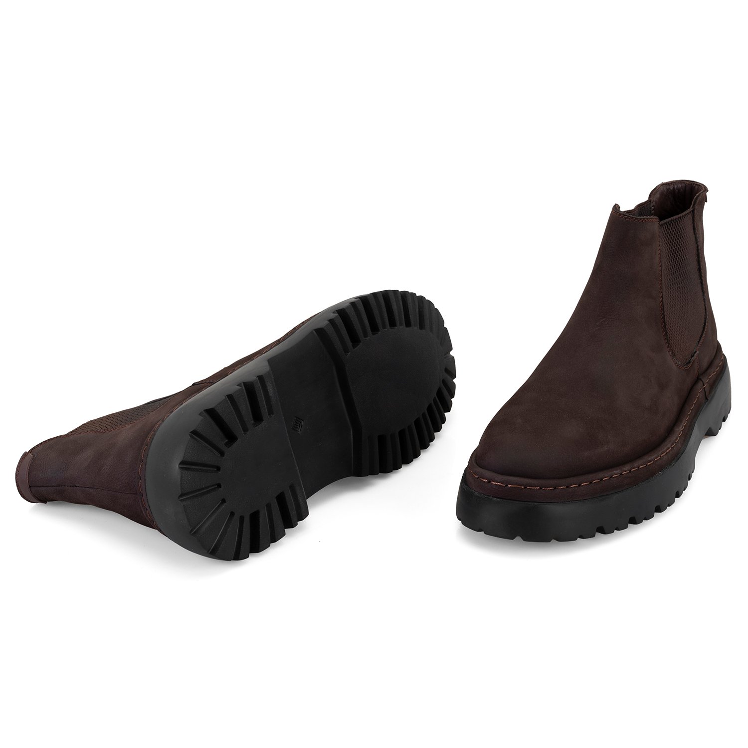 %100 nubuk deri, deri iç tabanlı, tekstil astarlı, lastik detaylı, eva tabanlı, erkek chelsea bot.