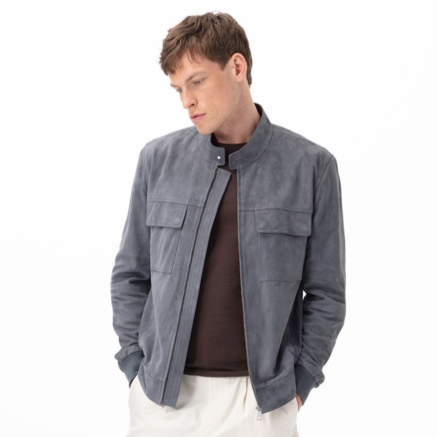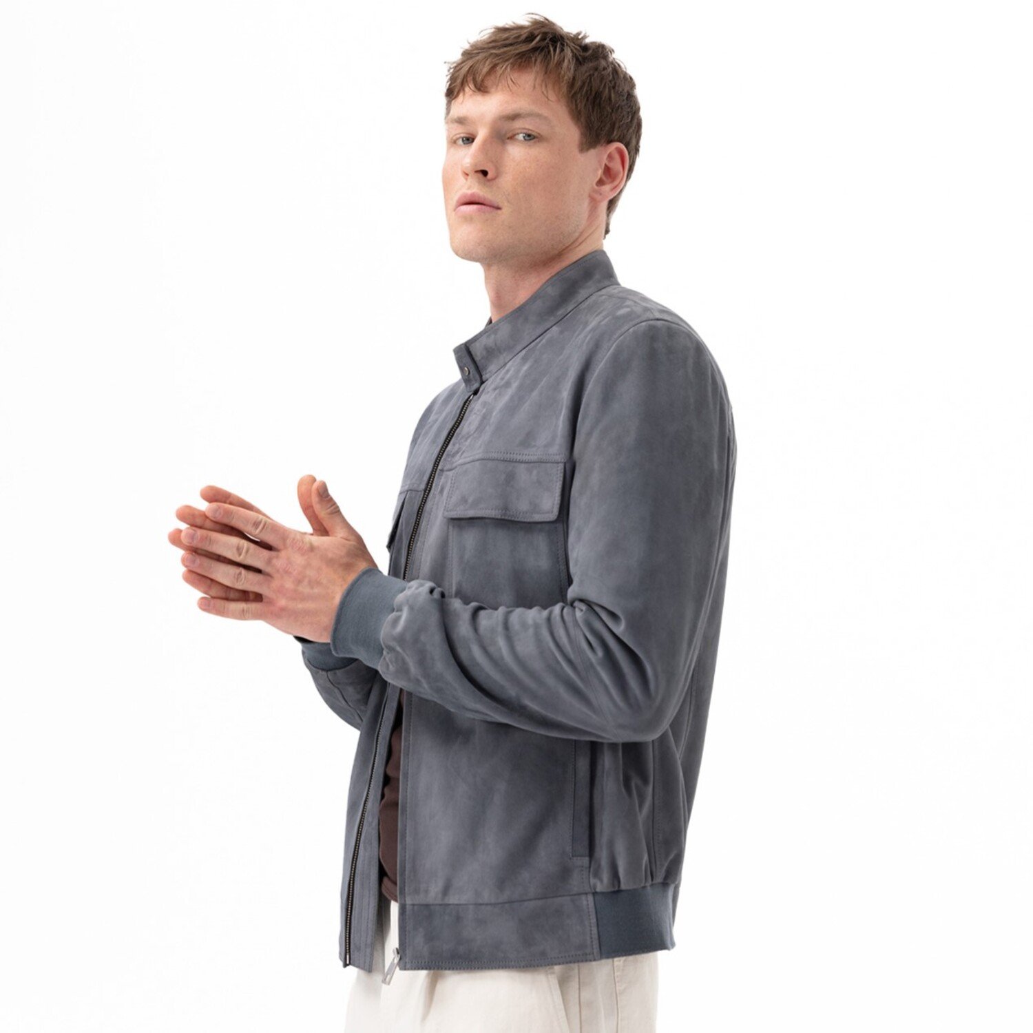 Vitale Gri Erkek Süet Deri Bomber Ceket
