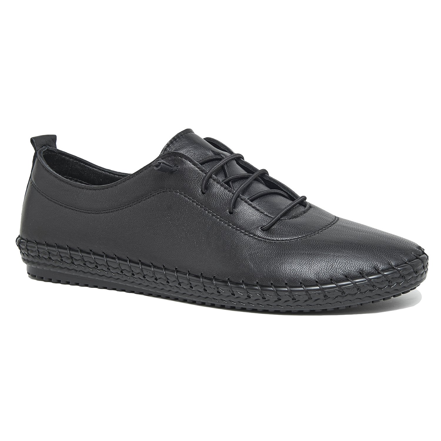Deri astarlı, deri iç tabanlı, elastik bağcıklı, dayanıklı termo tabanlı erkek günlük ayakkabı.