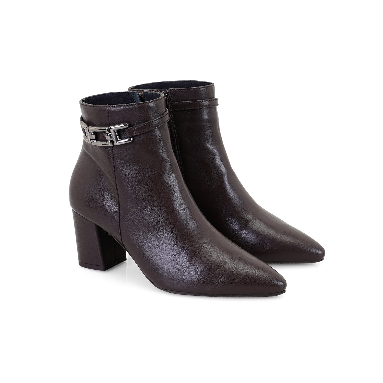 Kahve Kadın DesaComfort Toka Aksesuarlı Topuklu Deri Bot