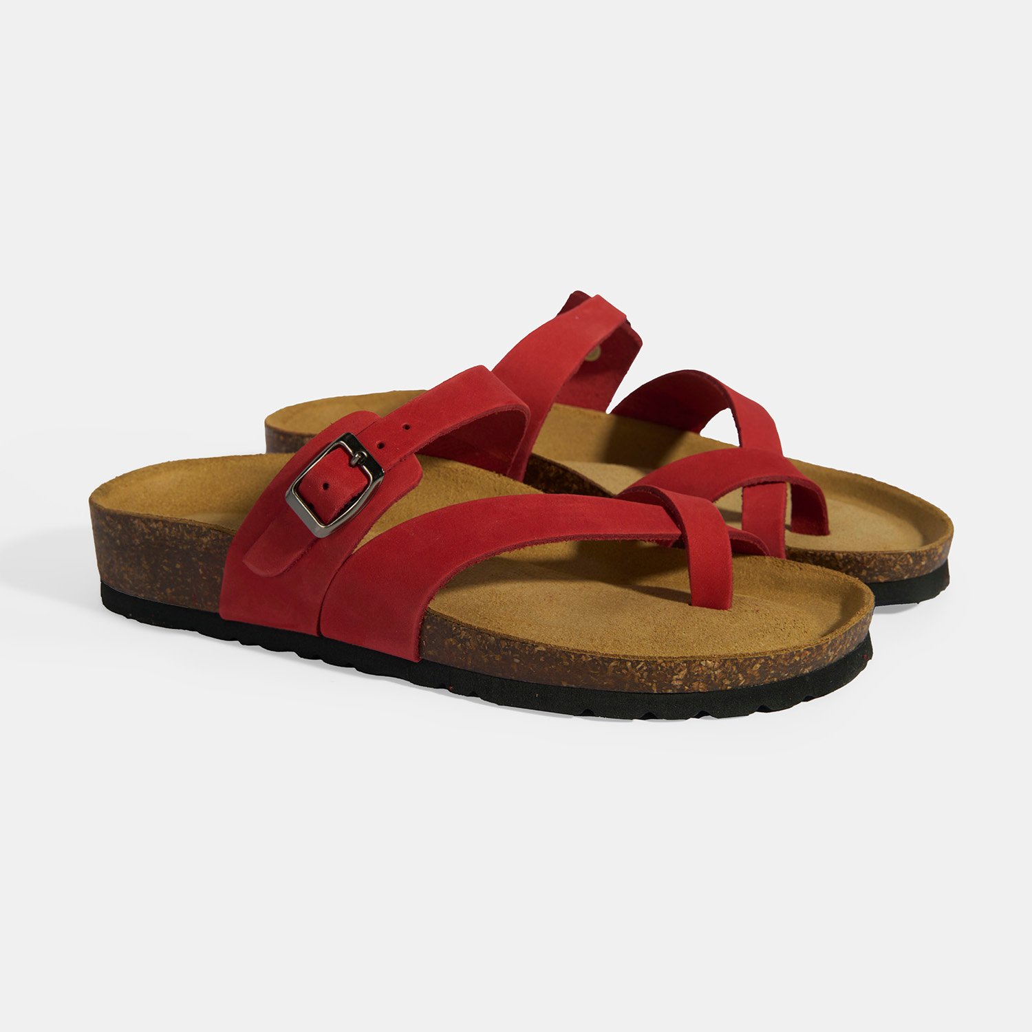 DESA Kırmızı Kadın Toka Detaylı Parmak Arası Nubuk Terlik